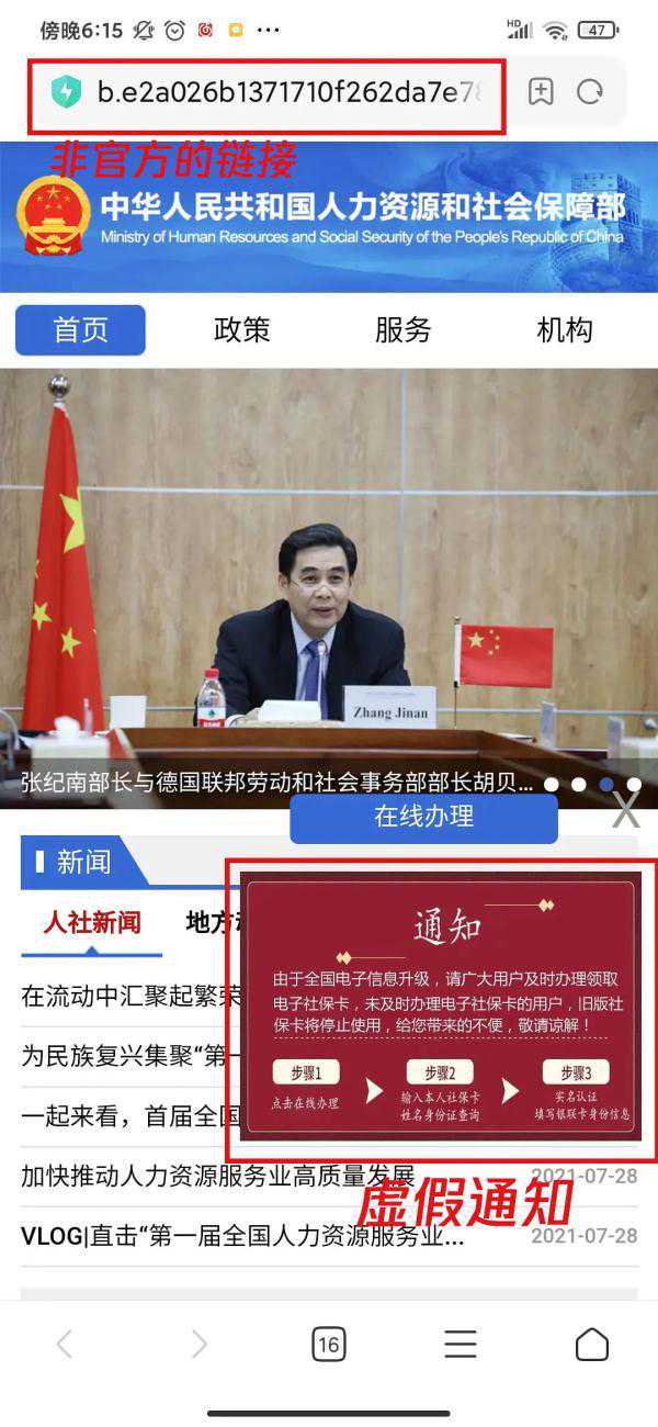 不少人收到这种“社保中心短信” 短信附带了一个链接 通知你要赶紧上传身份资料 还说逾期社保账户将被注销 有些市民也确实正在办理社保业务 就顺手点开了链接 发现虽然链接的格式很奇怪 但页面做得和真正的社保网站别无二致 还“贴心”地放了通知和办理步骤 地址栏会显示信息核验的字眼 并让你填自己的个人信息 但这个页面怎么填个验证信息 还需要我的银行卡密码、支付账户密码? 不如直接说是要我存款得了 摆明就是个诈骗网站 虽说这种骗局本身是有不少破绽的 但假冒网站页面模仿得越来越像官方 赌的就是我们一不留神就 所以大家收到此类带链接的短信时 一定要多加鉴别,不能轻易点开 对此类短信可以通过以下几点甄别: 1、政府部门官网的后缀名多为""; 2、查询发布短信的号码是否为官方号码; 3、任何需要输入金融账户密码的,都为诈骗。