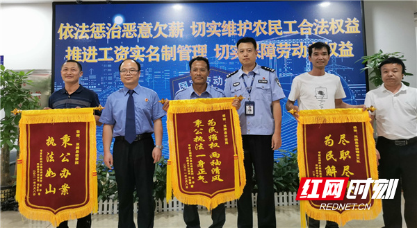 红网时刻永州6月10(通讯员朱玉俊凡哲)“感谢你们把我们的血汗钱追回来,我代表所有工友表示万分感谢!”6月8日,领到被拖欠一年多的工资时,农民工代表老杨激动地对检察官说。 2020年6月,老杨等40名农民工在龙某某、胡某某、陈某某等人成立的装饰公司承包的宾馆客房改造工程项目中从事装修工作,所有项目完工后,龙某某等人在有能力支付农民工工资的情况下,未支付农民工工资58万余元,农民工讨要工资无果,便到双牌县人力资源和社会保障局劳动监察大队投诉。查证属实后,劳动监察大队责令龙某某等人限期支付欠薪,但仍拒不支付。双牌县公安局于2021年2月6日对该案立案侦查,同年5月8日向双牌县检察院移送审查起诉。 双牌县检察院受理后,积极作为,逐个了解了农民工的诉求,并协同相关部门,对涉案人员的资金状况和给付能力进行了充分的调查,同时也在办案过程中对犯罪嫌疑人进行说服教育,为涉案企业解决资金流转问题出谋划策。最终,在检察官的努力下,3名犯罪嫌疑人均表示自愿认罪认罚,其中陈某某、胡某某先行垫付民工工资至双牌县劳动监察大队公用账户,除龙某某实在无法支付民工工资被依法起诉外,对另两名足额支付民工工资的陈某某、胡某某依法作出酌定不起诉的决定,妥善化解了社会矛盾。老杨和工友们为了表达心中的谢意,特意送来锦旗,也就出现了开头这一幕。 今年以来,双牌县检察院把“我为群众办实事”实践活动作为政法队伍教育整顿的重要内容,切实为群众办实事解民忧。下一步,双牌县检察院将继续坚持以人民为中心的办案理念,把开展政法队伍教育整顿、党史学习教育、推进检察工作和开展“我为群众办实事”实践活动深度融合,用心用情用力办好每一起案件,不断增强人民群众的获得感、幸福感和安全感。