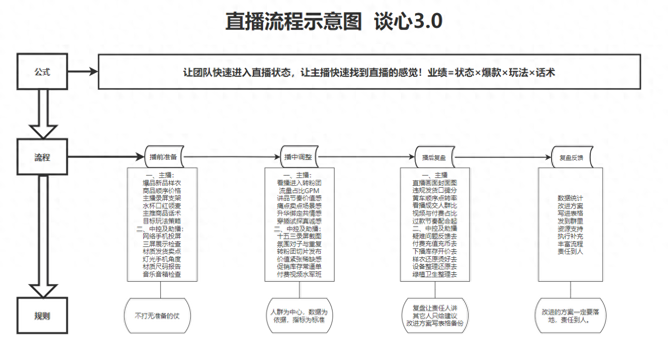 又到招兵买马的黄金时段了,做直播带货优秀的主播是稀缺的。优秀主播的人要不自己创业当老板了,要不就是在别人家家里有股份被绑定了。怎么样招聘到优秀的主播为我所用,我是走了很多的弯路,踩了很多的坑了。我们一起探讨下怎么招聘优质的人才吧。 目录: 1、招聘主播重点在看三观! 2、怎样判断一个优秀主播? 3、主播招聘怎么进行面试? 4、主播怎么定工资与绩效? 5、主播招聘后怎样给培训? 6、主播怎么样给流程方法? 我信两句话: 相信人性,永远不要相信人品;相信选择永远大于努力! 面试的主播都是经过市场选择的,来面试的多多少少有这有那的问题的。没有最好的主播,只有适合你的主播! 不要培养主播,一定是挑选主播。 你要比主播优秀,你要比主播懂运营,懂流量,懂产品,你要自己能播,不要主播绑架与威胁,不然有你好受的! 什么叫三观,很多人是不知道的,现在普及一下。三观指的是世界观、人生观、价值观。 世界观是一个人对整个世界总的看法和根本观点。每次面试主播,你问她的人生格言是什么,实际上就是要问世界观吧。【有的人会说:我的人生格言,就是搞钱。有的人会说:我的人生格言就是自己开心,自己快乐。】当你问她为什么这句格言的时候,你就明白,她对这个世界的认知了! 人生观是一个人对自己人生的看法,对一个生存的目的、价值和意义的看法。我们问一个主播:你未来三年与五年及这一生是怎么样规划自己的?我认为就是在问这个主播对自己3-5年的人生观考核。【我面试的主播大部分人会说:我没有特别的规划,就是想成为一个优秀的主播。或者听说直播很赚钱,所以我来试试。】可想而知,这种来试试的,你多半不能要,她只是来试试,把你当试验场地了。 价值观是一个对具体事物的价值取向与价值追求。每次我面试主播,我会说过年过节流量非常好,我们过年过节不放假,每周一放假,星期六与星期天都是上班的,并且没有特别的补助,你是怎么看待这个问题的。从这个问题中,你完全可以了解到一个主播对过年过节这件事情的价值取向。 又如,下了直播,你今天感冒了,运营与中控没有了解的情况下,把你骂了,你怎么办?而且运营与中控还说错了? 再如,中控在直播过程中玩手机,与女朋友聊天,没有正常配合你,你想发火,你准备怎么处理这个问题? 什么样的三观是正确的,我真不知道,主要看你现阶段需要什么样的人才吧!没有谁的三观就一定对,没有谁的三观就一定错,但一定与你的团队是臭味相投的就行。 1、一个优秀主播,应该有四个特点,体力好,适配性好,表达好,有灵性。 主播不光是脑力活,更是体力活,身体不好,容易生病,动不动就请假的,你真的没有办法伺候她。所以一个主播有适当的运动爱好的,是比较好的,至少她的体力是够的。 2、适配性好,不是说颜值高就行了,主播的颜值不是特别重要,重要的是她与这盘货相适配,这个主播与这盘货,这个人群是匹配的!她可以感知到这类人群生活的场景,她可以共情共鸣到这类人群使用这个产品的痛点、痒点及爽点!卖连衣裙的要身材好,卖小香风的要气场好,卖男装的要女人一点儿好,卖指甲油的要手型好……所在与货的匹配度很重点,不是光看颜值的。 3、表达好,我面试过很多颜值高的主播,气质好的主播,表达好的,一般在学校里学:学播音,学主持,师范的,学幼师的都是比较好的,她们天生表达能力强一些。还有在学校读书就是班干部的,表达能力也会强很多!有主播在我这里来面试我有两件事必做:一是我随便拿一本书,会让面试主播的读200字我听一下,核心就是听听普通话,听听读书多不多,光靠学校里的一点书本是不够的,记得有八九个人来面试,我让读三段文字直接就吓跑了。二是让她自我介绍一下自己,先1分钟介绍自己,再用3分钟介绍自己,最后用5分钟介绍自己。这里成熟的主播她自己就知道,5分钟话术,8分钟话术,15分钟话术差不多是一个意思。 4、有灵性,这个词可能很多朋友是不太理解的,有点玄学似的,实际上灵性是一个人平时生活决定的。你会发现潮汕一家人有3个以上的小孩的家庭,从这种家庭中出来的女生很灵性!或者说眼中有活,能见机行事。有时候在直播的时候,中控一个眼神或是手势,主播就明白里面的意思。有时候流量大的时候,要开价了,有黑粉带节奏,这个时候都需要主播有灵活变通、见机行事的灵动力。我没有说独立子女不好,千万不要怼我哟。我身边的也有不少优秀的独立子女的! 判断一个主播是否优秀,每个行业,每个类目是不一样的,体力好一定是不可少的;与你的货品匹配好一致是最重要的;主播的表达有逻辑,语气笃定,抑扬顿挫,眼神温柔这些是重要的;一个主播能见机行事,有流量感知能力,有面对突发情况解决能力,灵活变通的能力是要不断自我学习与复盘中养成的。 我不是专业做人事的,我是半路出家的,与专业做人事的相比,我的这些是小儿科的。 第一步,填写主播登记表(主要看她写的字,字如其人!) 第二步,邀请读两段文章,3分钟自我介绍,再5分钟自我介绍一下,之前做什么工作,为什么面试我们家?随便拿一下产品让她对着手机镜头录屏讲解8分钟。{看动机,看镜头感,看表达能力,看眼神,看重间与停顿。) 第三步,住哪儿,为什么住在那儿,与男朋友住,还是与亲人住?(太远了,不方便上下班,特别是晚班) 第四步,家里排行老大,还是老二,结婚了没,小孩