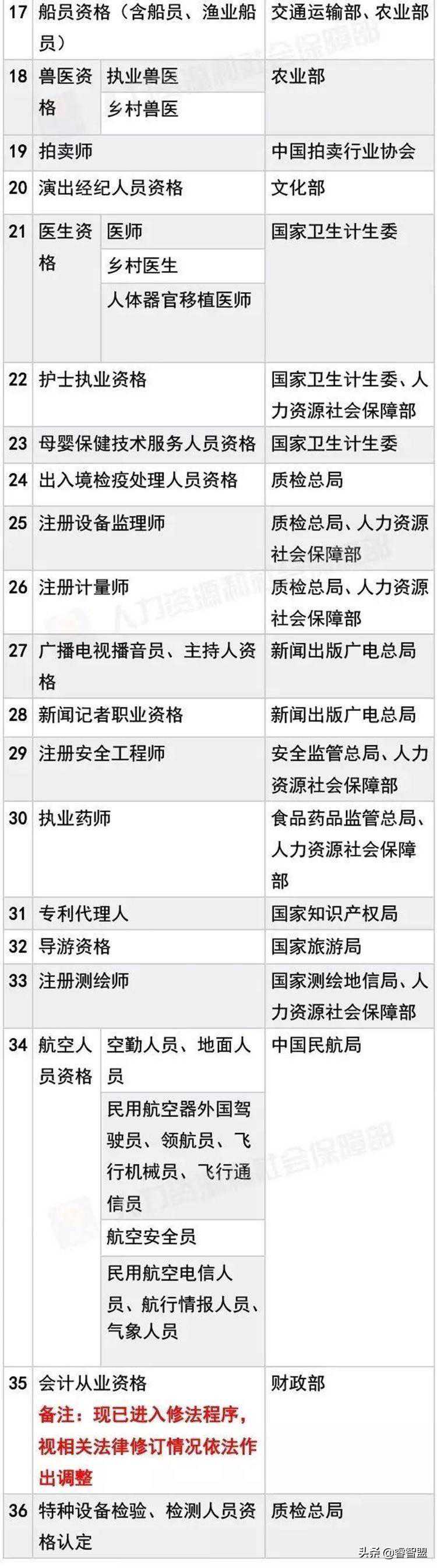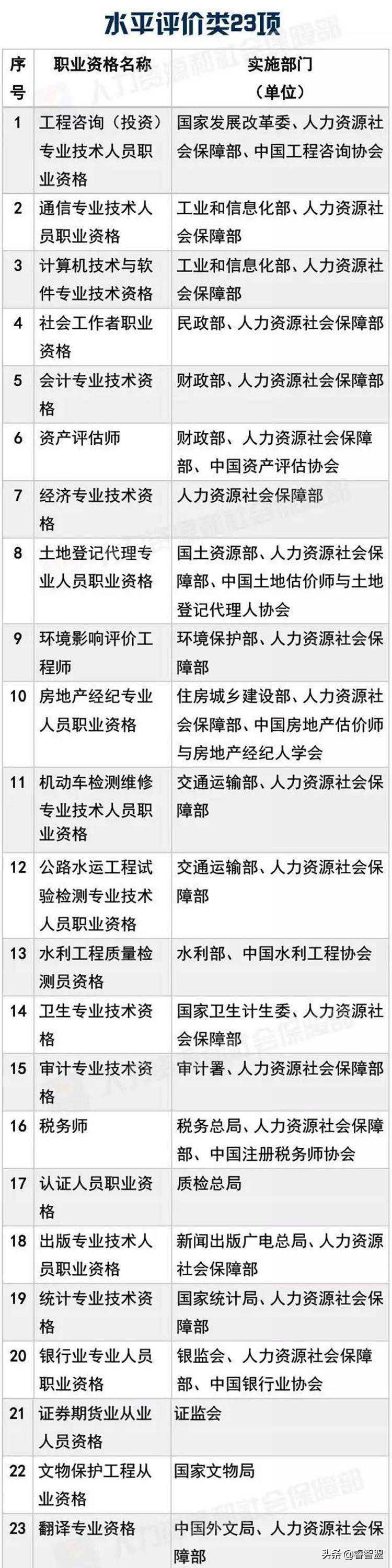 对于已经工作的人或者还没工作的大学生来说,多考几个职业资格证书往往能够让自己身价倍增。但是,近几个月,国家取消了百余项各类资格证书的考试,也就是说,有几百种资格证书已经没用了!不过,不用担心,目前依然有140个职业资格证书被国家承认,来看看都有哪些吧! 国家职业资格目录共计140项职业资格。 其中,专业技术人员职业资格59项,含准入类36项,水平评价类23项;技能人员职业资格81项,含准入类5项,水平评价类76项。这些职业资格基本涵盖了经济、教育、卫生、司法、环保、建设、交通等国家重要的行业领域,符合国家职业资格设置的条件和要求。准入类职业资格关系公共利益或涉及国家安全、公共安全、人身健康、生命财产安全,均有法律法规或国务院决定作为依据;水平评价类职业资格具有较强的专业性和社会通用性,技术技能要求较高,行业管理和人才队伍建设确实需要。 人力资源社会保障部版本 以上就是是我国目前还承认的几乎所有的职业资格证书,大家在想报考资格证书考试前,一定要看清楚是否还受到国家的承认。如果报考了一些不受国家承认的资格证书,不仅浪费金钱,还浪费了自己的时间,得不偿失。