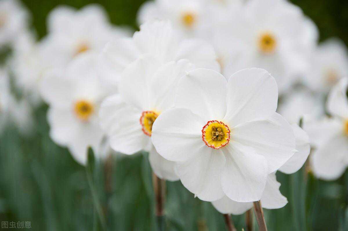 水仙是一种圣洁的花卉,用来祭祀西元叁叁5年基督徒在兴建新教堂时,在耶稣被钉十字架的受难的卡尔瓦利山上发现的圣十字架。因此雉眼水仙的花语是-神圣。