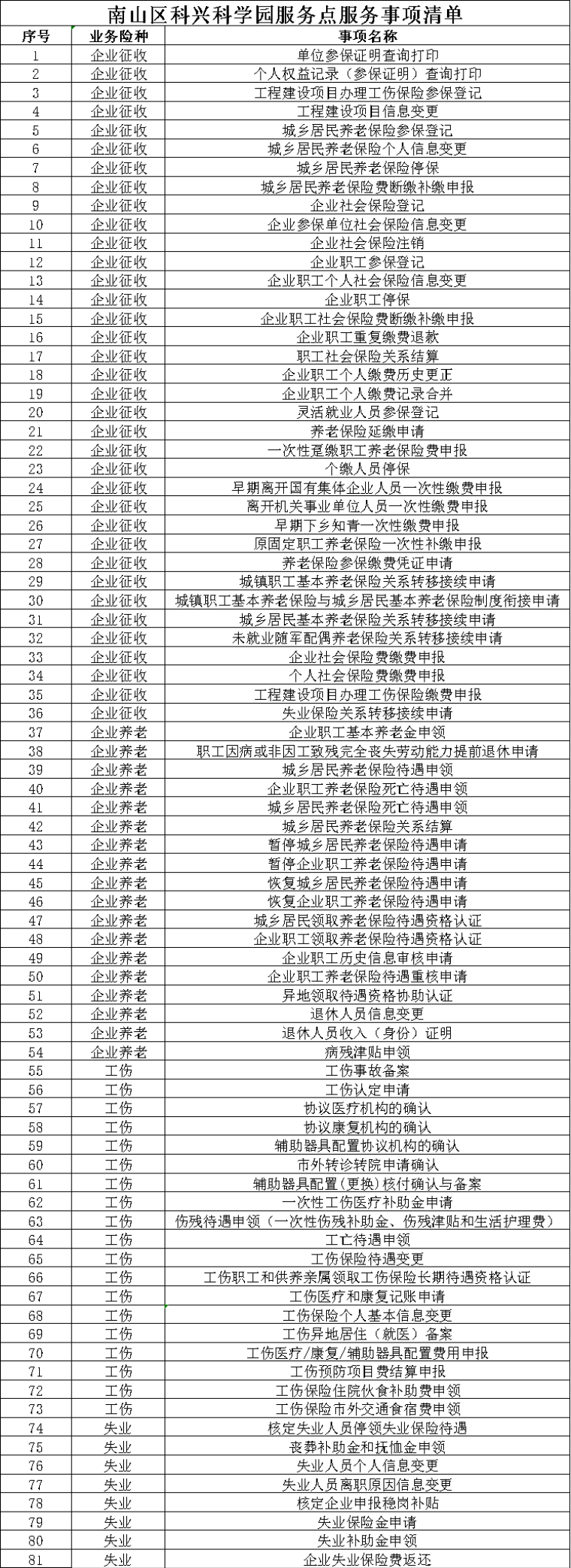 6月13日上午,为更好服务企业,助力优化营商环境,深圳市社保局首个园区“社保业务服务点”在南山区科兴科学园成功揭牌,标志着深圳“社保业务进园区”政务改革正式启动。深圳市人力资源和社会保障局党组成员、深圳市社会保险基金管理局局长吴登记,南山区政府副区长夏雷,正中集团董事长、总裁邓学勤等出席揭牌仪式。 吴登记指出,推进社保业务进驻产业园区,是社保部门推进主题教育走深走实的具体行动,是深入推进政务服务改革的再次创新,是落实惠企政策、优化涉企服务的有益探索,是对接企业所需、竭尽社保所能的生动实践。社保部门要和产业园区紧密合作,充分发挥各方优势,同时发力、同向发力、综合发力,推动实现服务畅通、业务贯通、管理联通,不断丰富园区社保公共服务配套,打通社保服务企业的最后“一百米”,让企业足不出“园”畅享社保服务,助力辖区优化营商环境,助推全市经济高质量发展。 夏雷对社保部门和园区管理方为南山区经济发展做出的贡献表示感谢,对社保业务服务点的设立予以充分肯定。他表示,南山区将全力支持社保部门,探索更多与产业园服务相融合的政务服务新模式,为园区企业、人才高质量发展保驾护航。 据悉,业务服务点的设立可为园区企业就近提供便捷高效的精准、定制化服务,提升了园区的运营服务水平。园区将同社保部门加强合作、协同联动,充分融合政务服务和园区服务,精准对接企业需求,让企业、人才扎根园区、扎根南山。 一、科兴科学园服务点位置 南山区粤海街道科苑路15号科兴科学园B4单元一楼客户服务中心。 二、周边交通 1.公交科苑站: M255路、高峰专线120路、M117路、M209路、M528路、E9路、339路、旅游9线、M474路、E39路、高快巴士56号、E19路、高峰专线102路、高峰专线92路、高快巴士48路、高峰专线22路、高快巴士50路、高快巴士41路、M299路。 2.地铁站: 地铁罗宝线(1号线)深大站A4出口,过深南科苑立交沿科苑北路步行约1公里。 三、预约渠道 2.深圳掌上政务—预约中心—市级专业服务中心—社会保险服务中心—南山区—南山区科兴科学园社会保障服务点 3.社保自助服务终端预约 (上下滑动查看服务事项清单) 近年来,深圳社保持续优化“智慧社保”线上服务,全力打造线下“十五分钟社保服务圈”,推进业务进驻区街政务服务大厅,深入开展社银合作,全市60多个政务服务大厅、2300多个服务网点、5200多台自助服务终端为企业群众提供“就近办”“多点办”政务服务,着力构建线上线下多渠道、多元化经办服务体系。 下一步,深圳市社保局将以 南山科兴科学园社保业务服务点为试点 持续丰富服务内容、拓宽服务渠道、创新服务形式 形成可复制可推广的经验做法 并争取在全市条件成熟的产业园推广 不断丰富社保公共服务网络体系 编辑|张浩责编|董非 审核|梁亚淑李蔓铃 转载请注明以上信息 本条微信部分图片或来自网络,如侵犯到您的权益,请及时联系我们删除。