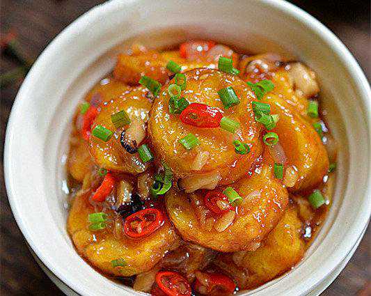 炸一炸,煮一煮,外酥里嫩,香辣开胃太好吃了。 食材:日本豆腐小米椒2个香葱1根油洋葱鲜香菇大蒜生抽耗油糖玉米淀粉白胡椒粉适量 1.日本豆腐连包装袋从中间切开 2.把日本豆腐轻轻挤出来,切成厚片 3.洋葱切小块,香菇切成丁,大蒜切末,小红椒切小段,香葱切成葱花 4.兑调料汁:碗中倒入生抽、蚝油、糖、白胡椒粉和少许玉米淀粉,兑入适量清水搅拌均匀备用 5.日本豆腐裹上玉米淀粉,下入油锅炸至表面酥脆,色泽金黄捞出 6.锅中留适量底油,放入洋葱和蒜末爆香 7.放入香菇和小红椒翻炒一会 8.放入炸好的日本豆腐炒匀 9.倒入调料汁,快速翻炒至汤汁浓稠,让豆腐裹上浓稠汤汁即可,出锅装盘后撒点葱花点缀