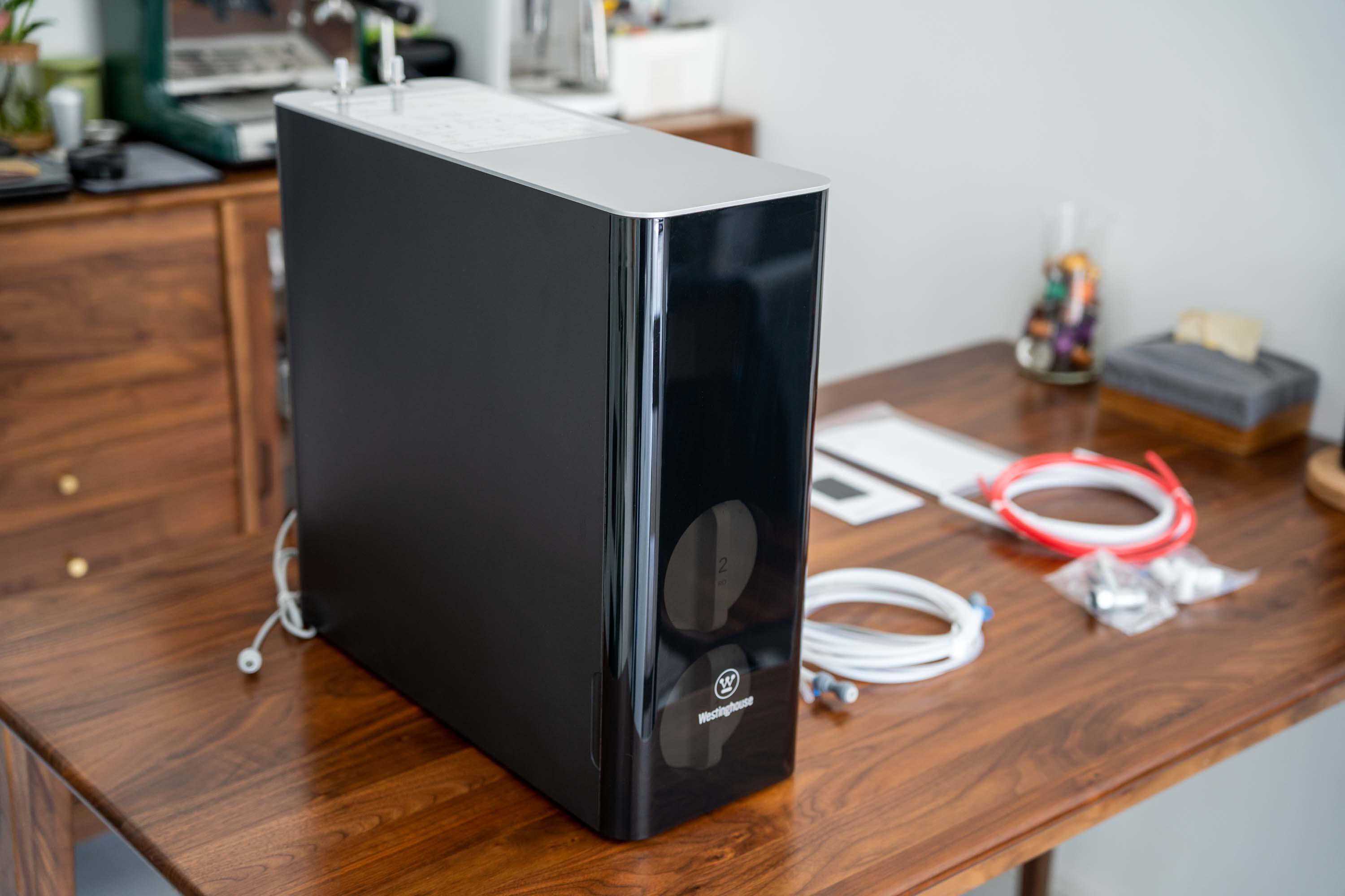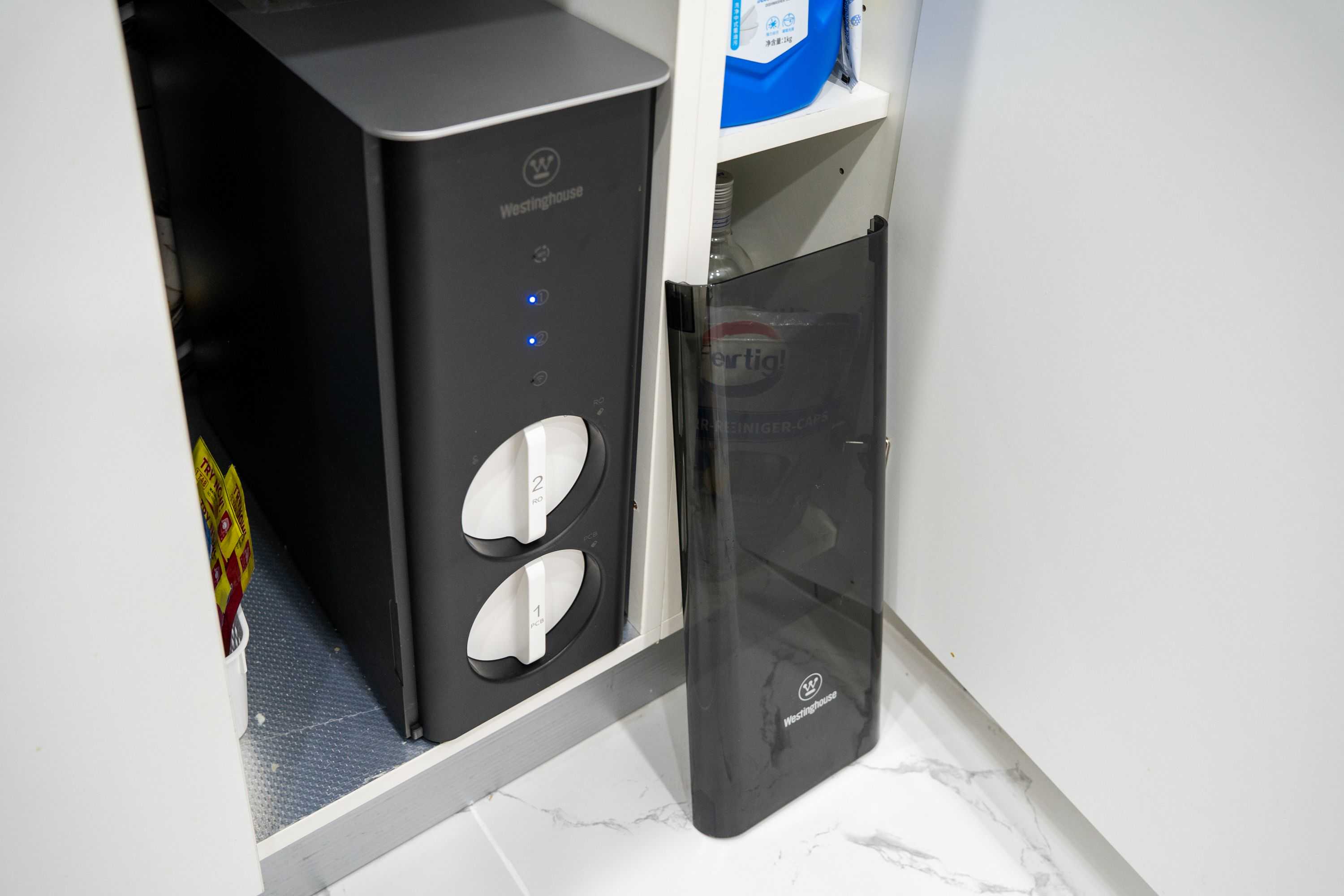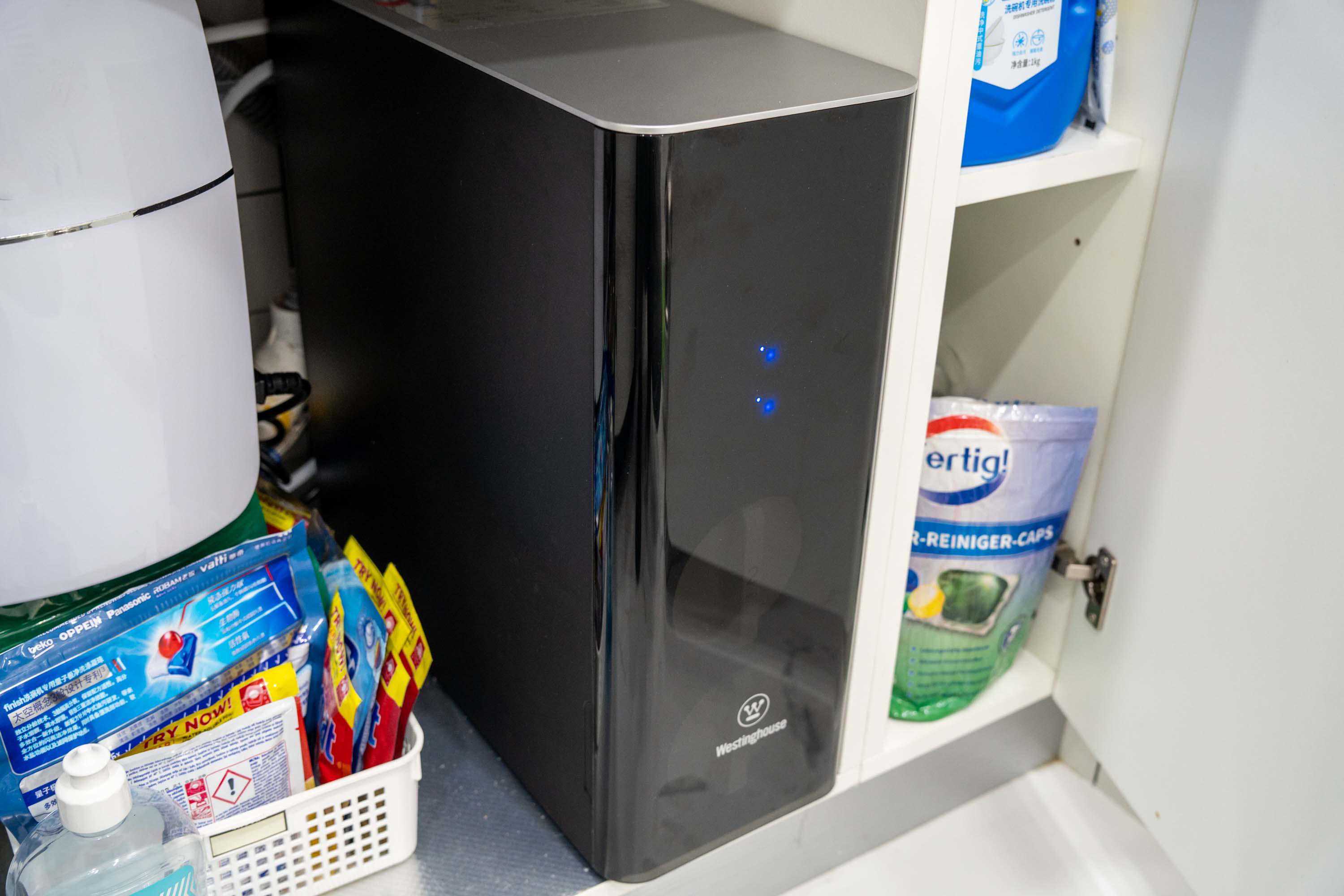 随着生活水平的提高,人们对于喝水品质和喝水感受的需求也随之提高,过去这些年市面上各种类型与“好好喝水”相关的家电产品也是层出不穷,如厨下净水器、台面净水器、管线机等,不过要说到在我心中最满意的产品,那还是当属厨下净热一台机。 本文就通过我自己的使用经验来说说如何选择一台合格的厨下净热一体机,以及厨下净热一体机在使用中有哪些便利性和注意事项。 我们可以把厨下净热一体机看做是净水器和饮水机的组合,净水器部分负责将自来水净化成可以直接饮用的纯水,然后通过饮水机部分加热或直接进行饮用。目前市面上净热一体机普遍价格不低,基本上一台净热一体机的价格相当于一台厨下净水器加上一台桌面恒温饮水机,有时候还会多一点点, 但净热一体机依旧因为自身使用体验好的优势被许多人选择。相比传统净水器,净热一体机的优势在于不需要再使用一个电热水壶或者养生壶来煮水,而是直接就能快速加热水,节约相当一部分桌面空间。以我使用的西屋S600厨下净热一体机为例,本来水龙头右侧放电热水壶的地方此时可以放多个杯子,打造成一个mini水吧。 相比恒温水壶或饮水机,净热一体机又能够自主制作纯水,从而无需再购买一台普通净水器或者订购大桶纯净水。 与流行过一段时间的管线机相比,净热一体机的优势在于不用过多考虑安装问题,大多数台面和水槽都可以很轻松的安装厨下净热一体机,厨下净热一体机在美观程度上相对于传统管线机也更简约优雅一些。 净热一体机分为净水器部分和加热部分,虽然并不能拆开来购买,但我们在选择时依旧可以将这两部分的性能分开考量。 在我看来,净热一体机与普通净水器一样,其制作纯水的能力是很关键的,并且极大程度影响后期的使用体验。净热一体机制作纯水的能力受到所使用的滤芯的构成和通量影响。 复合RO反渗透膜滤芯是目前较为先进且主流的,可以有效过滤自来水中的铁锈、细菌、铅、镉、汞、铬、砷等杂质,还能吸附水中余氯及异味。 现在高端一些的净热一体机所采用的滤芯不再是过去净水器那种一组多个的,而是由一个RO反渗透膜滤芯和一个多层复合滤芯的组合搭配,保证较高的净化效率。 与过去那种需要安装多个滤芯的净水器相比,现在两个滤芯的组合方式在后期需要更换时也更加方便,我用的西屋这一款S600厨下净热一体机的安装或更换滤芯只需要一插一拧,滤芯安装到位就自动固定好,不用担心安装不紧引起漏水等问题。 目前常见的净热一体机通量为600G和800G,而通量大小直接影响的是产出常温纯水的流量,我用下来感觉600G的S600产出常温纯水的速度是绝对可以应对日常生活中的饮水和用水需求。 为什么我会提到产出「常温纯水」而不是「纯水」?那就要说到净热一体机的加热部分,主流的净热一体机加热方式有两种:加热厚膜和加热罐。加热厚膜是比较新的技术,其优势在于水经过厚膜的瞬间被加热,不会反复烧水,理论上热水供应无限量,出水温度也可以做到更精准,但加热厚膜的优势在现阶段又成了其限制,使用厚膜加热技术的净水器其产出热水纯水的速度受限于功率,这也是为什么600G与800G两台不同通量的厚膜加热技术净热一体机产出热水的速度一样。 传统热罐的加热方式存在反复烧水的情况,但是因为预先加热好水所以出热水的流量几乎与出常温水的流量几乎一致,热水流量比厚膜加热饮水机的热水流量大。 目前厚膜加热的净水器受限于功率,出热水流量很难提高,但是通过自动控制解决加热罐反复烧热水的问题还是相对简单的,我使用的西屋S600厨下净热一体机通过智能管家APP可以快速进行水位调节,自行选择半胆还是满胆,可以满足不同人口的家庭用水量;机器拥有单次速热和保温加热两种加热模式,选择空胆补水和单次速热可以有效避免加热罐反复烧水。 西屋厨下净热一体机提供两种不同的规格,我日常一人独居生活,所以选择的是600G通量的S600厨下净热一体机。 西屋S600厨下净热一体机的主机为蓝黑色主体,上方为银灰色,正面是一个深蓝色的半透明防尘罩,整体质感很好。 虽然知道品牌在生产产品时肯定会充分考虑大多数家庭的橱柜的尺寸情况,但我们在购买前还是要自己测量好自家橱柜空间和产品尺寸进行对比。西屋S600主机的长度为46.5cm,一般我们橱柜深度约为60cm,即便是除去水路阀门所占的空间,大多数橱柜安装它不成问题。主机的其他尺寸分别为宽度为18cm和高度45cm。 主机虽然很高档,但是安装好之后在橱柜中就很难被看到了,所以我更关心的是安装到外边每天看到并使用的水龙头,西屋S600配有一个智能触控数显龙头,金属质感颜值高。 净热一体机上的接口和智能龙头管子上均有非常详细的标记,可以帮助用户或者安装师傅快速准确的找到对应的接口与管子,快拆装设计也降低了安装难度,极大程度减弱因安装人员技术参差造成的安装不同,其实动手能力强的购买者完全都可以自己安装。 反正安装是免费的的,所以还是约了安装师傅进行安装。安装师傅在约定时间准时上门,因为我家之前就已经预留了三通和水槽上方净水器龙头开孔,所以安装过程非常顺利,比预想安装时间还要短一些,师傅帮忙测试好之后离开。 西屋S600厨下净热一体机的智能触显龙头后方有一个加热罐排气口,安装和使用中需要注意避免遮挡该排气