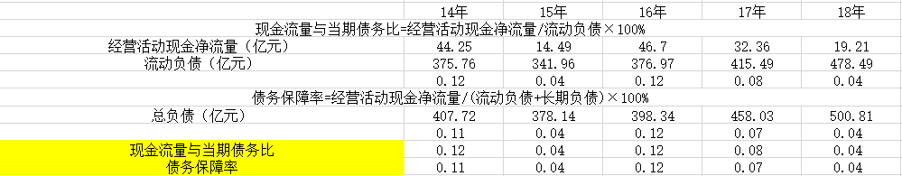前面小笔简短分享了其长期和短期能力,但是仅分析这两个指标并且不能很好的说明其偿债能力,因此今天小笔补偿了其现金流量分析(附:通常情况下,企业对经营活动进行衡量时,往往比较注重净利润,而忽视了现金流这个指标,但是,企业一定期间内获得利润的多少,并不能完全没有反应出企业的偿债或支付能力,而相对采用权责发生制计量的利润表,按照收付实现制计量的现金流量表更能直接反应企业的实际支付能力,资金周转情况,偿债能力等) 表1:四川长虹电器股份有限公司2014年~2018年现金流量指标及相关数据 图1:2014年~2018年四川长虹电器股份有限公司现金流量相关指标变化趋势表 从上面图表的相关数据和变化趋势可以看出,四川长虹的现金流量与当期债务比、债务保障率都十分低。在2014年到2018年期间,最高仅有0.12。一般现金流量与当期债务比指标大于1,说明企业流动负债的偿还有可靠保证。该指标越大,表明企业经营活动产生的现金净流量越多,越能保障企业按期偿还到期债务,但也并不是越大越好,该指标过大则表明企业流动资金利用不充分,盈利能力不强。但是从四川长虹数据分析可以看出,其现金流量与当期债务比、债务保障率指标都远远低于1,,说明经营活动产生的现金流量非常少,产品销售情况不容乐观,带来的现金收入很低,导致其偿还债务能力低。 欢迎探讨补充!