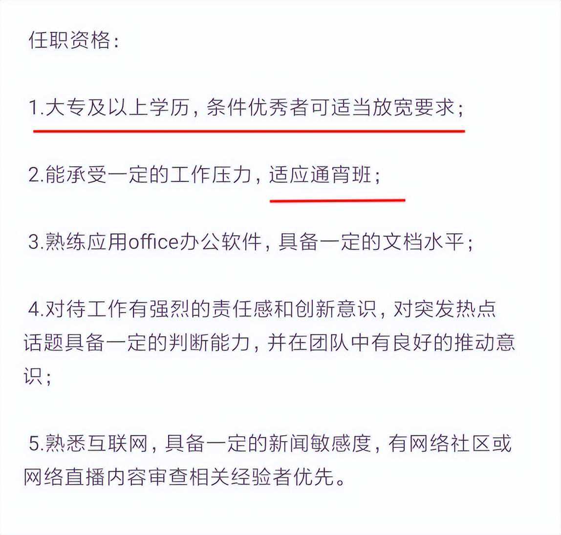 鉴黄师 一个江湖中永远有着传说的职业 在许多人的想象中,他们的工作内容,大概就是 他们的工作环境可能就是:“一人一桌一卷纸而已” lsp们,赶紧收起你们那些个埋汰的想法。 其实鉴黄师,是一个神圣而辛劳的职业! 鉴黄师的工作重点其实不在“黄”,而在于“鉴”。 别人看小电影,脑子里想的都是:¥%@ 他们看小电影,脑子里想的都是: 这在鉴黄标准里,到底属于几级黄色? 是的,在鉴黄师眼里,黄都是有等级的: 他们在审核这些黄色信息的同时,就得根据不同的等级,对用户进行封号、禁言、删除内容等处罚。 而把以上流程✖10086次,就是他们每天的工作内容。 可能有人还想替朋友问一下,鉴黄师每天要经手那么多“资源”,他们的好朋友是否可以找他们借一部说话? 答案当然是..不能了! 鉴黄师从上岗的第一天就会签定严格的保密协议,保证工作内容不外露,绝不拿资源库的一针一线。 而且他们鉴的,也不仅仅是涉黄内容。审核暴力、血腥、恐怖等内容,可能也是他们工作的一部分。 所以,鉴黄师,其实是一个负责净化互联网上所有不健康东西的正义感十足的职业。 听着是不是有点心动了?甚至还有点想加入他们? 别急,这就教教你们~ 在以前,“鉴黄师”可是正儿八经的公务员。 想当“鉴黄师”,你首先得是警察局里的公安民警,还得已婚,最好还是女性。 上岗工作前还得经过严格培训,并且持省公安厅发放的淫秽物品鉴定人员上岗证才行。 以前想当“鉴黄师”,是有那么一丢丢难度。但还好,我们生对了年代! 许多人肯定都自己偷偷到招聘网站搜索过“鉴黄师”吧?但是不是搜出的结果,都是这样的 许多人就这样被拦在了鉴黄师的门外。但其实,是你搜错词了! 鉴黄师在招聘网站里不叫鉴黄师。 找到投简历的地方就好办了。 一般普通鉴黄师的录取要求,其实并不高:有手会点鼠标、能通宵、爱加班就行(有点夸张但确实门槛不高) 但有些鉴黄师入职,还得通过“笔试”。 下面我就拿出一套珍藏的往年真题,来和大家切磋探讨一下: 色彩题 主要为了考察预备鉴黄师们是不是色盲,眼神儿有没有问题。 如果色彩有问题,工作时误判的概率就非常大,比如误把黑皮肤当阴影什么的,那就很尴尬。 文字题 主要是考察预备鉴黄师们的断句能力,毕竟中华文字博大精深,稍不留神就会看错,老爷们也可以跟着做一下,测测看你有没有做鉴黄师的潜质。 别以为用这句话考试很搞笑,虽然现在有机器鉴黄,AI鉴黄,但这种复杂的文字游戏它们也很容易误判。 这时就需要审核员进行人工复审才行。 外语题 这个主要是考察预备鉴黄师们,对一些外语涉黄语言的词库积累量,毕竟ghs这种东西,外国可能更擅长一点。 虽然不知道这句话是什么意思,但看到这道题,想必大家脑海中都已经翻译出来一些奇怪的声音了 心理题 这道题就比较玄学了,但胜在可以自由发挥: 鉴黄师的考试题,还挺有意思的是吧? 但一般的企业,主要还是以面试为主,考察个人综合素质和心理素质,通过率还是挺高的。 不过,当上鉴黄师又能如何呢,这其实是一门苦差事。 传说中鉴黄师月薪过万、有五险一金各种福利。这个的确是有过…… 不过那已经是多年前的事了。现在的鉴黄师工作,真的蛮苦的 钱少活多 现在鉴黄师的工资大约在3k-8k之间,福利待遇就要看所在公司的良心了。 钱给的不算多,但工作量却是给的够够的。 企业里的鉴黄师的kpi是没有上限的,每天看多少条,准确率多少,就是他们的业绩。有种计件赚钱的感觉。 每天必须审核完后台上传的新内容,平均下来每十秒就要处理一个帖子。 许多鉴黄师还是三班倒,24小时都要有人在后台审核。 我们下班的时候他们在鉴黄,我们睡觉的时候他们还在鉴黄。 搞不好就连周末都不能休息,过年也没有假期,怎一个惨字了得。 鉴黄警察的工作量也不容小觑。 查获的每份淫秽制品,他们都要争分夺秒地查看,给出鉴定报告。 而且早年间,他们可能是用DVD看碟片,费力得不行。 工作压力大 除了工作量大以外,企业对鉴黄师的工作质量也有严苛的要求。 不仅得快,还得准,必须保证准确率达到98%以上。 鉴黄警察的压力也很大。 因为鉴黄警察给出的鉴定结果,会直接影响到给犯罪嫌疑人的定罪量刑。 但是吧,很多不良信息发布者会将很多淫秽色情内容,隐藏在正常电视剧、动画片里鉴黄警察还必须要完整看完每份送来鉴定的内容,这就难受了 除了工作本身的压力,鉴黄师同事之间互相施加的压力也很大,尤其是未婚男性的鉴黄师,虽然人数众多,但一直处在行业鄙视链的底端。 鉴黄鄙视链: 已婚女性>已婚男性>未婚女性>未婚男性 为啥呢? 因为他们的”续航能力“远不如女性鉴黄师 而且现在,AI鉴黄师已经能承担许多鉴黄工作了,说不定哪天人力鉴黄就要被取而代之了 其实这些吧,也都还好,毕竟哪有工作不累的不是?但是你可能不知道 鉴黄师们有工伤 长期观看淫秽色情内容,对生理的伤害是非常直接的 性欲消减、恶心反胃、做噩梦都是常事 所以刚入职的鉴黄师,不是经常跑厕所,就是以下这个反应: 除了生理上受不了如此频繁的刺激,鉴黄师的心理问题才是重灾区 鉴黄师接触到的信息,是互联网最阴暗的内容。 其中不乏暴力、恐怖、虐待动物、儿童色情.. 因为长期观看这种负能量的内容,他们很容易患上应激性创伤、抑郁,甚至有轻生的念头 所以啊 别以为鉴黄师工作很幸