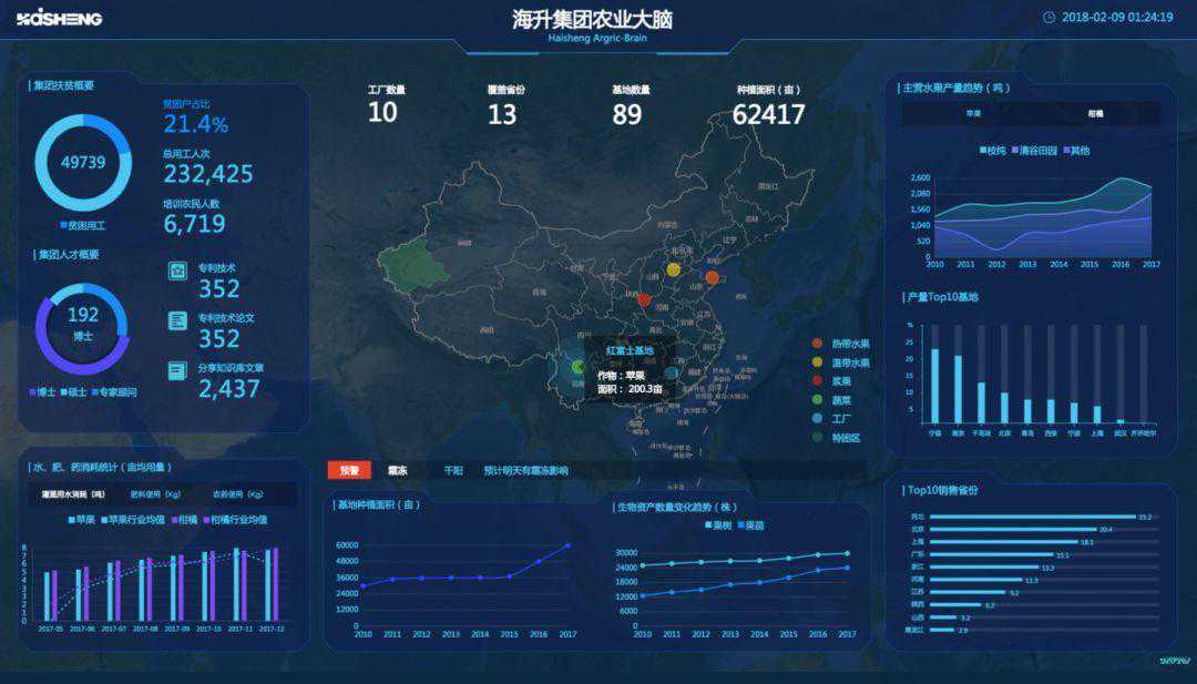 尽管最近水果的价格持续上涨,但水果消费的需求和市场始终在快速提升。墨西哥的牛油果、新西兰奇异果、进口车厘子等口感美味、外观靓丽的“洋水果大军”正在跃上消费者的餐桌。 想要赢得市场份额,国内水果种植业必须要想办法提升“质和量”的双高标准。其中,海升集团通过数字化、智能化的转型,始终站在了整个行业的前列,非常值得学习。 海升集团一直是国内规模化种植、集约化经营的水果种植典范。这家创办于1996年、早期以苹果浓缩汁为主营业务的公司,十年前就是全世界最大的苹果浓缩汁生产商和供应商。2008年金融危机爆发之后,海升集团开始筹划向鲜果种植领域转型,目前已经在全国建立63个果蔬种植基地,总种植面积超过8万亩,成功打造了单品类扩规模,多品类全产业链的多维度发展模式。 但随着海升集团种植规模的快速扩大,随着机械化、自动化以及物联网的设备用的越来越多,海升集团发现,单纯依靠EXCEL统计各条业务链数据、汇总工作已经远远不够了,公司需要一套先进的信息化系统,解决信息流通、数据共享的问题,让整体的经营分析更加准确清晰。 构建农业大数据中台:“数据上云”解开最难的问题 海升希望能够构建一个农业大数据中台,把不断扩大的业务版图内的各种业务数据,按统一的方式接入中台系统,之后通过统一化的数据技术服务反哺业务,让企业的各个业务都能够共享同一套数据资产,从而实现数字化、智能化的农业建设,这也成为了海升集团与阿里云的共识。 但农事数据的多样化和复杂性远超阿里云数据专家们的想象:在农业生产中,气象、土壤、植物、农事操作、农业投入品、产出都是关键变量,都需要详细记录,特别是海升集团,多年来积累的这些农事数据是企业最为宝贵的数据资产,必须要深度融入农业大数据中台。为了构建出优秀的农业大数据中台,阿里云与海升集团反复推敲、尝试、打磨、改进,最终将后者数据报表中的选种育种、育苗、选址建园、种植管理、农机管理、采后分选、仓配、物流、营销等业务系统多源数据实现融合入库,进入了农业大数据中台的数据库中。随着数据中台将海升集团的结构化、非结构化数据统一整合,以及农业大数据中台在云上的顺利构建,海升集团完成了数据标准化和数据系统化上云。 农事管理:让农业生产有了一张“数字地图” 随着海升集团农业大数据中台的成功建设,农业大脑的建设得以顺利展开。 首先,与之前采用“田间收集,集中录入,Excel承载”不同,基于农业大脑的数据管理功能,海升集团得以更为规范的进行数据录入、表单管理工作,更为直观的对汇总数据进行查看和进行GIS图管理。田间工程师等一线工作人员,可以通过方便的手机端APP应用,直接录入基础信息、施肥、园艺、农机与农事、采后、用工、生物资产、农事环境、产量预估、建园、苗圃等方面的详细信息。同时,通过与一线自动化、机械化设备的直接对接,多种数据可以直接通过数据管理功能进入农业大数据中台,减少了手工录入的错误、延迟等问题。 不仅如此,随着物联网技术在农业种植中的广泛应用,农业大脑构建了全链路农业IoT数据传感网,通过连通气象站、土壤墒情仪、田间摄像头、无人机和农机监控设备,农业大脑实现了农场全链路数据IoT设备采集和自动化上传,种植作物得到了“全生命周期数据感知”的加持,进一步提高了田间数据的采集效率和准确率。其次,作为农业大脑重要组成部分的农事管理功能,囊括了种植业生产中的灌溉、施肥、植保、园艺管理四大主要工作,通过可视化的方式展示农事作业分基地、地块、品类、种植年份在四大农事作业方面的主要作业内容及变化趋势。这就相当于为海升集团的田间工程师提供了一个“全局细颗粒度视角”的数据展现、对比和监控。 不仅如此,在构建农业大脑时,阿里云与海升集团同时在向“以数字化、智能化的方式辅助指导种植决策”的方向尝试:首先,通过调用外部气象数据接口,农业大脑的气象预测功能每天可以实时获得未来15天的气温、风力风向、降雨和相对湿度四大核心气象数据。同时,提供过去10年当地的历史气温、湿度、日照、风速等天气数据,通过将预测数据与历史数据的对比,田间工程师可以对未来的天气情况作出更加准确的预判和及时应对。 其次,在方案管理功能中,由于可以在确定了作物物侯期之后,根据树龄、树种、树木历史施肥记录、叶片检测报告等多个维度筛选合适的历史种植方案,农事管理帮助田间工程师挖掘出最优化的种植方案,结合田间工程师对肥料配方等方面项目的调整,即可生成建议的种植方案,这实际上构建了基于历史数据和规格化的农事决策和预警引擎,对灌溉、施肥、施药等农事操作给出初步的参考建议与种植方案,这一功能的实现为未来构建农事智能辅助决策引擎打下了坚实的基础。 图说:阿里云移动农事管理应用和DATAV农事数据信息大屏 以农事管理为核心,阿里云与海升集团共同完成了农业大脑I期项目的建设,有效提高了海升集团农业种植的可视化、流程化水平,特别是通过农业大数据中台,实现了数据的系统化上云,从而解决了长期困扰海升集团的数据整合与历史数据整合问题,让农业生产第一次有了一张清晰、准确、实时的“数字地图”,而整个农业大脑I期项目上线应用,