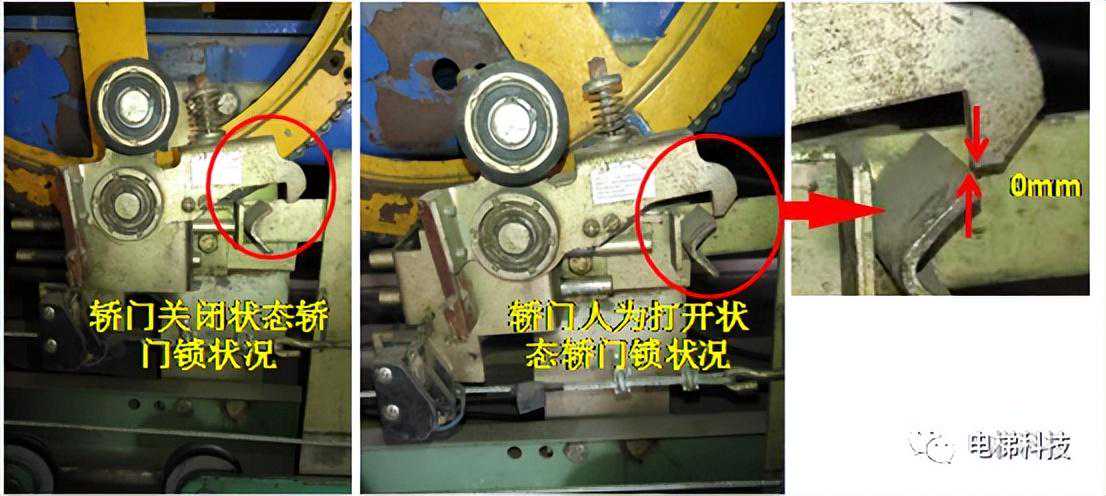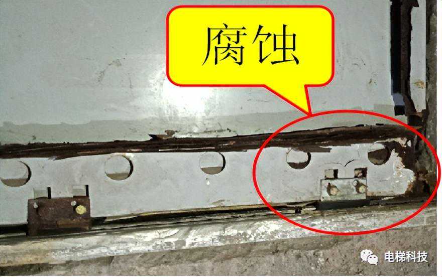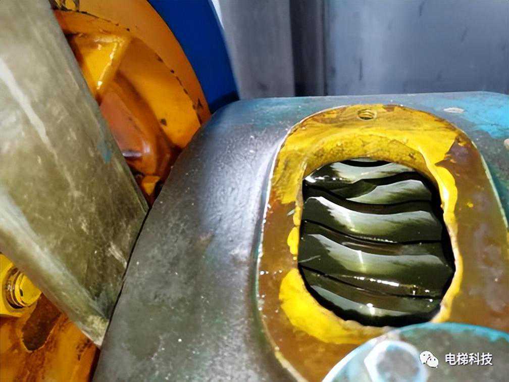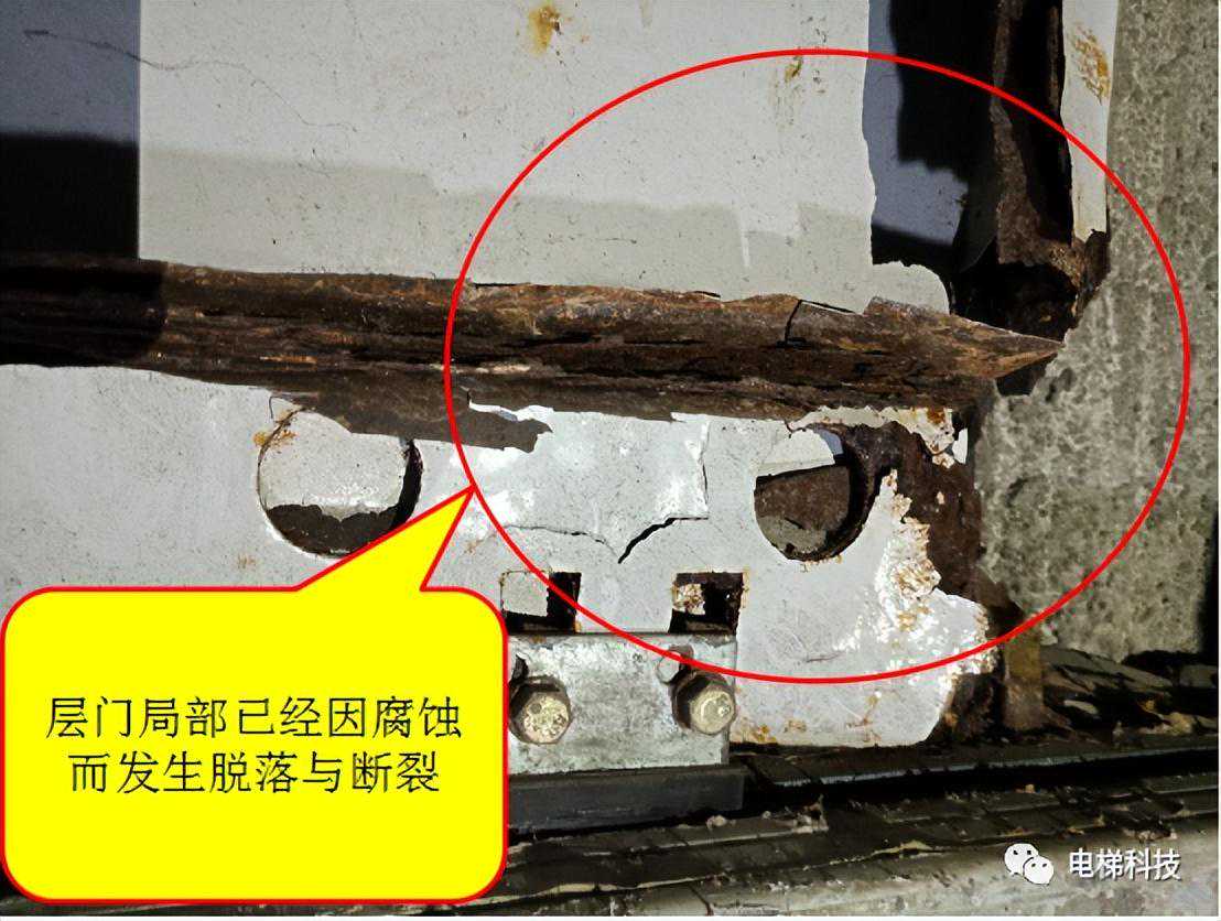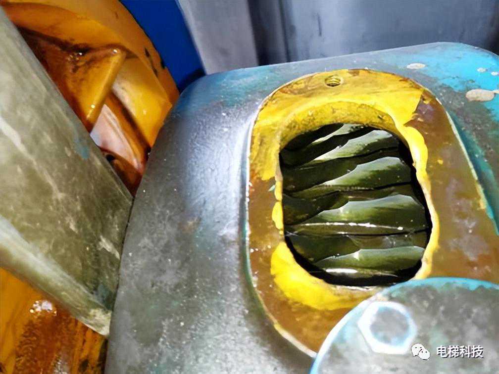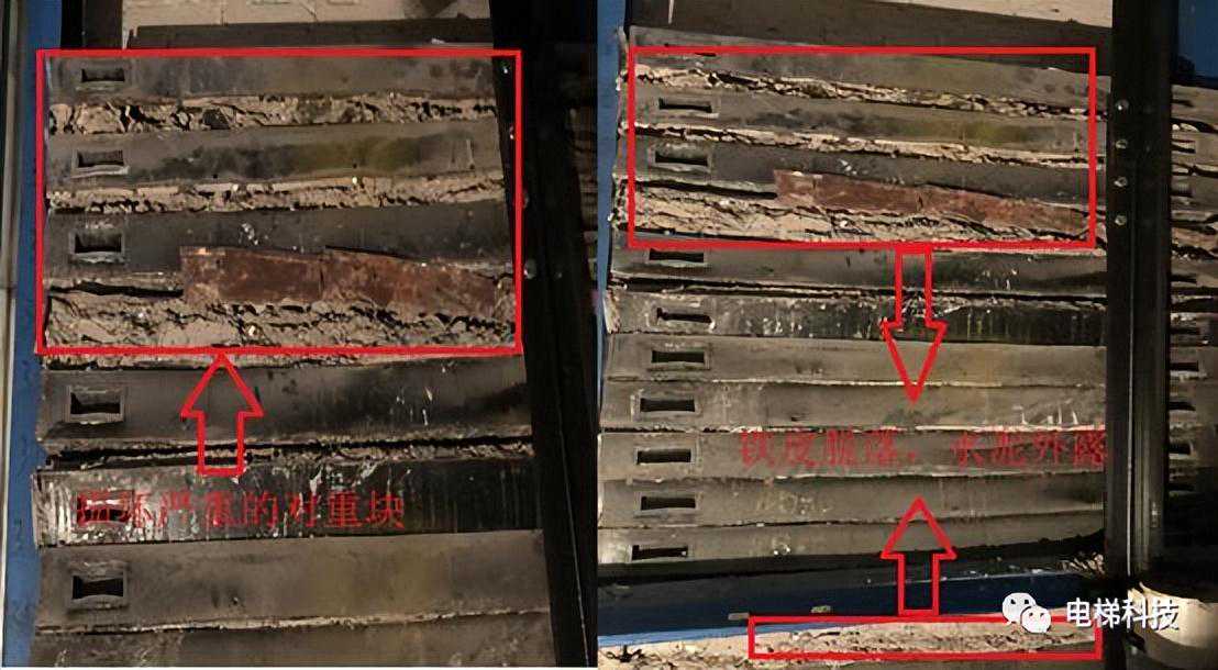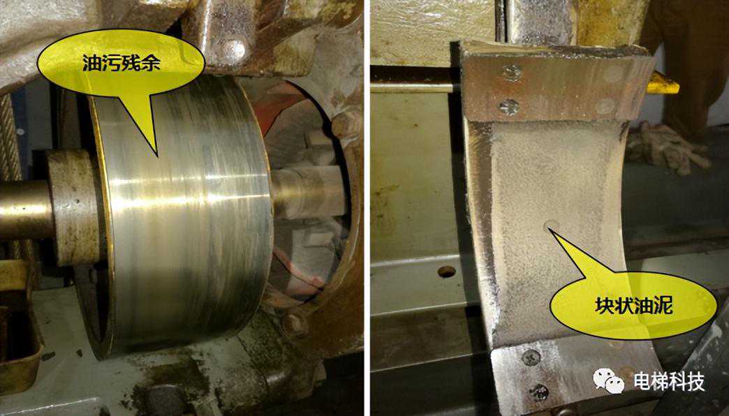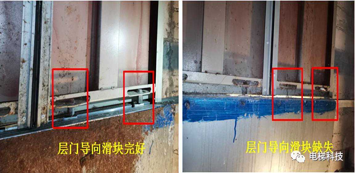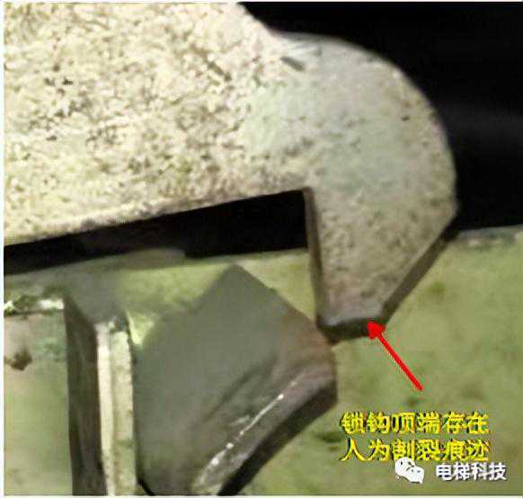 目录 一、曳引主机及制动器风险案例 案例一:电梯曳引主机制动器销轴卡阻案例 案例二:电梯曳引轮严重磨损案例 案例三:电梯曳引轮蜗轮磨损断齿案例 二、紧急救援装置风险案例 案例四:电梯手动紧急操作装置失效的案例 案例五:私自加装电梯应急平层装置致变频器损坏案例 案例六:电梯自动救援装置故障风险案例 案例七:电梯紧急电动运行失效案例 案例八:电梯轿厢意外移动保护装置失效案例 案例九:无机房电梯电动松闸装置缺陷案例 三、井道及相关装置风险案例 案例十:一起限速器-安全钳试验失效案例 案例十一:铁钉穿透线路PV管短接电梯对重缓冲器案例 案例十二:电梯液压缓冲器失效案例 案例十三:电梯限速器的张紧轮电气开关安装错误案例 案例十四:无机房电梯机械锁定装置安装位置不正确的案例 案例十五:多台电梯用井道的隔障防护不符合要求案例 案例十六:电梯对重块严重损坏案例 四、轿门与层门风险案例 案例十七:电梯层门锁未安装接地保护线的案例 案例十八:轿门门锁失效案例 案例二十:电梯层门导向滑块缺失案例 案例二十一:电梯层门欠缺防脱槽板案例 案例二十二:电梯层门锁限位螺杆缺失案例 案例二十三:电梯层门及其导向装置严重腐蚀与磨损案例 01 案例一:电梯曳引主机制动器销轴卡阻系统风险报告 2019年3月1日,珠海某物业管理服务有限公司一台电梯向下运行至5楼时突然失控下滑至底坑,造成电梯内8名乘客被困,1人受轻伤的事故。经现场技术勘查和重复试验,并对制动器进行拆解,确认制动器转臂定位销轴卡阻,是导致本次事故的主要原因。 事故发生后,珠海检测院在珠海市全市范围内开展紧急普查,并最终确认某电梯公司生产的两个系列曳引主机,制动器关键部件普遍存在“易受到锈蚀和油渍影响、故障状态不明显、维护工作要求高”等三方面的系统性风险。两个系列主机涵盖了该电梯公司生产的9个系列型号电梯。 经查,电梯维保单位未掌握该款主机的维护工作要求,且主机出现故障时状态并不明显,未经过专门培训的维保人员和检验人员,非常容易忽视,需引起监管部门以及行业的高度重视。 一、安全隐患情况 (一)现场设备情况 涉事电梯为曳引式乘客电梯,额定载重量:1000kg,额定速度:1.6m/s,曳引轮直径:620mm,配套6条复合型绳槽,配套使用直径12mm的曳引钢丝绳,电梯主机型号为2471(见图1),制造厂家为上海某电梯有限公司,制造日期:2002年10月。 图1曳引主机铭牌 该主机属于下置式蜗轮蜗杆曳引主机,配备立式电磁制动器(见图2)。 图2曳引主机 二、问题原因及风险分析 (一)事故原因 造成事故的主要原因是:该电梯曳引机立式制动器(见图3)转臂定位销轴锈蚀卡阻,造成制动器无法实施有效的制动动作。另外,制动器制动轮、制动衬垫均存在油渍污染(见图4),进一步使制动器制动性能恶化,最终造成电梯轿厢失速下滑事故。 (二)风险分析 据该立式制动器的工作原理,电磁线圈通电时,动铁芯在电磁场作用下向下移动,通过顶杆推动转臂的长臂,使转臂以支点为中心向外转动,实现短臂推动顶杆螺栓,克服制动弹簧的预紧力,使得左右两组制动臂张开,带动制动闸瓦张开,达到“松闸”的效果。 图3立式制动器示意图 图4制动轮工作面与制动闸瓦、衬垫 电磁线圈断电时,制动弹簧预紧力通过制动臂,一方面带动顶杆螺栓推动转臂的短臂,进而推动动铁芯恢复原位;另一方面通过连接螺栓,压迫制动闸瓦和制动衬垫紧密、均匀地贴合在制动轮工作面,通过摩擦力的作用使得制动轮维持停止状态,达到“上闸”的效果。 一旦转臂定位销轴出现锈蚀卡阻时,电磁力作用于转臂的长臂,能够实现推动转臂转动,从而打开制动器。但上闸时制动弹簧的预紧力是作用于转臂的短臂,无法克服销轴内部的卡阻力,转臂无法转动(注:力矩杠杆不一样,见图5),使得制动器制动闸瓦和制动衬垫未能紧密、均匀地贴合在制动轮工作面,导致电梯出现“松闸飞车”的溜梯现象。 图5事故电梯转臂定位销轴及转臂 由于转臂转动动作非常轻微,故障状态非常不明显,难以察觉,未经过专门培训的维保人员甚至检验人员,非常容易忽视该风险。 根据事故电梯使用单位提供的厂家《电梯使用维修保养说明书》、《电梯安装使用维护说明书》,其“维修保养要领”中关于制动器部件的润滑要求为轴销处应灵活,可用机油润滑(详见附件2、3)。而根据事故后该电梯公司提供的《曳引机制动器维护作业要领》(内部受控文件,详见附件4),对于制动器部件的润滑,需要使用3种规格不同的润滑油。制造厂家未向使用单位移交该款主机的正确的维护保养技术资料,导致维保人员不能掌握正确的维护保养方法。另外,维保人员在发现制动力不足后,仅是简单通过预紧制动弹簧来缓解故障情况,未真正解决该隐患。 三、防范措施 (一)制造厂家向社会公开发布该款主机制动器《曳引机制动器维护作业要领》的维护、调试指导文件,加强对相关维保单位的宣讲、培训。 (三)相关维保单位要严格按照《电梯维护保养规则》(TSGT5002-2017)第六条要求和该电梯公司型号主机制动器的《曳引机制动器维护作业要领》要求,在半月、季度、半年等维保过程中,对电梯进行清洁、润滑、检查、调整,更换不符合要求的易损件,保证制动器的性能。电梯维保单位应按照《电梯维护保养规则》“年度维护保养项目(