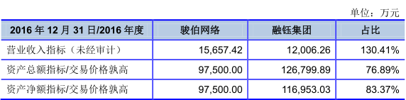 近日,融钰集团发布重大资产购买预案,拟以9.75亿现金收购李宇、潘力、牛乾坤、谢敬徐、黄灼基、刘远红、廖成枝、李京、深圳骏伯、省广资本、海润投资、珠海久银、久银控股、天星投资、捷浩创业、泰全创业、豆蔻创业、熙梦创业、恒鑫创业持有的骏伯网络100%股权。 截至2017年4月30日,骏伯网络资产的预估值为人民币9.8亿元。根据目前评估情况,骏伯网络100%股权经交易各方初步协商的交易价格为9.75亿元。此次交易构成重大资产重组,不构成关联交易及重组上市。根据公告显示,融钰集团此次拟用于交易的资金为自有资金或自筹资金,其中自有资金为主要货币资金,自筹资金拟通过银行授信等合法合规方式取得。 根据业绩承诺方面,骏伯网络2017年、2018年、2019年实现的归属于母公司所有者净利润分别不低于7500万元、9750万元、1.2675亿元。 骏伯网络概况 广州骏伯网络科技股份有限公司成立于2012年,最初注册资本为100万元,公司共经了4次股权转让、3次增资。2015年7月,整体变更为股份有限公司,2015年12月24日于全国中小企业股份转让系统挂牌。 (注:其他6名股东为省广资本、李京、海润投资、久银控股、天兴控股、珠海久银) 截至预案签署日,骏伯网络共有6家全资子(孙)公司、2家控股子(孙)公司、3家参股公司。其中,控股子(孙)公司湖南骏伯及达孜玖盟已向工商部门申请注销。此外,骏伯网络曾持有参股公司成都骏伯45%的股权,成都骏伯已于2017年6月22日完成注销。子公司中除香港聚量科技有限公司股东为广州骏伯网络科技股份有限公司外,其余子公司股东均为标的公司股东李宇。 主营移动应用分发业务2016年营收1.56亿 根据公告,骏伯网络成立于2015年2月,主营业务为移动应用分发业务。2015年开始新增流量营销业务,2016年在国内业务保持快速增长的基础上拓展海外业务,2017年开始开展移动信息流广告业务。 移动内容分发业务方面,公司主要为应用开发者和广告主提供手机移动应用分发业务,渠道包括自有渠道和第三方合作渠道,如骏伯网络旗下手机助手类的服务平台安精灵系列等;此外,公司在流量营销业务上还有流量营销综合平台流量雷锋等。 流量营销业务主要为骏伯网络向三大运营商以及其他流量平台购买优质的流量资源,用自主研发的流量营销综合平台接入三大运营商及其他流量平台,整合流量资源,再向客户指定的最终用户账户充入流量,满足开发者或广告主产品推广以及最终用户的流量使用需求,通过设计免费流量、抢流量红包等营销方案为开发者或广告主吸引用户使用。 经营状况方面,骏伯网络2016年度共实现营业收入1.56亿元,净利润4219.56万元;2017年1-4月供实现营业收入1.19亿元,净利润1875.07万元。 至评估基准日,骏伯网络账面净资产为8,555.71万元,预估结果为98,000万元,较 账面净资产增值89,444.29万元,增值率为1045.43%。 融钰集团 融钰集团成立于1998年11月4日,原名“吉林永大有限公司”,后经过更名,2016年11月更名为“融钰集团股份有限公司”。上市公司近三年正在实行战略转型,目前主营业务分为实业板块业务、创新科技板块业务、金融服务板块业务三大板块。2016年,公司共实现营业收入1.2亿元,净利润1446.82万元。 此次收购,有利于实现上市公司未来发展战略,藉由其移动互联网营销能力,进一步强化各业务板块之间的交互。同时,上市公司还可以快速切入高速增长的移动互联网行业,为公司的持续稳定发展构建坚实的业务基础,也有利于拓展骏伯网络的后续发展空间。■