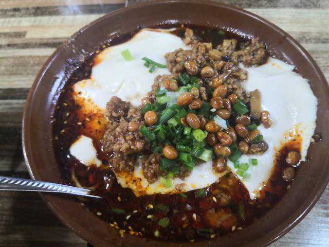 豆花为黄豆经浸泡、磨油、烧沸、过滤、点卤而成。在四川,就其老嫩程度不同,分为豆腐脑、豆花和豆腐。在北方则无区别,豆花本身就是一道名小吃。在成都郊区农家乐3元一客随便吃,价廉物美,城里专靠经营豆花为主打产品的豆花饭店,收益不菲,以此作面臊来就面吃,又是一道美味。 [原料] 亚花150克,淀粉25克,芽菜粒20克,白酱油10克,芝麻油5克,腌大头菜粒20克,油酥黄豆20克,盐酥花生仁20克,化椒粉2克,葱花5克。 [制作方法] (1)锅内清水烧沸,用淀粉勾二流芡,将豆花舀在锅里煨着。 (2)将碗内调料对好,捞入面条再将豆花舀在上面即成。 [成品特点]口感细腻嫩,麻辣且香鲜。 [诀窍方法] 冲豆花时,一定不能与石灰、盐、碱性、酸性物质接触,否则立花要起化学变化影响质量。