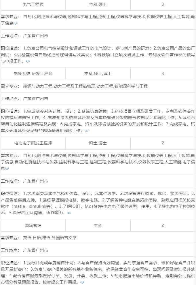 职位信息 简历接收 简历接收邮箱:zhaopin@ 招聘简章 中国电器科学研究院股份有限公司 2024届校园招聘简章 中国电器科学研究院股份有限公司(科创板简称“中国电研”,股票代码“688128”)始建于1958年,隶属世界500强中央企业——中国机械工业集团有限公司。 中国电研围绕“新能源智能汽车、智能家居”两大行业,以工业产品环境适应性全国重点实验室为依托,通过高质量科研成果转化,形成了质量技术服务、电气装备、成套装备、环保涂料及树脂等四大业务领域。 中国电研扎根广州,产业基地和服务机构遍布全国,已集共性基础技术研究为支撑、核心关键技术研发为驱动、技术标准创新为引领为一体的国家级科技创新型企业,并在绿色制造、智能制造、5G通信、医疗健康消费品、新能源装备等领域占有一席之地。 中国电研拥有14个国家级科技研发和技术服务平台,15个IEC国际标准对接平台,11个国家标准平台,30多个细分专业,自1980年以来,中国电研累计主持和参与制修订1,000多项国际、国家、行业和地方标准,拥有20多项核心技术。为全球30多个国家,10,000多家客户提供优质服务。 招聘需求(工作地点:广州) 序号 招聘职位 专业 学历 岗位职责 高端研发岗 1 低碳循环 高级研发 工程师 智能制造、绿色设计、机械设计、数据建模、循环利用及材料学 博士研究生 1.负责绿色低碳与循环利用技术应用基础研究; 2.负责科研项目的申报、成果申报等; 3.负责相关项目的管理与实施; 4.负责对外合作交流事宜。 要求 1.国家科研项目、基金和成果策划、申报、实施等经验者优先考虑; 2.有团队合作精神,和较好的语言沟通表达能力 2 材料高级 研发工程 高分子材料科学与工程、高分子化学与物理(材料方向)、材料科学与工程(高分子材料方向)或可靠性等相关专业 博士研究生 1.负责对接国家和行业技术需求,凝练科研项目,开展材料老化规律、机理、加速试验方法、服役寿命预测技术研究; 2.参与自然加速试验方法、设备研究与推广应用;参与失效分析等技术服务; 3.负责科研项目申报、研究报告编写、成果总结与申报等; 4.跟踪学科发展和行业技术需求动态,参与科研项目策划、编制科技发展规划、应用前景分析,为决策提供支持。 要求 专业基础扎实,具有科研项目申报经验;能独立承担项目,善于钻研,热爱科研。具有材料老化研究经验、国防科研项目经历或熟悉数学仿真模拟优先。 3 腐蚀与防护高级研发工程师 腐蚀与防护、金属材料、绝缘材料、电气工程(电工材料) 博士研究生 1.负责腐蚀防护、电气设备环境适应性相关课题的开展与实施; 2.负责项目申报、结项及成果申报; 3.参与腐蚀防护产品开发等工作; 4.负责环境现场监测与评价工作。 要求 产品开发经验,熟悉腐蚀电化学、材料测试分析常用设备者优先;有环境或腐蚀模拟仿真研究或工作经验优先。 4 高级研发 工程师 (储能方向) 电力电子 博士研究生 1.从事逆变、电力电子变换技术、储能技术等方面的研究和项目管理工作; 2.负责设计PCS等电力电子产品拓扑架构; 3.负责对关键元器件选型及战略规划; 4.参与储能产品战略规划,并主导电力电子产品规划; 5.博士期间有高压大功率产品设计经验; 6.进行高压大功率电力电子装置的系统设计; 7.负责大功率电力电子装置的系统测试。 要求: 1.熟悉常用IGBT、MOSFET等功率器件设计使用者优先,具有基于SiC变换器开发经验者优先; 2.熟悉控制电路设计,熟悉常用DSP(例如F28335,F2812,飞思卡尔等)和常用FPGA芯片者优先 5 高级研发 工程师 (充电桩 方向) 电力电子 博士研究生 1.负责充电桩电源系统设计和研发,提升现有产品的功率密度和效率; 2.负责重大项目系统方案设计和把关 3.负责解决现有重大技术问题和难题 要求 1.熟练掌握高频开关电源基本拓扑和常规拓扑 2.有扎实的电力电子控制相关理论基础 6 汽车热管理高级研发工程师 (社招, 上海) 能源与动力工程、制冷学、汽车热管理等 博士研究生 1.管理热管理部技术团队,并培养技术人才团队,搭建高效、稳定的研发团队; 2.全面主持汽车热管理的研发与技术管理工作; 3.负责重大项目和重点客户技术交流工作,并为客户提供第三方解决方案; 4.组织制定和实施重大技术决策和技术方案,制定技术发展战略、规划发展方向; 5.分析测试数据,并提供故障分析、诊断、优化和质量提升建议; 6.完成热系统和零部件等建模、仿真分析,并结合产品完成优化设计; 7.参加行业会议、标准制修订等,了解行业发展方向,并指导热管理版块发展技术路线; 8.负责组织核心技术研究和攻关工作,不断地快速提升核心技术; 要求 1.3年以上相关新能源汽车车企、热管理系统、压缩机或试验装备等企业热管理研发或系统匹配经验; 2.熟悉新能源汽车热管理系统和零部件等行业发展趋势、技术和检测标准等; 3.工作负责,对业务理解深入,具备很强的执行力和高度敬业精神; 4.有主流车企热管理相关资源优先; 标准检测认证岗 1 标准检测技术工程师 电磁、生物医药工程、通信、测控、自动化、电子类、制冷、化学工程、高分子、轨道交通、绝缘防腐蚀、电机电器、控制理论与控制工程 硕士研究生 1.负责智能家居、新能源汽车、医疗器械、电子通信等不同行业领域检测技术研究,熟悉响应国内及国际标准要求; 2.负责上述领域新技术、新领域的技术研