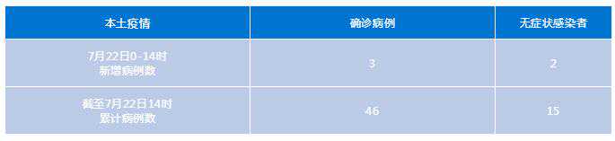 “0715”本土疫情专报 7月22日0-14时,我市新增本土确诊病例3例,本土无症状感染者2例,均为隔离管控中的密切接触者。截至22日14时,本起疫情累计报告本土确诊病例46例,本土无症状感染者15例。 新增本土确诊病例3例 新增本土无症状感染者2例 病例57:居住于龙泉驿区中国电建云立方小区,系病例49的密切接触者,诊断为本土无症状感染者。 病例58:居住于龙泉驿区黎明小区,系病例49的密切接触者,诊断为本土确诊病例。 病例59:居住于龙泉驿区蓝天小区,系病例49的密切接触者,诊断为本土确诊病例。 病例60:居住于龙泉驿区五星嘉园小区,系病例49的密切接触者,诊断为本土无症状感染者。 病例61:居住于龙泉驿区怡和新城小区E1区,系病例49的密切接触者,诊断为本土确诊病例。 目前我市高风险区共34个,分别为 高新区(2个):南苑B区6栋,复地金融岛5栋 锦江区(4个):南府锦1栋,南糠市街48号大院2栋(含底商),昆仑华庭,龙湖晶蓝半岛A区1-2栋(含底商) 青羊区(4个):怡馨花园5栋,十二桥路16号附2号10-11栋,清水绿苑3栋,清溪南街18、20号院11-12栋 金牛区(1个):首开龙湖紫宸小区(一期)3栋 武侯区(5个):中海格林威治城2栋(含底商熙美本色医疗美容),一环路南四段28号小区1栋,江天路1号院1-2栋,玉林北街70号1-2栋,锦宏骏苑北区4-5栋 成华区(2个):金科天籁城2栋(含底商),海棠名居5-8栋(含底商) 龙泉驿区(14个):驿都城二期7栋(含底商),桃花源别墅27区11-12栋,炜岸城40-41栋(含底商),丽阳社区D区13栋(含底商),吾悦华府7栋(含底商),馨竹苑5栋(含底商),文豪世苑2栋(含底商),金茂·悦龙山小区9栋,龙兴苑小区,来龙村江华路314号楼(含底商), 黎明小区2栋(含底商),怡和新城E1区8栋(含底商),中国电建云立方小区9栋(含底商),蓝天小区(含底商) 新都区(2个):圣采·泊尚17-18栋,润扬·观澜鹭岛一期7栋(含底商) 中风险区共37个,分别为 天府新区(1个):麓湖生态城澜语溪岸1栋 高新区(2个):南苑B区除6栋外其他楼栋,复地金融岛小区1-4、6-18栋 锦江区(5个):南府锦2栋,南糠市街48号大院1、4栋(含底商),莱茵春天小区(含底商),龙湖晶蓝半岛A区3栋(含底商),锦东庭园14-15栋 青羊区(4个):怡馨花园1-4、6-9栋,十二桥路14号附1号、16号附2号4-9栋,清水绿苑1-2栋,清溪南街20号院10栋 金牛区(1个):首开龙湖紫宸小区(一期)1-2栋(含底商) 武侯区(4个):中海格林威治城3-7栋,一环路南四段28号小区2-6栋,锦宏骏苑北区1-3栋,百花公寓1-2栋 成华区(4个):金科天籁城1、4栋、6-11栋(含底商),双林南支路1号1栋,海棠名居1-4、9-13栋及对外停车场(含底商),华油巷9号 龙泉驿区(12个):驿都城一期、二期(含底商,7栋及对应底商除外),桃花源别墅27区10栋、28区8-11栋,丽阳社区D区14-15栋(含底商),洪安镇长伍村二组石院坝,吾悦华府2-6、8-10栋(含底商),馨竹苑1-4、6-8栋(含底商),文豪世苑1、3栋(含底商),金茂·悦龙山小区1-8、10-13栋(含底商),来龙村江华路306号楼(含底商), 黎明小区1栋、3-24栋(含底商),怡和新城E1区除8栋以外的其他区域和E4区28栋(含底商),中国电建云立方小区1-11、13-16栋(含底商) 新都区(2个):圣采·泊尚小区除17-18栋外其余楼栋(含底商),润扬·观澜鹭岛一期除7栋外的其他楼栋(含底商) 温江区(1个):蓝光香瑞湖9-49栋 崇州市(1个):街子镇天祥小区 天府新区、高新区、锦江区、青羊区、金牛区、武侯区、成华区、龙泉驿区、新都区、温江区、崇州市除高、中风险区区域以外的其他区域为低风险区。 7月22日起,锦江区锦东庭园14-15栋,武侯区百花公寓1-2栋,天府新区麓湖生态城澜语溪岸1栋由高风险区降为中风险区;锦东庭园1-13栋(含底商),武侯区人民南路四段15号,天府新区麓湖生态城澜语溪岸2-3、5-9栋由中风险区降为低风险区。 为方便市民排查风险轨迹,现将我市本轮本土疫情病例活动轨迹整理如下,请市民朋友们对照自查。如与以下活动轨迹有重叠,立即向社区和单位(或居住的酒店)报备,三天内接受两次核酸检测(间隔24小时),期间做好个人防护,不聚会、不聚餐。如有疑问,请拨打12345咨询。 《成都市“0715”本土疫情病例活动轨迹风险点位一览表》 数据更新至:2022年7月22日14时 高新区 时间 活动轨迹 7月14日17:00-19:00 天府名居4栋(天顺路66号) 7月14日19:00-20:30 小灶王土菜馆(天久南街37号) 7月16日12:00-15:00 复地金融岛5栋1单元 锦江区 7月13日-7月15日 锦江一丹口腔诊所(下莲池街5号附3号) 7月14日11:25-23:15 莱茵春天茶楼(武成大街2号) 7月13日17:30-19:00 巍扬健身工作室(春熙路店) 7月13日8:20-8:25 红旗超市(下莲池分场店) 7月13日18:35-18:45 锦江庹氏诊所(龙王庙正街100号) 7月14日11:50-20:00 IFS国际金融中心 7月14日11:55-12:40 上海小南国(IFS国金中心店) 7月14日20:00-20:45 爱马仕(成都远洋太古里店) 7月14日10:20-13:50 冰雷破网咖(奇幻旅程店) 7月14日13:50-14:30 老街称盘麻辣烫(太古里店) 7月14日21:19-23:30 沃美影城(春熙路店) 7月14日21:15-21:16 四川特产(春熙路走马街53号) 7月14日23:45-23:55 乐山钵钵鸡(三圣街49号流动摊) 7月14日23:55-24:00 星星亮超市(东糠市街55号) 7月14日14:00-16:30 成都瑞酒店(橡树林路163号) 7月16日10:30-10:50, 17:25-17:32 方钰辉生鲜超市(宏济新路154号) 7月16日10:51-11:02 天主堂鸡片(宏济新路87号) 7月16日11:11-11:18 艾雪儿豆制品(莲花北路6号附65号) 7月16日11:19-11:30 龙泉直销水果店(莲花北路6号) 7月13日18:30-18:45 红旗超市(阳光便利店) 7月16日12:20-13:00 小山通讯(新半边街店) 7月13日16:18-17: