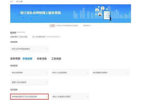 社保业务省集中后,可以通过“杭州人力社保”微信公众号、浙江政务服务网、杭州市社会保险网上办事大厅、华数自助机等多种渠道打印参保证明。 一、“杭州人力社保”微信公众号 个人参保证明打印 二、浙江政务服务网() 个人参保证明打印 登录浙江政务服务网(),个人登录后,在搜索框搜索“社保证明打印”; 选择[浙江省]社保证明打印; 选择个人社保证明; 选择打印月数、养老保险类型和参保地后,即可打印所需证明。 单位参保证明打印 登录浙江政务服务网(),法人登录后定位到“杭州市”,选择部门窗口“市人力社保局”。 在“浙江省社会保险网上服务系统”单位管理中,选择“参保单位查询打印社会保险信息”,查看单位基本信息和人员清单; 三、杭州市社会保险网上办事大厅() 个人参保证明打印 登录杭州市人力资源和社会保障局网站(),选择杭州市社会保险网上办事大厅或直接登录杭州市社会保险网上办事大厅(),选择个人用户登录,或支付宝扫二维码登录。 在业务经办列表中选择“个人参保证明打印”; 选择参保地、参保证明类型、打印月数后,即可查询或下载参保证明。 登录杭州市人力资源和社会保障局网站(),选择杭州市社会保险网上办事大厅或直接登录杭州市社会保险网上办事大厅(),选择单位用户登录; 选择业务经办; 在在职员工列表中勾选人员,打印或下载参保证明(只打印医疗保险和生育保险)。 四、华数自助机 个人参保证明打印 刷身份证或刷脸后,输入手机号码,认证本人; 选择社会保障——社保——社保综合服务; 选择证明待遇——个人保险参保证明;