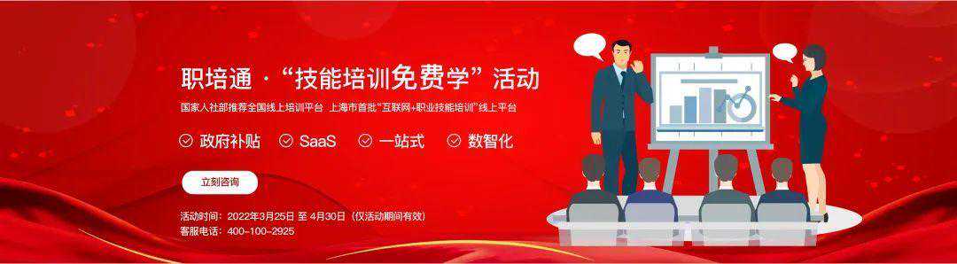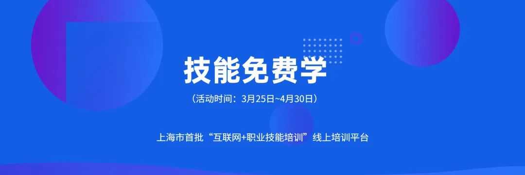 为切实做好本市新冠肺炎疫情防控工作,鼓励支持广大劳动者参加线上职业技能培训,大力推进职业技能提升行动,同时丰富广大市民居家生活,市人力资源社会保障部门组织本市征集入围的12家“互联网+职业技能培训”线上培训平台,开展“技能培训免费学”活动,推出一批适合疫情期间居家学习的免费技能培训课程向本市市民开放。 活动主题 技能培训免费学 活动时间 即日起至2022年4月30日 活动内容 活动期间,12家征集入围的“互联网+职业技能培训”线上培训平台,推出400余门培训课程,涵盖生活服务、餐饮美食、新兴职业等多个职业领域,包括中西式面点、茶艺、互联网销售、大数据思维与运用、供应链运营管理、网络与信息安全等课程内容,总时长达到2万个小时,全部向本市市民免费开放使用。 活动方式 小贴士 参加线上课程学习,不仅可以丰富居家生活,学会各种技能,还可以为今后参加相关职业技能等级认定做好准备,取得职业技能等级证书还可按规定享受职业技能提升补贴。 “技能培训免费学” 线上培训平台及部分课程 上海职业技能互联网移动培训云平台 () 上海职培通网络科技有限公司 平台名称及网址: 职培通 部分课程: 美容、西式面点、中式面点、茶艺、移动互联网思维、互联网销售等 上海海盾安全技术培训中心 平台名称及网址: 海盾实训系统 部分课程: 网络安全配置与防护、应用安全管理、网络安全与防范等 中教畅享(北京)科技有限公司 平台名称及网址: 电子商务职通车 部分课程: 微课拍摄与制作、PS基础课程、PC端网店装修、移动端网店装修等 大能手教育科技(北京)有限公司 平台名称及网址: 技能大师在线培训平台 部分课程: 网络与信息安全、无人机驾驶、电工、家政服务、健康管理等 天津津陇联合教育科技集团有限公司 平台名称及网址: 技能通 部分课程: 网络与信息安全管理、无人机驾驶、物联网安装调试、建筑信息模型技术、焊工等 北京络捷斯特科技发展股份有限公司 平台名称及网址: 长风网 部分课程: 数据可视化分析,供应链运营管理,运输操作管理、国际货运代理操作等 深圳市企鹅网络科技有限公司 平台名称及网址: Q学友 部分课程: CAD制图、物联网安装调试、超市理货、仓储管理等 北京爱迪科森教育科技股份有限公司 平台名称及网址: 爱迪学堂-云学院 部分课程: PhotoshopCs、模具工、客房服务等 北京国人通教育科技有限公司 平台名称及网址: 学习公社 部分课程: 人力资源管理技能提升项目,包括人力资源的新状态与管理变革、培训课程设计与组织实施要点等 北京晟融信息技术有限公司 平台名称及网址: 安知职业培训平台 部分课程: 快递员、营业员、物业管理、电子商务等 深圳市百都汇科技有限公司 平台名称及网址: 百都汇课堂 部分课程: 育婴员、养老护理、保安员等 湖北中潮教育科技集团有限公司 (原:武汉市中潮互联网教育有限公司) 平台名称及网址: 融e学 部分课程: 大数据思维与运用、创业企业市场营销、员工法律素养等