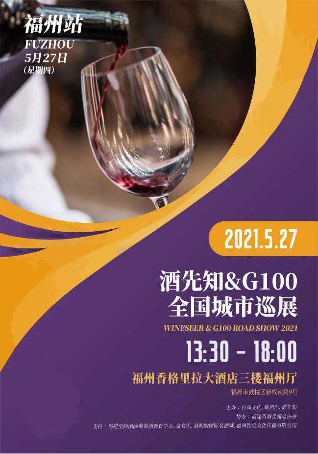 福州是首批14个对外开放的沿海港口城市之一、海上丝绸之路门户以及中国(福建)自由贸易试验区三片区之一,也是近代中国最早开放的五个通商口岸之一。2020年生产总值达10020.02亿元,同比增长5.1%,首次突破万亿元大关。优越的政策支持使福州成为中国第三大葡萄酒贸易枢纽,清爽型葡萄酒在这里受到极大的欢迎。 5月27日,酒先知G100巡展即将抵达福州,携千款全球精选佳酿亮相福州香格里拉大酒店3楼福州厅。轻松畅谈的交流平台,高效优质的选品圣地,近40家品牌展商为您精心准备了一场世界葡萄酒品鉴之旅。现场还有张东晨老师主讲的“马德拉大师班”及精彩的抽奖环节,不要错过~ 去年福州站盛况↓ 此,主办方诚意邀请您前来交流、品鉴,共赴美酒盛宴! 品鉴会 5月27日13:30-18:00 福州香格里拉大酒店3楼福州厅 *酒先知G100巡展为专业类展览,18岁以下人士不予入场 大师班 13:00-15:00 《马德拉大师班》 抽奖环节 14:30,15:30,16:30三轮抽奖 精美礼品不要错过哦~ ◆沃迪安起泡酒价值128元 ◆零度·自由脱醇红/白汽泡价值90元 ◆艾菲啤酒礼盒尝鲜套餐价值89元 ◆酒先知特供迷你行李箱价值99元 福州站企业名录 法国产区 江苏馥森汇酒类供应链管理有限公司 泸州老窖进口酒 上海嘉珏国际贸易有限公司 浙江酩源供应链管理有限公司 VINLUXE嘉隆巴黎·波尔多·杭州·温州 广州琦康贸易有限公司 智利产区 干露葡萄酒集团 广州玛图酒业有限公司 广州市玛众斯酒业有限公司 西班牙产区 葡萄牙产区 马德拉之家 青岛启森国际贸易有限公司 意大利产区 杭州奇诺贸易有限公司 新西兰产区 卷云(Cirro)酒庄 新西兰帝王嘉酒庄TeAwangaEstate 美国产区 上海东珍贸易有限公司 中国产区 宁夏力富大漠酒庄有限公司 浙江楼兰葡萄酒销售有限公司 多国产区展商 福建祥实进出口贸易有限公司 香港华远万通国际贸易有限公司 酒猎头 义乌市稀昂酒行 广州图慕商贸有限公司 二八法则(广州)国际贸易有限公司 宁波保税区米望酒业有限公司 天河国际 wine+ 北京乡里香舍科技有限公司 爱爵希尔商贸有限公司 协办单位 福建省酒类流通协会 支持单位 福建至尚国际葡萄酒教育中心 益食汇 酒购购国际名酒城 福州饮觉文化传播有限公司 酒先知G100全国城市巡展值得您前来 ◆品质保证--主办方优选高品质展商,大品牌酒款,让您选品无忧。 ◆高效选酒--来自全球的精品佳酿汇聚一堂,无需奔波,4小时高效逛展。 ◆低成本,高利润--直接对接一手酒商,精简供应链。 ◆信息共享--面对面互通行业最新资讯,获取更多有竞争力的上游供应商信息。 编辑|酒先知G100巡展团队 -END-
