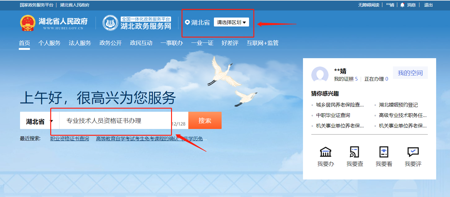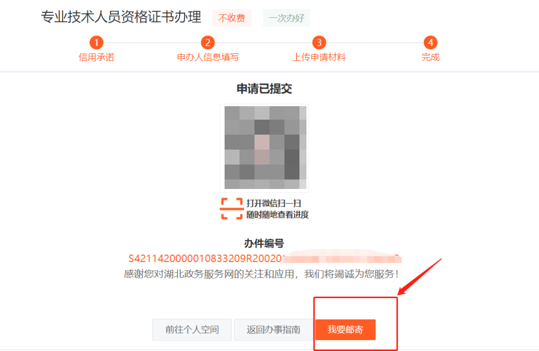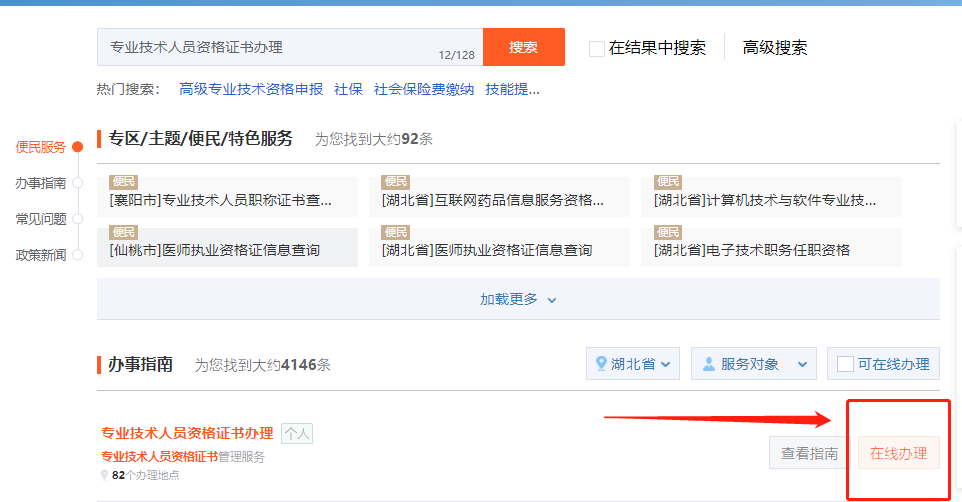 根据湖北省人事考试网公布, 今年已有如下专业技术人员资格证书可办理 顺利通过了 专业技术人员职业资格考试 但还没有领取证书的朋友们 赶紧来领取证书吧!~ 这里小鄂告诉大家一个便捷方式 来湖北政务服务网 足不出户就能完成各类证书的在线申领~ 快来跟随小鄂一起看看吧 如何进行证书申领? 办理对象 准考证或中国人事考试网下载的成绩单上报名地市为“湖北省省直”的考生。 温馨提示:准考证或成绩单上报名地市为“湖北省×××市(州)”的考生请到相应市(州)人事考试机构办理。例如,准考证或成绩单上报名地市为“湖北省武汉市”的考生,请到武汉市人事考试院(江汉区新华路25号伟业大厦)领取证书。 办理方式 01网上办理流程 04提交申请后,系统将自动生成办件编号,可使用微信扫二维码,随时查看办件进度。 特别提醒:如需办理证书邮寄,请选择「我要邮寄」,按照要求填写邮寄地址,确认无误后,根据页面提示支付邮费即可。 02现场办理流程 01办理地点:武昌区东湖西路特1号,湖北省人力资源社会保障厅社保大楼附二楼,湖北省人事考试院办证窗口。 02办理时间:工作日上午8:30-11:30,下午14:00-17:00。节假日除外。 03办理材料:需携带考生本人的身份证或社保卡原件;如需代领证书,代领人还须出示本人身份证或社保卡原件。 需要申领证书的朋友 赶紧打开“湖北政务服务网”办理吧~ 据某热心市民透露: 她从网上申请到收到证书只用了三天! -- “办事不出门,随时随地办” -尽在鄂汇办- 主管单位:湖北省政务管理办公室 技术支持与运营:湖北省楚天云有限公司