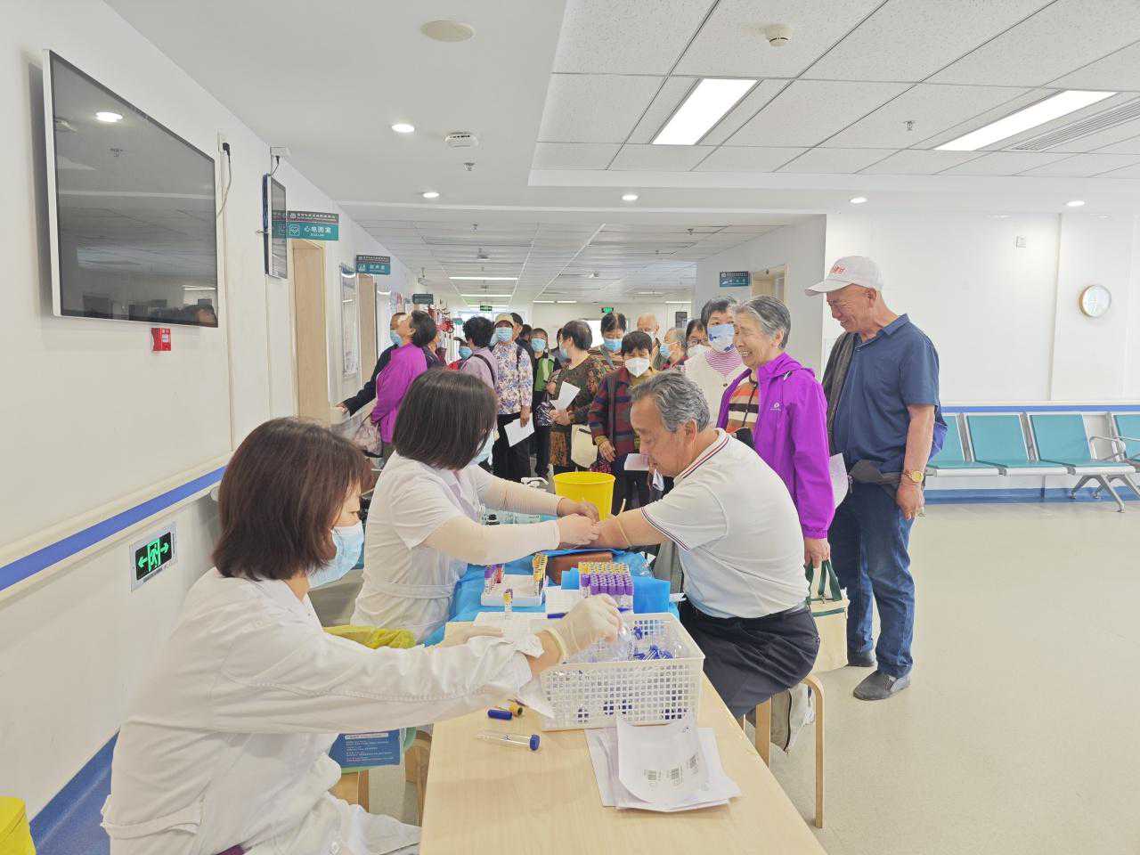 为增强社区老年人保健意识和健康水平,为老人提供暖心、便民的服务,4月22日,霍家营社区联合霍营社区卫生服务中心为辖区65岁以上老人开展免费体检活动。 体检当天,社区安排大巴车护送40余名老人前往社区卫生服务中心进行体检,4名社区志愿者全程陪同,确保老人在体检中得到更加细心、贴心地照顾和帮助。 体检现场,志愿者们协助做好引导,医护人员则认真细致地为每位参加体检的老年人提供血常规、尿常规、肝肾功能、血糖血脂、一般体格检查、心电图、B超等多项检查。 此次体检活动提高了社区老人对自身健康的认识,做到无病早预防,有病早发现、早治疗,让老人们感受到基本公共卫生服务带来的“看得见、摸得着”的实惠,不断提升老人获得感、幸福感、安全感。