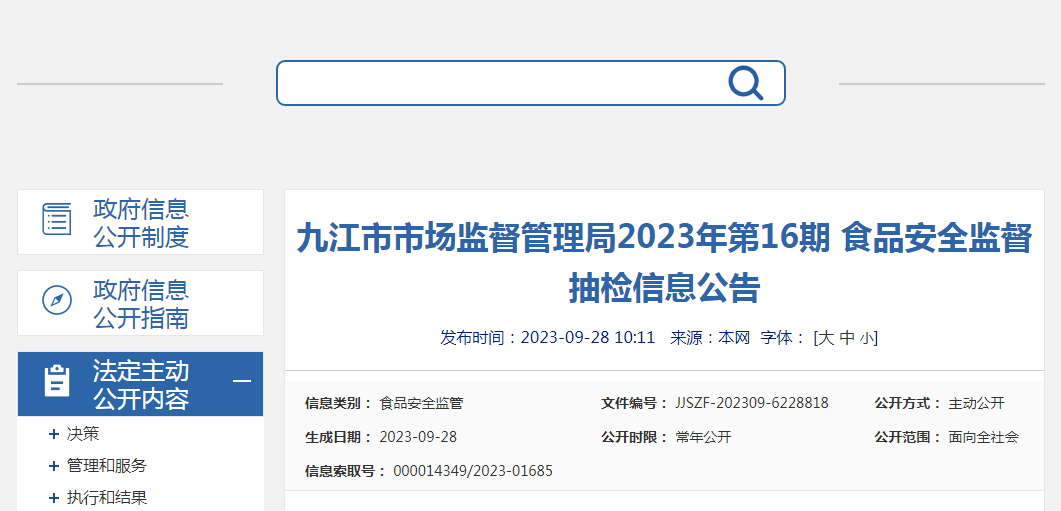 2023年江西守查保专项抽检九江市检验检测认证中心/