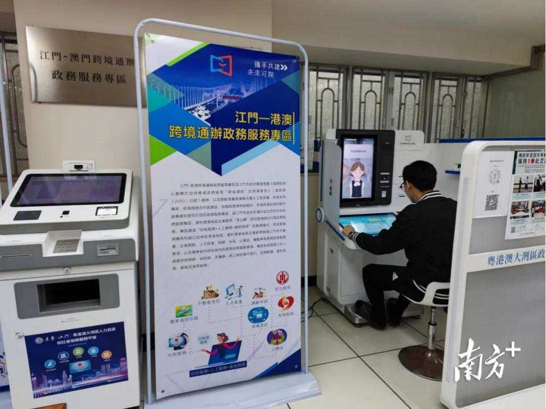 在全国率先建设港澳人社服务点 从2020年起,江门市依托港澳社会组织(澳门五邑同乡会、香港五邑总会等)、社会保障卡合作银行等合作资源,在全国率先建立31个港澳人社服务点(在港澳地区)。 港澳居民可在服务点的自助服务终端办理职工养老保险待遇资格认证、打印社保参保凭证和查询社保参保信息。目前,江门港澳政务服务点已累计为7000多名港澳居民提供服务。 建设“湾区社保通”服务专窗 江门市依托省政务服务网“湾区社保通”专区、“粤智助”平台等信息化平台,在全市各级社保经办服务大厅设立14个湾区社保通服务专窗,为澳门居民提供社会保障再生认证协同服务。 澳门居民在江门-澳门跨境通政务服务专区办理社保业务。 目前,“湾区社保通”服务专窗已为超100名澳门居民提供澳门社会保障协同服务。持续推进社保业务湾区通办,深化社银合作,利用“粤自助”等自助服务终端设备将社保服务颜射至全市1324个村居,实现77项社保业务跨域通办、全流程网办,18项社保业务全省通办、线下通办,让湾区事方便办、就近办。 推广“湾区社保通”网办专区 以港澳青年创新创业孵化平台为载体,依托广东省政务服务网“湾区社保通”专区,江门市积极推广“湾区社保通”网办专区,在产业园区、合作银行等设立“湾区社保通”网办专区,让港澳青年方便办理社保业务,解决港澳青年创新创业的后顾之忧。在珠西先进产业优秀人才创业创新园区建立中小微企业社保首席服务联络点,为港澳青年“点对点”提供专属服务。 南方+记者张泳渝
