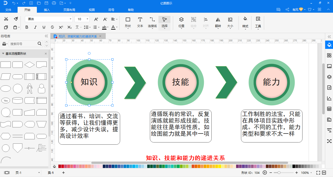 能力模型描述了要实现企业整体战略目标所必需的一些行为,技能和知识配置。建立能力模型,第一步是要理解企业远景和发展战略,第二步是明确界定企业成功关键因素,第三步是明确核心能力并对这些能力进行清晰的定义和描述,第四步是进行能力分解与分级,最后一步是形成能力模型库。能力模型是企业关键成功领域中核心竞争力的具体表现。 消防工作是一项非常重要的工作。它关系到国计民生和社会安定,与每个人都有着密切的联系。做好消防工作,对于保卫社会主席现代化建设事业,保障人民生命财产免受火灾、水灾等的危害,具有重大的意义。 能力模型的制作方法十分简单,通过以下几个步骤,即可轻松绘制出一幅专业实用的能力模型。 第四步:双击文本框,替换能力模型模板里的文字。 我们常常纠结于使用什么软件来画能力模型比较方便,总感觉只要是画图软件都能绘制,但就是还没有找到现成的模板,而亿图图示就提供了各种各样的相关模板,只要在搜索框中输入能力模型,就能显示出众多模板以供选择,这样就有效地提高了我们的绘图效率。亿图图示不仅能够画能力模型,而且有流程图、柱形图、甘特图等等众多模板可选择。它能够将一些复杂的图表绘制过程变得简单,只需要通过搜索关键字就能找到相关模板,如果找不到,新建画布,拖拽图形,便能很快绘制好,提高我们工作效率。 1、界面简洁,操作简单 2、云同步不丢失,跨平台处理 3、兼容性强,支持多种格式