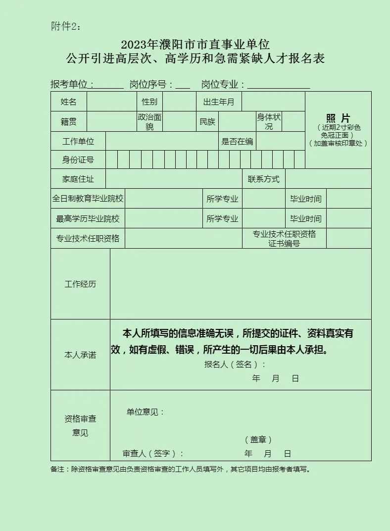 关于进行2023年濮阳市市直事业单位公开引进高层次和急需紧缺人才资格复审的公告 根据《2023年濮阳市市直事业单位公开引进高层次和急需紧缺人才公告》《事业单位人事管理条例》《濮阳市事业单位招才引智“绿色通道”实施细则》(濮人才办〔2022〕4号)等有关规定,现将公开引进高层次和急需紧缺人才资格复审事宜公告如下: 一、资格复审时间及地点 (一)资格复审时间:2024年1月10日至11日(8:00—12:00,15:00—18:00) (二)资格复审地点:濮阳市人力资源和社会保障局南培训楼7楼会议室(开州路南段205号) 二、资格复审人员须提交的材料 (一)报名表(见附件2)一式4份。 (二)与报名上传照片同版的近期2寸彩色免冠正面照片4张。 (三)本人有效二代身份证(或有效期内二代临时身份证)原件及复印件3份。 (四)学历学位证书、学历学位认证报告(或教育部学历证书电子注册备案表)原件及复印件各3份。 (五)机关事业单位在编在职人员(含已辞职但手续未办结人员),需提供现工作单位、主管部门和组织人事部门同意报名的证明(现工作单位主要负责人签字,并加盖工作单位、主管部门和组织人事部门公章)。 (六)报考岗位有其他条件要求的,需提供相应的证明材料原件及复印件各3份。 三、资格复审注意事项 (一)资格复审须考生本人参加,资格复审所需材料和证件均要求提供原件,且相关复印件均由考生自行准备。经工作人员审查合格后,原件退回,复印件留存。 (二)参加笔试的人员,按照附件1公布的名单进行资格复审。直接进入面试的岗位,按照报名成功人数进行资格复审。 (三)资格复审确认合格的考生,请妥善保管报名表。参加面试需携带本人有效二代身份证(或有效期内二代临时身份证)和审核通过的报名表。 (四)资格复审不合格、应聘者本人未在规定时间内到指定地点进行现场资格复审、未按规定提交复审材料或提交复审材料不完整的,均视为资格复审未通过,取消其面试资格。 (五)资格审查工作贯穿公开引进工作始终。考生须对照公告确定的引进岗位和条件如实申报,所提供的审查材料必须齐全、真实、有效。凡发现报名人员与拟引进岗位所要求的资格条件不符以及提供虚假材料的,一经查实,取消其引进资格。 四、资格复审顺延 因资格复审未通过出现人员空缺的,依据笔试成绩从高到低顺延进行资格复审。 笔试总成绩计算:笔试总成绩=职业能力测验成绩×50%+公共基础知识成绩(或教育类专业知识成绩或卫生类专业知识成绩)×50%。 在资格复审中,根据笔试成绩,按照岗位需求和进入面试人员1:3的比例从高分到低分确定拟进入面试人员,笔试末位并列的,一并进入面试;达不到比例的,按参加笔试实际人数进行资格复审;不用参加笔试的,全部确定为进入面试人员。如出现因参加资格复审人员未到指定地点参加复审、不符合岗位报考条件,或形不成竞争等原因导致引进岗位数与进入面试人员数未达到1:3规定比例的,按现有人员进行面试。 附件: 1.《2023年濮阳市市直事业单位公开引进高层次和急需紧缺人才参加笔试岗位人员复审名单》 2.《2023年濮阳市市直事业单位公开引进高层次和急需紧缺人才报名表》 中共濮阳市委组织部 濮阳市人力资源和社会保障局 2024年1月6日 初审:宋冬冬 终审:杨慧 1.事关寒假,教育部最新通知! 2.最低工资标准调整!濮阳不得低于…… 3.评审结果公示,濮阳36名老师通过!快看有你老师没? 4.最新!濮阳这些人因酒醉驾被曝光!