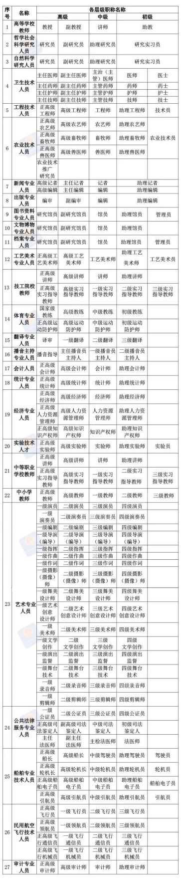一图了解27个职称系列(专业)各层级名称↓