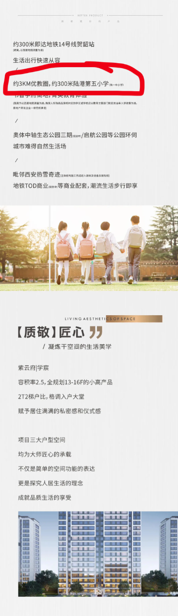 打开西安登记平台发现,港务区华润润玺臺今日登记遇冷!要知道在4月份润玺臺西区10号楼可是摇号开盘的“战绩”。 登记遇冷难道是这两天闹得沸沸扬扬的“虚假宣传”风波?华润被业主曝出虚假宣传,欺骗业主孩子上学不兑现! 这件事在业内引起了不小的轰动,铁一小如果今年开不了学,将影响华润港悦城、紫云府、润煕臺部分业主的孩子上学…… 那么润玺臺爆冷背后的原因是什么呢?港务区央企华润到底有没有“涉嫌”虚假宣传?陆港五小今年9月是否能正常开学?跟随房博士来一探究竟! 01润玺臺登记首次遇冷!华润疑似“虚假宣传”风波? 润玺臺在今年开盘了4次,其中在4月份西区10号楼那次是摇号开盘,当时10、12#楼,共有108套房源,截止到20日下午14时,申请登记人数仅有28个,连三分之一的房源都未达到。 可以说这是润玺臺登记首次爆冷!比6月初登记的数据情况还要惨! 不由让人想起,最近在某媒体平台上的一条消息,标题为西安港务区央企楼盘华润虚假宣传,欺骗业主学区孩子上学不兑现。 很多业主在群内转发,根据文章内容我们看到,是因为华润在前期销售中,承诺陆港五小九月开学。结果买了之后,业主得知今年9月开不了学。 所以华润港悦城、紫云府、润煕臺出来控诉华润“虚假宣传”,欺骗业主,部分业主孩子到了适龄阶段入学之际今年开不了学。 并且有图有真相,晒出了当时销售置业顾问的朋友圈截图,上边的宣传图写着“港悦城旁,陆港五小、铁一小九月开学”等字样。 朋友圈截图 还有业主晒出当时项目售卖的宣传单页,上面写着“约3KM优教圈,约300米陆港第五小学(铁一中小学)”字样。 宣传单页 在华润置业西安公司公众号的润煕臺项目宣传单页的标语上,也明确写着“地铁口、铁一中小学;约150米铁一中小学(建设中)”。 部分业主为此事去咨询了港务区教育局的相关负责人,对方明确表示,陆港五小今年9月开不了学。 其实今年2月,铁一中官方在2023年重点工作中明确提到“筹建西安国际港务区陆港第五小学”,而当时,多方均有消息传出,陆港五小预计今年秋季开学,将提供7000个学位,成为板块内最快投入运营的名校+。 除此之外,铁一中官方并未宣布正式接手陆港五小,目前陆港五小学校操场还未建成。 难道这事是真的? 02 事情反转!不涉及学区划分 “虚假宣传”是造谣! 此事一出,华润项目相关工作人员回复说,已经跟业主积极沟通了,而且在购房合同中并未承诺学校,新房未交付时并不划分学区,学区划分要等交付后教育局根据当年的政策划分。 合同中注明了销售时处于规划或建设阶段的教育设施,可能因为各种原因延期开学,变更规划甚至取消。 华润项目相关负责人说,已经当面跟业主解释,并且购买时业主都在表明以上内容的合同上签字,业主是知情的,虚假宣传属于造谣。 根据划分政策,未交付的新房的确是不能划分学区的,所以不涉及学区划分问题,而且在购房合同中提示了规划或建设中的学校可能会因为各种原因延期开学,甚至变更规划。 前期宣传信息均有官方出处,当时说的也是预计,铁一小是发改委发布的消息,然后华润才宣传的,不涉及虚假承诺。 而且华润置地还在积极帮助业主沟通教育局,协调上目前已经开学的(绝对非村小)师大或者其他学校,解决未交付子女的上学问题。 所以华润“虚假宣传”的“指控”并不成立! 03 港务区名校+楼盘琳琅满目 不要盲目追随名校! 无论新房还是二手房,购房者对学区房的热爱,尤其是优质学区的追捧,已经是根深蒂固。 为了避免开发商以学区绑定销售的情况,在2018年西安明确了严禁将房屋销售与学区、学校相关联。 但现在似乎一个新区的“繁荣”离不开名校的引进、签约和落地。港务区不是个例,很多新区都是通过名校+的效应,促进人口的流动、迁徙,而这对开发商来说,也是销量的一个重大利好。 但其实好的教育并不能完全依靠所谓的名校落地去实现,而一个带有优质学区的新房也不能“一劳永逸”,后期靠它有多高的溢价脱手。 未来学区房的优势会越来越不明显,这是大势所趋,在今年西安刚公布的招生入学工作中就明确提到,“坚持公民同招”,“坚持计划管理”,“坚持公平公开公正”。 在公办学校“学区划分”中,提到了“教育资源不够均衡的区域,慎重稳妥实行多校划片。”多校划片某种程度上很像房地产税,大家都知道会来,但不知道什么时候会来。 现在西安的教育天平有倾向,所谓的五大名校,前50强等,但未来会更多的解决教育公平的问题,去年的民转公就是很好的“证明”。 教改的方向已经很明确了,民转公只是第一步,而后再慢慢推行多校划片、教师轮岗、生源限定。 所以奉劝大家不要豪赌学区房,包括二手房,大家不要去为了优质学区掏空腰包!所有的改革都是为了更大程度上实现教育公平,利空学区房,购房者就不要盲目从众,谨慎购买。