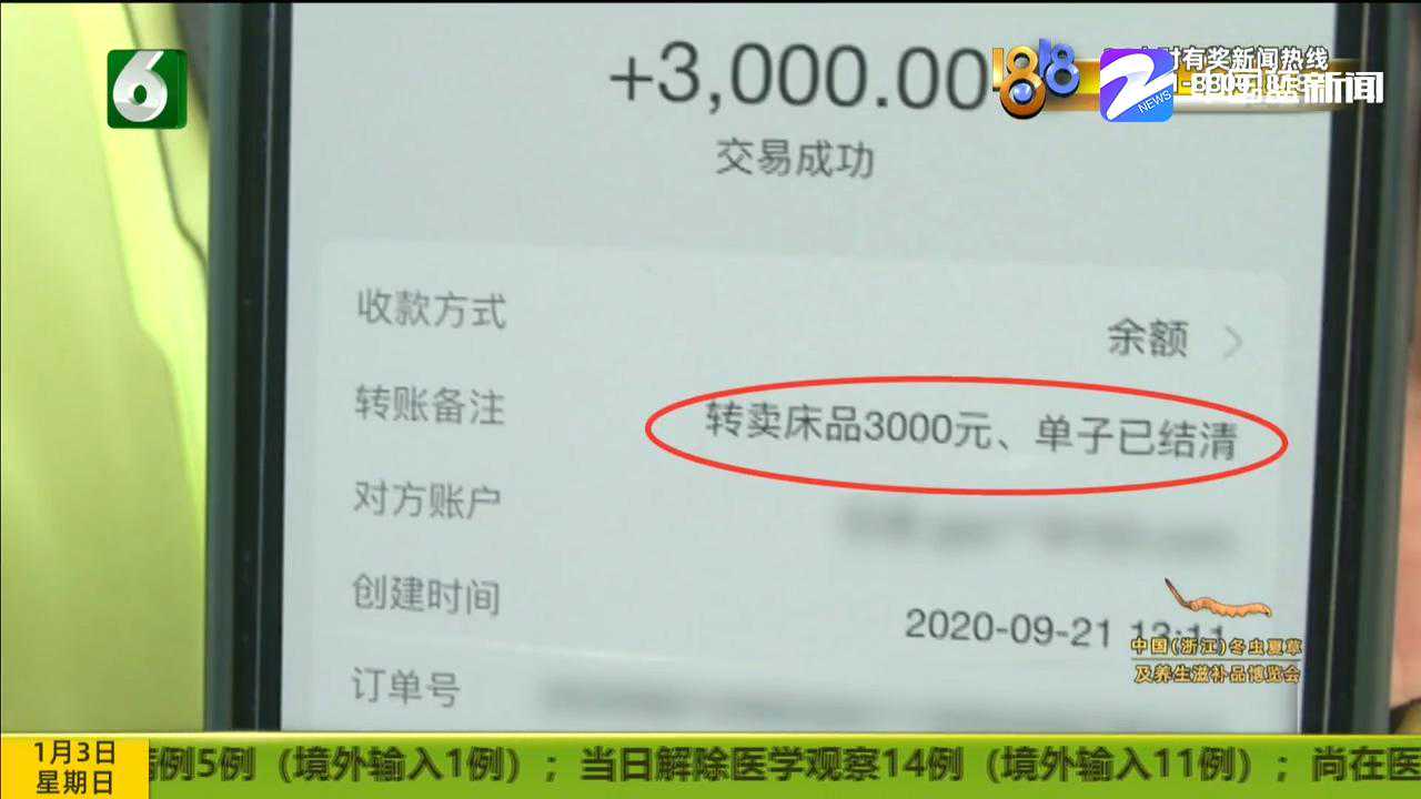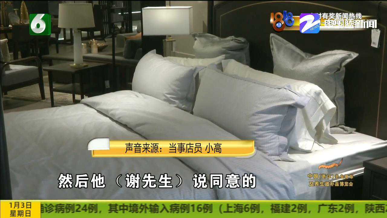 谢先生在杭州滨江的第六空间买了一张床和两个床头柜,后来三样家具送到了家里。但谢先生发现那对床头柜不是自己买的款式,于是向家具店提出退货,店员说不能全额退款。 谢先生告诉记者,2020年8月21号,他在滨江第六空间商场里的tao家具店买了一张床和两个床头柜,颜色很像胡桃木那种类型,总价一万八。记者注意到,谢先生通过支付宝转给家具店的金额是两万块。 谢先生:那他说大概是预存一万抵一万一,那么我就存了两万,一共是抵了两万二的这样的价格,床和床头柜的价格应该是一万八,还剩下我自己的两千块钱的本金和两千块钱算是赠送给我的额度。 谢先生说,因为当时也没有其他心仪的家具,他就问店员剩下四千块钱的消费额度怎么处理。 店员小高:他说你如果有人要,你能不能帮我卖掉,多出来的那个额度过了大概一个月左右,刚好有个人要买床品,然后他说同意的,那我说好的,那我就帮你弄弄掉。 谢先生:她跟我说,那要不这样吧,我把你这四千块钱额度卖掉,我说卖掉也可以,那能给我卖多少钱呢?他说那卖三千块钱,那就相当于我总共是一万七买了一张床和两张床头柜,我觉得算下来还是稍微的有一些优惠。 虽然双方对于这个建议是谁先提出来的,有些出入,但最后还是这么操作了。支付宝转账记录显示,2020年9月21号谢先生收到店员转来的三千块钱,转账备注中写明转卖床品三千元,单子已结清,到了2020年的国庆,谢先生买的床和两个床头柜送到了,照片显示送来的床头柜是黑色的,谢先生发现这跟自己购买的那一款不一样。 谢先生:就马上给店员打电话了,我说这不是我要的这个床头柜啊,因为我自己也赶工期,那我就说这个床头柜我就不要了,我就退掉了,你送错的,你自己拉回去。 店员:是师傅拉的时候,那个床头柜是拉的另外的货号拉上去了,床头柜在车上你知道吧,但他们后来又给他拉上去,他说他要退。 谢先生告诉记者,事后他跟店员小高谈了几次,对方说可以帮忙卖掉他之前下单的那对床头柜,可是等了将近三个月的时间自己始终没有拿到退款。 记者对话谢先生:他现在主张的方案是,要么我继续给你去卖,要么我给你退钱,但是退的这个钱是需要折掉他所谓的这个优惠之后的钱,但是我算了一下,大概就是千把块钱。(那这个你能接受吗?)我不能接受,我的要求是原价退回给我。 店员小高表示,谢先生的实际消费金额没有达到两万,所以门店赠送的两千块钱电子消费券肯定要相应收回,转卖消费额度那次已经扣过一千块。 店员小高:这次要退掉床头柜的话,需要再扣一次钱,存进去之后这个券就会自动电脑系统跳出来,当时跟他说的也很明白的,那如果说你要退掉这个券,他是减掉的呀。 谢先生:就花的这一万八床头柜是没有任何折扣的。 经过家具店的财务人员计算,那对床头柜原价七千四百五十块,他们可以退还谢先生六千六百五十块,也就是说要扣下八百块,但谢先生不同意,坚持要全额退还七千四百五十块。后来商场管理人员出面调解,表示一月四号他们会组织双方调解一下。