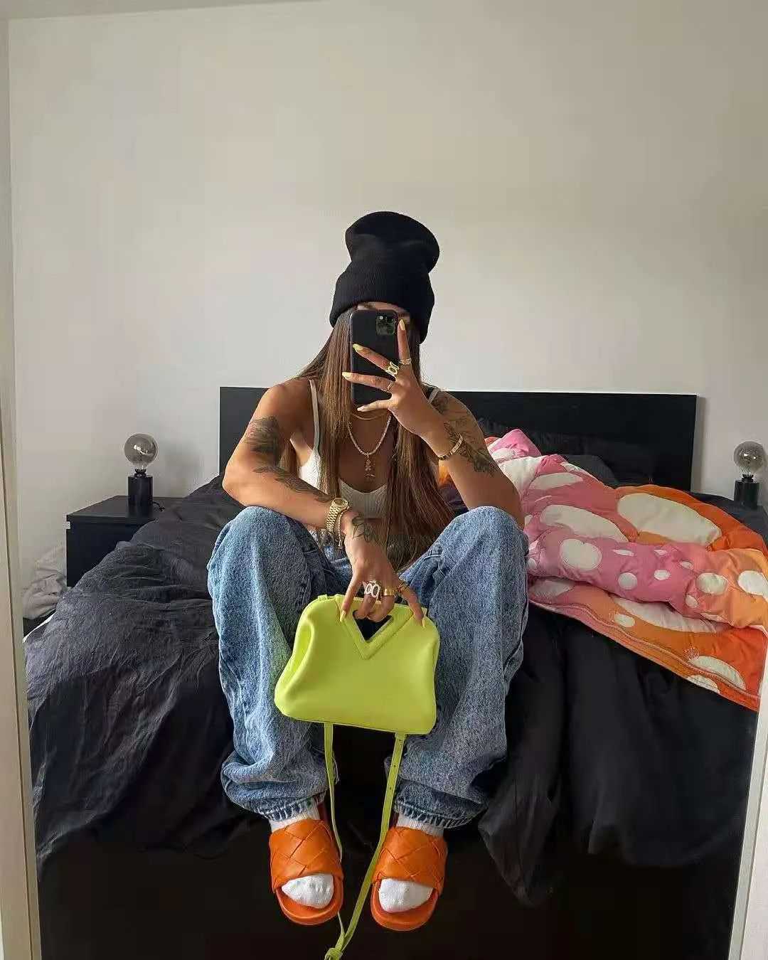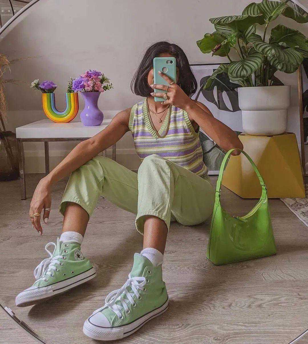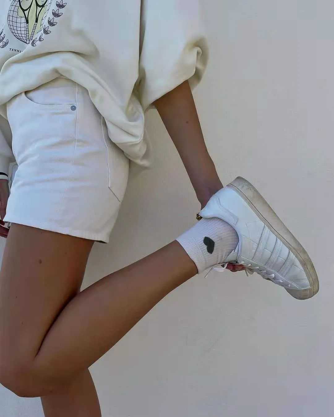 美丽真的是需要从头照顾到脚的,既然我们都美到头发丝了,也不能遗忘脚对不对?今天编辑就来和大家聊聊如何凭借一个小单品——袜子,让你的时尚度upupup!没错,就是你脚上穿的袜子~ 袜子肯定是人手必备的单品,这跟时尚不时尚没什么关系,那我们是从什么时候开始意识到这个功能性必备品也能给我们的穿搭加分呢。大概是从这张照片👇👇👇: 要不然我们总说黛安娜王妃是时尚icon呢,在九十年代的时候就有了短款卫衣+legging的搭配思路,白袜子和白球鞋的组合平衡了卫衣的厚重,这是直到今天仍被大家争相追捧的造型啊~ 即使全身上下换了不同单品,但依旧保持着这个搭配风格~ 想象一下,如果下身不搭配长袜,是不是就太头重脚轻了。因此,今天我们就从三个与鞋子的组合来看看袜子对于整个穿搭起到的神奇作用~ 1.最基础搭配——袜子+运动鞋 说到袜子的搭配,有多少小伙伴和编辑一样,脑子里第一个出现的就是运动鞋?毕竟上面的黛安娜王妃已经给了我们很好的示范。 运动鞋配袜子是最基础也最不容易出错的方式了,无论一年四季哪个季节,它都能恰好地融入,不会突兀。 首先白袜子肯定是最万能的款式,尤其是跟白色球鞋组合在一起,完美演绎什么叫顺色无敌!当在夏天碰上牛仔短裤,整体就会显得清爽又舒适,再加上堆堆袜的显瘦效果,也会让你的腿部线条更加利落好看! 无论你穿什么类型的运动鞋,一双颜色合适的袜子都能让你的穿搭与众不同。比如ReeseBlutstein这身搭配,绿色袜子不仅衔接了姜黄色运动鞋和连衣裙,还很好的起到了点亮作用。不突兀,但足够特别。 如果觉得色彩研究起来太麻烦的话,最安全的方法就是像这样选择同色系搭配,可以是像这样选择袜子和鞋子的同色系搭配,安全和谐又好看。 也可以选择一双彩色的板鞋来和白袜搭配,只要鞋子和衣服是同色系,换一双包容度好的白袜子其实也是不错的选择! 或者是像这样,全身的同色系搭配。如果全白觉得太无聊,那就在小细节上动心思呀~我们可以选择带有小桃心图案的袜子来增加穿搭的趣味性~ 其实除了棉质袜子,丝袜搭配球鞋现在也变得越来越常见。首先在白丝袜选择上一定要选择中筒的,裙子也不能和袜子无缝衔接,就是要通过适当的露肤度来增加穿搭的空气感,让搭配看上去更和谐。重点是丝袜的质感一定要相对厚一些,要不然整体效果你们懂得。。。! 2.最复古时髦的搭配——袜子+皮鞋 看到袜子+皮鞋你想到了什么?是MichealJackson的经典造型,还是最近又流行回来的穿搭模板?我们经常说时尚是一个圈真的没错👇👇👇 像最上图这双白色高筒袜搭配乐福鞋就非常的和谐,是那种酷酷的大女孩,袜子上的黑边带着青春的气息。下面这张图搭配了一双很酷很成熟的乐福鞋,像极了想在高中时代装大人的我们(流下了岁月的眼泪),但也很有学院风的味道~ SHUSHUTONG2021秋冬 白袜子加玛丽珍鞋就真的是青春少女的代表了,本来就是可爱风的玛丽珍鞋,搭配纯白色袜子,更增加了一份纯洁的气息在里面。 黑色中筒袜+黑色皮鞋这个组合就更不用多说,谁穿谁美丽系列~ 其实更加特别的是彩色袜子配皮鞋,全身黑色调的穿搭因为彩色袜子的加入增加了一丝活力,也让整个穿搭更具趣味性~ 那彩色袜子配玛丽珍鞋有什么需要注意的小技巧吗?让编辑说的话就还是要注意合理运用色彩搭配。最安全的方式就是袜子和上衣是同色系的,这样一上一下遥相呼应,是很有趣也很实用的方法。 如果你非说你厌倦了这种同色系呼应的方法的话,那也可以像下图这样👇 因为几乎全身都用了同色系穿搭法,为了避免太过无聊,我们就用彩色的袜子来增加颜色的跳跃感!上图这两身搭配的都很妙,这个时候选择袜子的颜色就是反差越大越好了,比如全身冷色系就选暖色系的黄袜子,反之就选冷色系的绿袜子。 上面这两种其实也不算有难度的搭配,你仔细研究会发现,其实上面两种的搭配方法还是用了同色系加亮点法。第一套look是由浅入深的色彩,配上一双绿袜子作为点睛之笔。第二套则是把袜子和上衣作为同色系的搭配,它们一起来衬托粉色的裙子。 无论哪种方法,事实上都没离开我们的同色系穿搭法。 而我们以为最夸张,色彩运用最多的这一套其实仔细想想也不过如此。它只不过是把紫色袜子作为了碎花半身裙和黑皮鞋的过渡,值得注意的是,虽然选择的是紫色的袜子,但是是低饱和度的紫,不会过分突兀。而且紫色,绿色其实也都是冷色系哦! 3.休闲辣妹风——袜子+凉鞋 不过时尚女孩的重点从来就不是养生,而是好看(且养生) 看得久了,作为穿凉鞋从来不穿袜子的编辑来说,就是大型真香打脸现场。白袜子配上今年流行的魔术贴凉鞋,时尚又休闲,重要的是还保暖(bushi) 这种搭配有一个最大的优点,就是简单省事,但同时也很时髦!当你在早上起床就开始纠结穿什么的时候,那你多半在出门时都决定不了,最终一定是选一套休闲套装,然后就穿双袜子,也别纠结穿哪双鞋了,穿上你的“面包拖鞋”出门吧,不然就要来不及啦~ 肯定有小伙伴想为自己正名,我是一个精致的女孩子,不要搞错了!好,那我们不穿拖鞋,我们穿凉鞋。穿凉鞋配袜子想要好看,就必须得玩色彩了,还是我们经常说的,袜子和上衣做同色系搭配,无论如何都不会出错! Moneysocks独立设计师系列纯棉袜Yirantian合作款参考价格:118 纯白色的袜子相信大家都有很多了,这双就