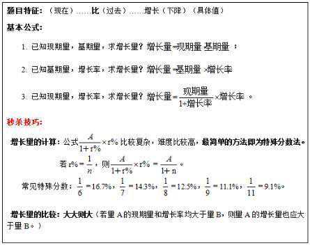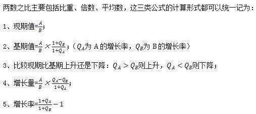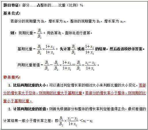 今天就来介绍数资篇的最后一部分:资料分析题。我在考公务员刷题的时候,周围总有同学说资料分析题没有时间做、数据太多计算量太大,其实公务员考试资料分析题也是有技巧的。 【织梦学生】专注为大学生提供兼职学习服务。【织梦学生】祝各位考生成功上岸。 首先,公务员考试资料分析题中最重要的就是公式。其实我是一向不怎么记公式的人,因为很多公式我们理解以后看文字描述的时候自然知道如何计算,但是有一些专业名词的公式还是要记住并且理解。 1、基期量的计算: 2、增长量的计算: 3、比重计算公式: 4.同比、环比公式: 环比就是现在的统计周期和上一个统计周期比较,与历史同时期比较叫同比。举个例子吧2010年4月跟2010年3月比,就是环比;2010年4月跟2009年4月比,就是同比。 除了公式,有几个口诀技巧也是要理解并且记忆的: 1、增长量大小比较: ①当现期量、增长率同时大,则增量大; ②注意增长率的正负。 2、两期比重比较: 已知现期整体为B,同比增速为b,现期部分为A,同比增速为a,问现期部分占整体比重是上升还是下降? 分析:局部增速a大于整体增速b时,比重上升;反之,则下降。 3、混合增长率:大小居中但不中,偏向基期量较大的一方。 至此,公务员考试数量关系和资料分析的介绍就算告一段落。有一些题型还有公式由于整理原因被遗漏了,在公务员考试之前还会把这些题型、公式拎出来再介绍的。明天开始介绍公务员考试言语题部分。