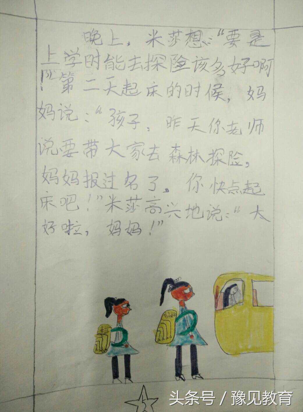 一:新书发布会启动 目的:通过活动激发阅读和创作。 作品:孩子原创作品 时间:5月5日 初步做法: 整理一二年级作品,创作新作品。 主题:人生中的第一本书 第一步:回顾绘本《吃书的狐狸》《图书馆老鼠》《有教养的狼》《海盗兔子小亨利》…… 这些在孩子的大脑中的形象再次被提及,再次指导孩子“我要做个好孩子”,首先要爱读书,进行“阅读打卡30活动”。 二:“新书发布会”组稿阶段 我们的“新书发布会”自4月11日发出倡议,至今已经13天时间。 在这段时间里,我们在校时间,只要学习任务完成后,孩子们就开始写“小书”。 就是把故事写在绘画纸订成的简书上。 如下图: 班级里孩子的创作热情异常高涨,小宇宙爆发的不止是写绘能力强的孩子如:星皓,小满,佳诺,依卓,起嘉,筱琳……还有写绘能力一般的孩子:靳特,段屹,轩宇,睿铭,安琪…… 特别是郭静怡,她的小书数量最多,从第一本的全图画,到第二本的有文字,到第三本,第四本,……截止目前共创造9本。(9个故事)[鼓掌] 她可是平时写绘时一个字都不写的孩子呀! 还有一个爱上写诗的孩子——靳特。 几乎每个故事都要配上一首自己写的“诗”。并得意的跟我说:老师,我还要写更多的诗歌! 三:进行“新书发布会”中期的誊写,修改阶段。 从页边距的确定,到页码的设计;从文字的誊写到标点符号的修改;从插图的颜色搭配到人物图案的大小;孩子们都在经历第一次! 雏形的作品(偷拍)。 我跟孩子们说:要秘密创作,给爸爸妈妈一个惊喜。 但是还是要跟大家剧透一下。 因为欣喜与孩子们的成长。 阅读和写作是需要形式上的刺激和督促。 活动就是要让孩子看到,体验到,参与到,才会有成就感,才会积极而热情地投入到其中。 我们也是要通过活动,才能理解生命成长的无限可能性。 让我期待孩子的作品吧![微笑]