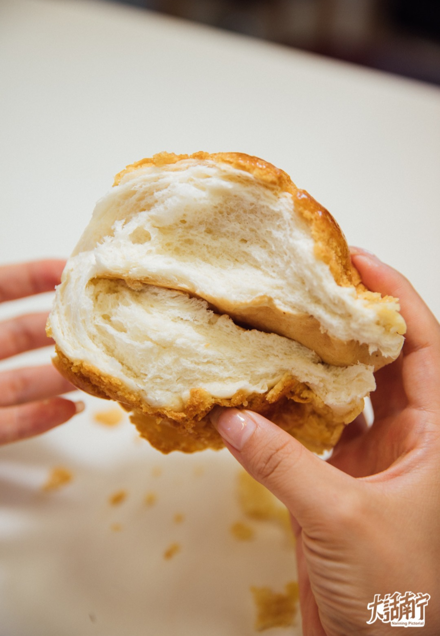 在淡村市场对面的一个不知名角落里,藏着一家传承了三代的饼屋。每天下午两点半才开店开卖,不到五点就全部卖完,买到全看运气! 1 一个菠萝包,三代传承 在这家品馨佳缘饼屋,大话君找到了童年的味道。 制作菠萝包的手艺已经传承了三代人,发起人是温婆婆,她是全国第一批特级糕点师和食评家,从14岁时便开始学习制作糕点,已有70年的时间。 后来传给女儿、外孙女,传承了三代人,时间跨越62年,手艺始终如一,还是记忆中的那个味道。 温婆婆最初推着小推车走街串巷的售卖,因为味道好,所以每次没走多远就已经卖完。直到传到温婆婆的外孙女时才决定开一家店,从此就扎根在了淡村的这个角落。 此前在万象城举办的复兴文艺展中,这家店也作为南宁的传统味道出现在展览中。 2 招牌糕点 ▽▽招牌甜口菠萝包▽▽ 甜口菠萝包是店里的人气面包,因为卖得hin火热,所以老板娘每天限量售卖500个,而且下午两点半才开始售卖,卖完就没有了,所以买到全看运气。 菠萝包的皮酥软,而且很厚,酥到掉渣,焦黄的表面散落些许白糖,空气中还飘着刚出炉时的淡淡甜香气,不断地诱惑着大话君,让大话君想起小时候缠着妈妈买菠萝包时的场景。 撕开面包,能看见扎实的菠萝心,咬下去却十分柔软,又不失嚼劲。每咬一口,口腔都弥漫表皮的甜味与菠萝心的奶香,吃起来hin可口。 店里不止菠萝包是人气商品,沙琪玛和鸡仔饼也是深得周边街坊邻里的喜爱。 ▽▽沙琪玛▽▽ 甜脆的沙琪玛也是顾客zui爱,来店里买菠萝包时总会带上几个回家。因为采用无水的方法制作而成,所以吃起来口感清甜不腻,还特别香。 外表裹着微黄的糖浆,撒上炒过的白芝麻,口感酥脆绵软,还有一股淡淡的蛋香味在嘴里萦绕。 ▽▽鸡仔饼▽▽ 据老板娘说,鸡仔饼的用料中有使用马山的黑毛猪肉,所以这一块小小的鸡仔饼闻起来会有特别的香气。 外脆内软,又有嚼劲,咬一口,能听见“咯咯”作响,多种食材复合的香气在嘴里浓得化不开。再细细咀嚼后,才分辨出芝麻的油气、猪肉的甘香 3 其他的糕点也要有姓名 -咸口菠萝包- 除了这三样是去店内必买,其他糕点也值得推荐。 吃惯了甜口的菠萝包,还可以试试店里咸口的菠萝包,外表同样酥软,撒上油炸过的小葱,散发着独特又浓烈的香气。 巧妙的咸甜口感,刚开始可能会不适应,但后面会越吃越香。没试过的朋友可以尝试一下,说不定你就会爱上它~ -蛋黄酥- 蛋黄酥的酥皮层层分明,再加上黑芝麻的点缀,内里一整颗蛋黄被绵密的红豆沙包裹着,让这个蛋黄酥看起来小巧可爱,吃起来却又不一样。 蛋黄味道稍淡回甘,红豆沙甜而不腻,表皮的干酥与红豆沙的湿润恰到好处,是与好朋友下午茶的必备品。 4 在这里买菠萝包真的要靠抢! 因为三代传承的手艺让这家店名气越发大,除了周边的街坊邻里过来购买之外,也还会有人大老远来这里买菠萝包吃,导致她们家的菠萝包是越来越难买,甚至有时连老顾客都买不到。 ▲这是都是别人提前预定好的菠萝包 城事君去购买的当天,看见很多人都是购买四五个才回去,所以往往不到五点,店里的菠萝包就一售而空,甚至看见有一位阿姨购买了一大箱回去 ▲都是周边的街坊邻里来拿提前预定好的菠萝包 想吃又怕抢不到的小伙伴们可以在线上与老板娘预定,不然线下卖完了,去到现场就竹篮打水一场空了。 5 关于这家店 城事君:这家店开了有多久呢? 老板娘:2012年的时候就开了这家店,到现在为止已有8年的时间。 城事君:面包基本都是下午在卖,是因为什么呢? 老板娘:我们的面包坚持传统味道,而且都是当天制作当天售卖,所以在制作上会比较耗时,早上9:00面包发酵,到下午2:30烘烤出炉,这个制作时长是一秒都不能少的,所以一般都是下午开始售卖,就是保证菠萝包的口感。 城事君:这现在就是您一个人在经营吗? 老板娘:对,目前只有我一个人在经营,下午分配线上订单时忙不过来时,我妈妈会过来帮我。 城事君:全部都是纯手工吗? 老板娘:对,都是纯手工揉搓,我一天需要制作500个菠萝包,一天下来会很累,所以有想过用机器代替,但是我们拿面团去尝试,发现达不到我们对菠萝包的要求,就果断放弃,坚持用手工揉搓。 ////////// 因为对传统味道的坚持,让不少老南宁感到欣慰,也让莫名而来的人对南宁这座城市在味道与感情上有了不一样的连接。 人均:原味菠萝包3r,咸皮3.5r, 鸡仔饼30/斤沙琪玛25/斤 ▼▼▼ 城事君告诉各位, 这家有开分店的计划,再也不用怕买不到了, 不过想吃的小伙伴们, 还是要趁早去比较好。