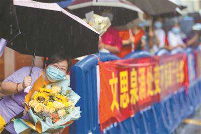 广州市第六中学考点,语文考试结束时,家长们冒雨等待孩子走出考场。 广州市南武中学考点,妈妈们举着香蕉、甘蔗、向日葵,希望为考生们带来好运气。 考生们摸摸校门口的石狮子给自己加油。 吃着妈妈送来的暖心午餐,考生面露笑容。 扫描二维码看高考精彩瞬间 2022年高考昨日鸣锣开考,广州5万多名考生奔赴考场,为梦想奋力一搏。“一举夺魁(葵)”“掂过碌蔗”“包中(粽)”,花式送考依旧吸引眼球。同时,各考点做好了周全的准备,让考生赴考暖心、应考安心。 文/全媒体记者刘晓星、谢泽楷、林欣潼、林霞虹、曾俊、王婧、何钻莹、耿旭静董业衡实习生郑涵、彭祎一 图/全媒体记者陈忧子、邱伟荣、庄小龙 平常心:正常发挥就好陪伴关爱不会少 在华附考点,张先生告诉记者,虽然家离考点不远,但考虑到路上可能堵车,提前半个月在考点附近订好酒店陪考。女儿在里面考试,他待会儿就赶回家取饭,让女儿考完就能吃上妈妈做的菜。谈及高考,张先生对女儿的期待是正常发挥就好。 广州市财经商贸职业学校职普融通班的35位同学昨日早早来到铁一考点候考。此前,他们参加了春季高考,都过了专科线,绝大部分同学已被高职院校录取,这次参加夏季高考是“冲本科”。前来送考的家长说,“有了保底学校,孩子参加高考心态也轻松一点。” 超暖心:菜式每天不重样水果每餐不同类 高考首日,雨水基本避开了考生集中进入或离开考场的时间段,家长直言“天气给力”。铁一中学越秀校区考点搭建了避雨通道,为考生提前准备了雨衣、雨具、吹风机、干爽衣物等“暖心”保障,助力学生从容应考。 花都区新华中学为保证考生高考前的营养,学校食堂采购充足新鲜食材,精心搭配,用心烹制,为高三考生免费加餐,赠送水果,“菜式每天不重样,水果每餐不同类”。为应对高考期间可能出现的恶劣天气,该校搭建风雨连廊,并在两侧放置沙包和防滑垫,确保考生在进入考点时不受风雨和日晒影响。 昨日中午,广州市玉岩中学高三年级级长刘珊珊和老师陈欢平冒着大雨,前往邮局,投递了600多封信,这些信是“寄给高考后的自己”。信件是高三学生在此前成人宣誓仪式上亲手写下的。信件在高考开考日寄出,考生在高考结束返家时就会收到。学校用这份特殊的仪式感,祝福学生在结束高中三年旅程后,奔向更美好的未来。 好意头:送考团“装备”应有尽有 早上7时许,在广州市第七中学的考点,不少家长送考身穿红色衣服,佩戴红色口罩,现场红红火火,一片热闹的景象。区太太和丈夫一同来给儿子送考,她给儿子准备的早餐有自制的粽子、包子和蛋糕。“包子和粽子寓意着‘包中’;蛋糕和粽子则是‘高中’的意思。”上午送考结束,区太太就去买菜准备午餐,她计划做蒸排骨和瘦肉,还会加一道红烧鸡翅,“金黄色的鸡翅寓意‘金榜题名’。” 手持扩音器、加油手牌、特色状元服……送考团“装备”应有尽有。在广州市第六中学考点,不少本校高一和高二年级的同学来为师兄师姐加油打气,每有考生走来,送考队伍便齐声送祝福。 在南沙一中考点候考区,大红色龙门牌坊、红色地毯给考生带来惊喜,牌坊一侧上书“必胜”“金榜题名”,另外一侧则是“凯旋”“鱼跃龙门”。牌坊上还高挂着一排粽子,寓意“一举高中”。走在红毯上,不少考生高高跃起,期望鱼跃龙门、一举高中,老师们则在旁边大声助威。