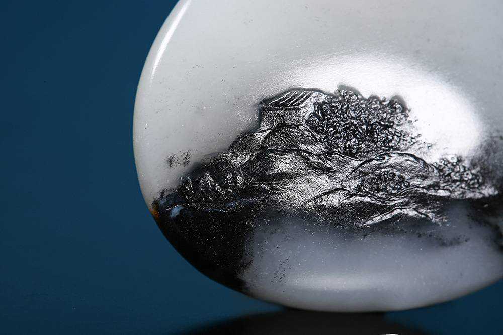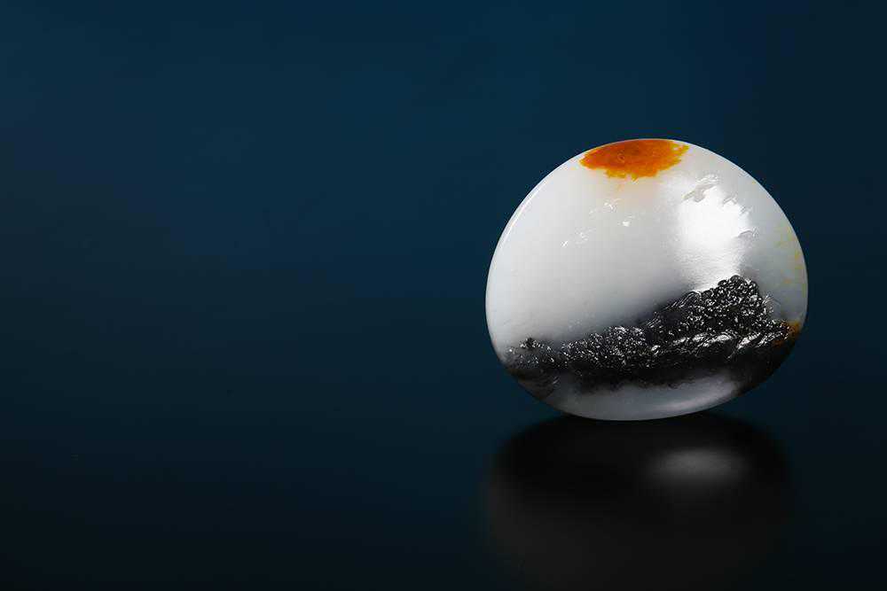 山水揽胜,景色秀丽,赏之怡然 大自然的鬼斧神工造就了山清水秀,山因水而俊秀,水因山而灵动。 山水之情延续的是华夏的血脉与文化,亦是对美好生活的向往。 所谓“登山则情满于山,观海则意溢于海”,中国人寄情于山水,它洗涤、陶冶人们的心灵,高山承载着生命的意义,碧水的柔情倾诉着世间的浪漫。 作品取自最适宜表现山水的青花籽料,黑白相间,玉质细腻,皮色浓醇。 墨色集中在玉石下方,四周环绕,天然沁入的石墨犹如一幅意境优美的山水图。 玉雕师充分运用浮雕技法,线条流畅而细腻,整体布局严谨。 正面山峰峻岭、悬崖峭壁,凭山而望,满是美景尽收眼底;背面楼阁树木,房屋依山傍水、古朴自然,这样山水咫尺、天涯无限的意境实在让人流连忘返。 玉石上方的聚红皮犹如夕阳盘旋在天空之上,照耀着山川草木,山水情致,赏之怡然。 让生命浸润于山水之间,吸收日月山川的精华,感受沧海桑田的变化,回归自然,感受天地的精神。 山水揽胜,挂件,新疆和田青花籽料,局部聚红皮,真皮无二上,参考白度一级以上,肉质非常细腻,可过灯,润度很好,油分十足,苏州名家精工,尺寸约42.5*36.7*12.7mm,重33克。