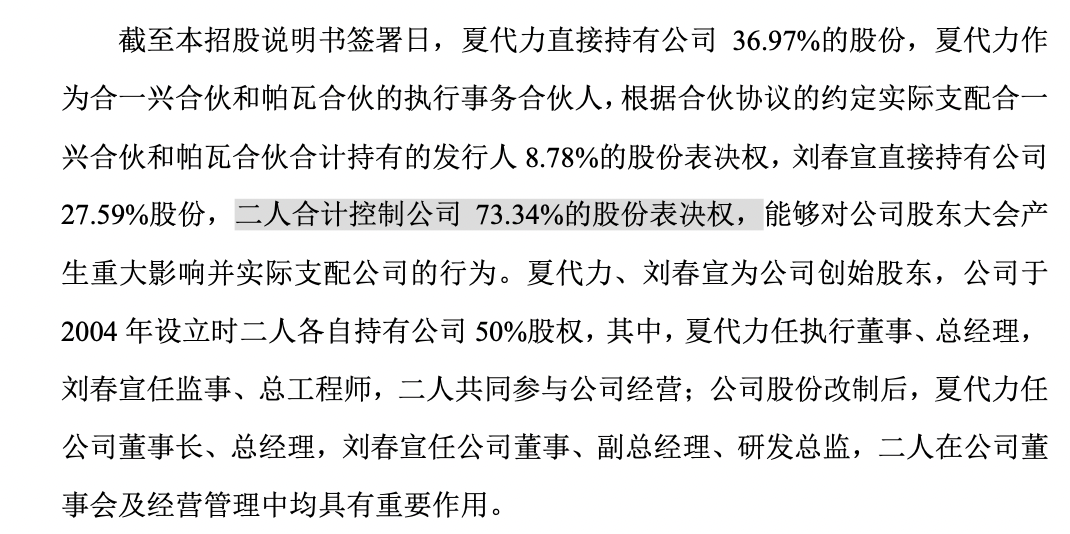 乐居财经吴文婷1月18日消息,深圳市斯比特技术股份有限公司(以下简称“斯比特”)于近日披露首次公开发行股票并在创业板上市招股说明书。 据查阅,2020年-2022年及2023上半年,斯比特实现营业收入分别为2.92亿元、4.11亿元、5.61亿元、2.99亿元;归属于母公司所有者的净利润分别为133.72万元、3095.79万元、6063.06万元、2928.02万元。 斯比特的实际控制人为夏代力、刘春宣。本次发行前,夏代力直接持有公司36.97%的股份,夏代力作为合一兴合伙和帕瓦合伙的执行事务合伙人,根据合伙协议的约定实际支配合一兴合伙和帕瓦合伙合计持有的公司8.78%的股份表决权,刘春宣直接持有公司27.59%股份,二人合计控制公司73.34%的股份表决权,对公司形成共同控制,直接影响公司重大经营决策。 资料显示,夏代力,1971年9月出生,中国国籍,无境外永久居留权,大专学历,电子技术及应用专业。1998年11月至2003年3月就职于深圳市海光电子有限公司,担任技术部工程师、技术部经理;2004年2月至2022年9月任斯比特有限总经理;2022年9月至今任股份公司董事长、总经理。 刘春宣,1974年10月出生,中国国籍,无境外永久居留权,本科学历,电磁场与微波技术专业。1999年12月至2002年4月就职于深圳市海光电子有限公司,担任技术部工程师;2004年2月至2022年9月任斯比特有限监事、总工程师;2022年9月至今任股份公司董事、副总经理、研发总监。 斯比特是一家专注于工业级、车规级磁性元件和新能源汽车充电桩电源模块研发、生产与销售的高新技术企业,产品广泛应用于新能源汽车、充电桩、光伏储能、数据通信等战略新兴产业。公司成立于2004年,注册资本7357万元,法人代表为夏代力。