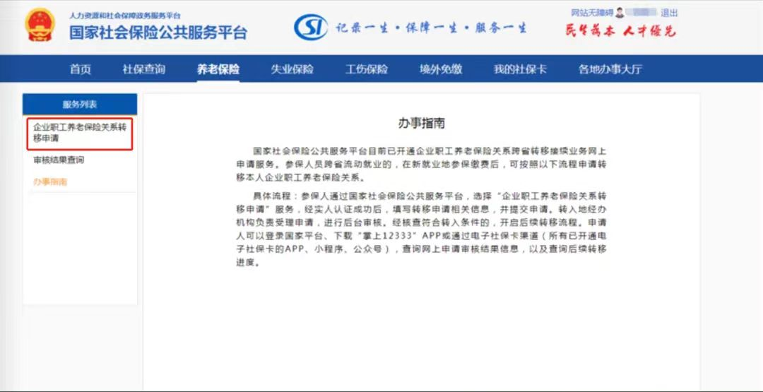 换地方工作了 养老保险怎么办? 江苏省已实现 企业职工基本养老保险省级统筹 在江苏省内流动就业的,企业职工养老保险关系无需转移。 跨省就业的,也无需急于办理养老保险关系转移,可以在即将达到法定退休年龄确定退休待遇领取地时再办理养老保险关系转移。 具体怎么操作 一起来看 👇 一 线上办理 渠道一: 国家社会保险公共服务平台 2、在左侧功能栏中,选择“企业职工养老保险转移申请”; 3、根据系统提示进行“实名认证”; 4、认证成功后进入“养老保险关系转移申请”页面,依次选填“本人基本信息”及“转移信息”,提交申请。 提醒:申请人可通过“国家社会保险公共服务平台——社保查询——年度社会保险个人权益记录单查询”确定转出地社会保险经办机构(归集多省缴费记录需分别申请)。 渠道二:电子社保卡小程序 1、微信或支付宝搜索“电子社保卡”小程序,按要求领取电子社保卡; 渠道三:掌上12333APP 1、下载“掌上12333”手机APP; 3、通过“社保关系转移”——“社保转移申请”进入申请页面; 二 柜面办理 申请人持身份证原件、复印件(男满50周岁、女满40周岁,另需提供户口簿原件及复印件;委托他人代办的,还需提供代办人身份证原件、复印件及委托书)至转入地社保经办机构办理。 南京市各区社会保险经办机构联系表 星标🌟“南京广播电视台” 我们从此天天见 点