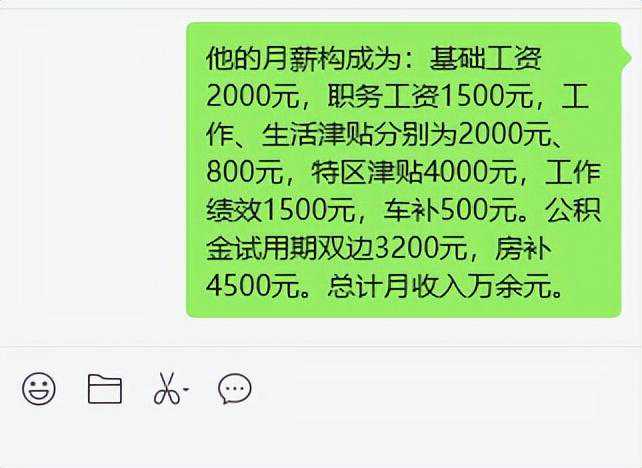 这位小伙伴去年刚刚上岸,目前还在试用期。据他透露,他的工资构成包括基础工资、职务工资、工作津贴、生活津贴、特区津贴以及工作绩效等多项内容。此外,公务员还享有车补和公积金等福利。虽然试用期的工资和公积金相对少一些,但整体待遇还算不错。 他的基础工资为2000元,职务工资1500元,工作津贴和生活津贴分别为2000元和800元。特区津贴则高达4000元,工作绩效为1500元,车补为500元。公积金方面,试用期双边为3200元,房补为4500元。这样算下来,每个月的总体收入大约为1万多元。 那么,这位珠海公务员小伙伴的年收入究竟有多少呢?我们可以根据他目前的工资构成进行一个简单的计算。假设他每个月的收入为1万元(这里忽略了节日费等非固定收入),那么一年的收入就是12万元。但这只是基本工资和补贴部分,还没有算上年终奖等其他收入。因此,我们可以合理推测,他的年收入很有可能会超过20万元。 虽然这位小伙伴目前还在试用期,但我们可以预见,随着他的转正和工作经验的积累,他的工资和福利待遇还会有所提升。尤其是年终奖这一大笔收入,将会使他的年薪更上一层楼。 这个收入水平在珠海这样的城市来说,还是相当不错的。尤其是作为市直单位的公务员,工作稳定、福利优厚,是很多人梦寐以求的职业。当然,每个人的职业发展轨迹和收入水平都有所不同,这里只是根据这位小伙伴的分享进行了一个大致的推算。 总的来说,珠海作为一个宜居城市,不仅拥有优美的自然环境和丰富的文化底蕴,还提供了良好的工作机会和待遇。对于想要在这里工作和生活的人来说,这无疑是一个不错的选择。