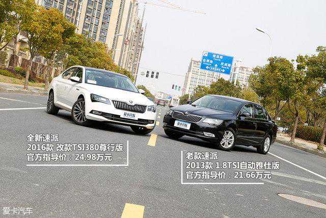 [XCAR对比横评原创] 2015年年底上市的全新速派是上汽斯柯达推出的一款高品质年轻中型轿车,上市至今已经1年多的时间了,在这段时间里,这台车表现出了出色的产品力和性价比。但是,我从一些身边的朋友口中得知,他们对“速派”这款车的印象不是特别深刻。究其原因,我想应该是上一代速派太过低调内敛的外观造成的,以至于埋没了那台车身上其他的优点,其实老款速派在当时的环境下,真的算是一台不错的中级车。 “最难超越的就是自己。”这句话的意思是说人一定要有上进心,一定要去努力,即使自己已经很优秀了,也不能丢掉那颗拼搏的心。对车也一样,老速派如果不是因为太过于内敛的外观,我想它现在的知名度应该不亚于自家的明锐。今天,我们就对这一老一新两台速派进行静态的横向对比,看看全新速派究竟提升了几成功力。 参与对比的两台速派,一台是全新款的次顶配车型,另一台是2013款的1.8TSI顶配版本,配置上都相当丰富。 两台车的车头都用了斯柯达家族化的设计,在路上很容易就能分辨出来。 但毕竟是一款跨时代的全新力作,全新速派车头部分的立体感更强,也更加精致有型,在现在这个靠“颜值”的时代,全新速派无疑能够获得更多消费者的青睐。 车头整体的轮廓保持一致,中网部分新款比老款更加讲究设计细节和制作工艺,并且仔细点你还能发现新款的格栅数量是19根,老款是21根,数量上减少了2根,视觉上增加了立体感。 大灯是两车区别最大的地方,也是全新速派外形设计最为出彩的地方,边角眼袋式的设计灵感得到了保留,内部结构极具设计感,科技化的灯光配置也武装到了牙齿。 雾灯在全新速派上不再是一个单一的功能性配置,其在造型上完美地融合到了保险杠下唇中,塑造了立体感。而在功能性上还能够提供弯道辅助照明,提升了低速转向时的安全性,减少了视觉盲区。 全新速派的侧面造型已完全脱离上一代速派,上下两根锋利的腰线在斯柯达车系中史无前例,营造出运动和年轻的效果,并逐渐向运动型轿车的定位靠拢。 传统的车窗镀铬亮条往往只起到点缀的效果,为了让车身侧面不显得那么呆板。而你仔细观察全新速派的车窗亮条时,你会发现做工的确比老款提升很多,并且棱形横截面比较少见。 新款的发动机盖一直延伸到两侧,包覆了传统车型翼子板上部的区域,主要目的其一还是为了车型定位的年轻化,其二也有加大碰撞时吸能区方面的考虑。 机盖上面隆起的几条特征线一直是斯柯达车型的特点之一,取半个发动机盖为样本,老款速派共有两根,而全新速派则增加到了三根,特征和立体感更加明显。 老款速派的尾部总给人一种臃肿、驼背的感觉,并且C柱与车顶的衔接不太自然,略显老态。全新速派的造型则更偏向于溜背式轿跑,Coupe风格容易被更多人接受。 两车的后备厢盖尾部都有提升高速稳定性的“鸭尾式”设计 车尾部分,全新速派对于线条和三维立体面的设计更加纯熟,尾灯也变成了具有攻击性的样式。相比之下,老款速派真的拿不出手了,我认为老款的尾灯没有任何的设计感可言。 大尺寸的掀背式尾门一直是斯柯达坚持的一项实用配置,能够大大提升后备厢的实用性和空间利用率。新款车型的液压支撑杆看上去比较粗壮,撑杆外部使用塑料包裹,不容易进灰。外观对比 上一代车型的内饰设计完全就是为中年人准备的,这就宣告了它与年轻消费者无缘。而全新速派则在线条设计和材质用料上做了很大的创新,并强化了环绕式座舱的效果,带来视觉上的包围感。 全新速派的仪表盘取消了老款车型上的炮筒式设计,回归较为普通易读的样式,中间的多功能显示屏换成了彩屏,相比老款的单色屏,不仅UI界面得到了提升,同时显示的效果也更加出色。 服役大众集团多年的RNS510多媒体系统,在多年前还算得上先进,但毕竟时代在进步,斯柯达为全新速派配备了一套8英寸的MIB多媒体系统,无论是UI界面还是功能性方面均完爆老款和其他竞品。 全新速派的自动空调面板界面经过重新设计,按键布局更加合理,旋钮和显示屏也经过了重新设计,用起来比老款更加顺手了。 新款的空调系统可以分半度调节,老款则只能一度一度调节,并且标配的AQS空气质量自动控制系统能够对车外的空气质量进行检测,并自动切换内/外循环功能。 老速派的中控台和门板上的饰条使用的是一种仿木纹的材质,不仅显老还不太好看。而全新速派则对油漆表面进行了哑光处理,触感和档次感更棒。 全新速派的天窗尺寸较老款有了很大的提升,并且遮阳板的质地也由之前的硬板材变成了透气性较好的网布材质。 全新速派在储物空间上也进行了更加人性化的优化,手套箱尺寸和内部空间巨大,装载能力提升明显。 由于采用了电子手刹,没有传统手刹占用空间的情况存在,所以全新速派可以将手套箱和换挡面板设计得更长更大气,提升整车的内饰档次。 在老速派那个年代,不少B级车的后排出风口都设计在了两侧的B柱上,老速派也不例外,这种出风口其实还挺不错的,吹出来的风比较柔和均匀。新款则采用了现在主流的样式,下方还有220V电源。内饰对比 体验者身高175cm,体重230斤。空间表现上,老款速派就已经非常不错了,全新速派依然属于优秀水平。 后排的头部空间均为1拳,腿部空间非常阔绰。 老款速派的座椅相对柔软一些,新款有些偏硬,不过也符合年轻运动型车的