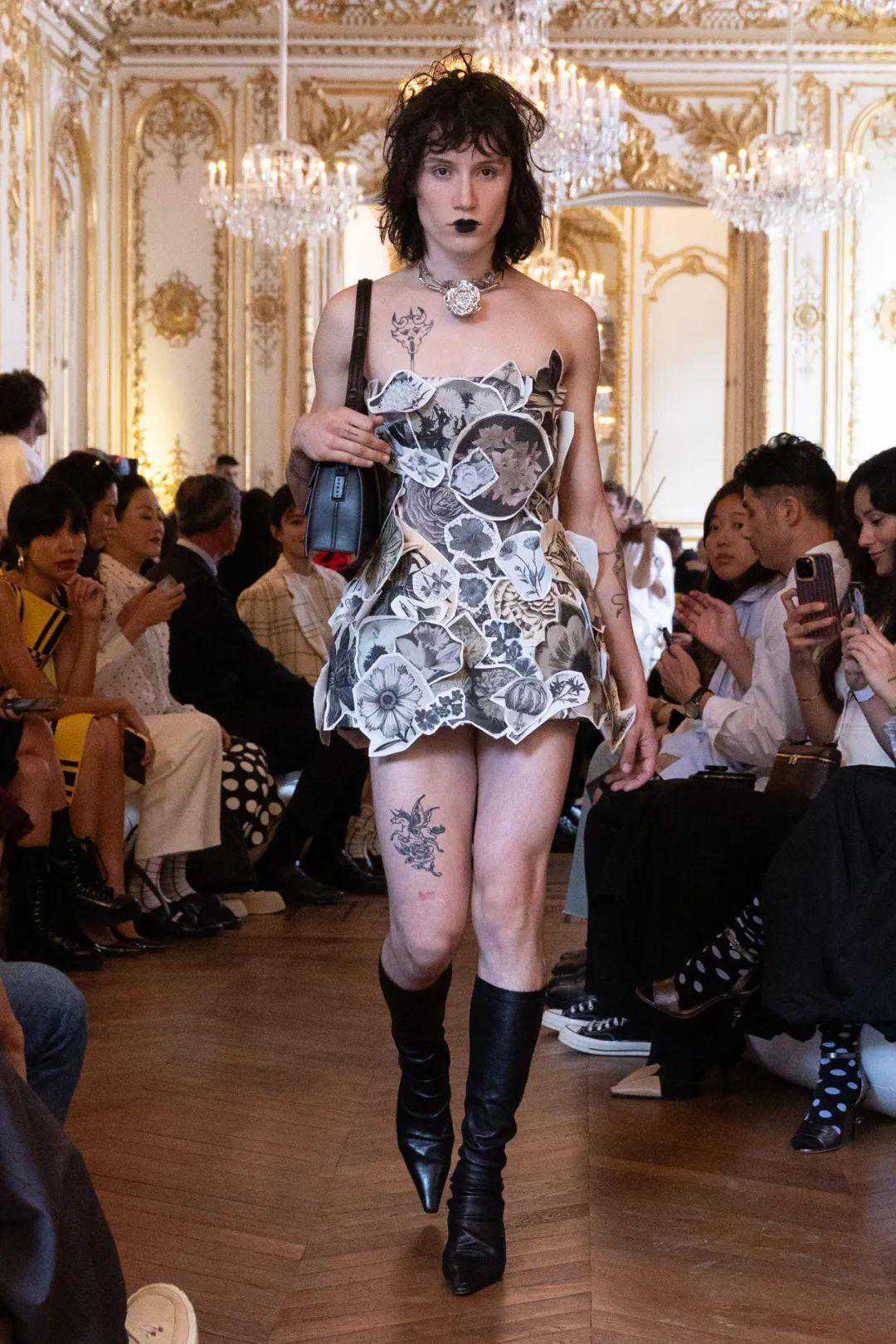 本季,巴黎时装周伴着小长假一起到来,ROSÉ、娜扎分别以格纹元素单品亮相秀场,前者浓郁的复古韵味,垫肩设计透着锐利感;娜扎则选择轮廓十足的经典格纹西装外套,内搭紧身裙,刚柔并济,不失气场~ 白鹿则是以成套的西装+半裙组合,不规则的线条点缀,甜美之余,多了份古灵精怪的学院范儿! 童瑶依旧延续大气的画风,2套拼色针织连衣裙的发挥都很在线,极简黑白间透着智性与利落;而白绿拼色款式则平添清雅与鲜活力。 /SaintLaurent/ SaintLaurent圣罗兰2024夏季女士系列回溯经典,简约至上。此系列秉承实用主义格调,倾心打造富有定制时装魅力的日装造型,呈现较前几季更为舒展的宽松廓形。 左滑查看更多 安东尼·瓦卡莱洛(AnthonyVaccarello)从阿梅莉亚·埃尔哈特(AmeliaEarhart)、阿德里安·博兰(AdrienneBolland)等女性先驱者汲取灵感。她们勇于打破男性对特定行业的垄断,渗透于赛车与航空等领域。2024夏季女士系列亦展现了SaintLaurent圣罗兰的时装精髓:将男装元素自由演绎为隽永的女装设计,自信且精致。 新款猎装夹克、连体裤等主打单品别具实穿意趣,精妙考究的束腰设计与整体的休闲格调形成对比。此系列面料以棉及亚麻为主,主色调为大地色系,如橄榄色、栗色、沙色、白垩色等,洋溢自然风情。 皮革手套、高跟鞋等配饰则风格利落,增添品牌备受推崇的精致美韵。 圣罗兰2024夏季女士秀场以埃菲尔铁塔和千变万化的大理石纹理为背景,藉由现代主义艺术映衬柔美优雅气质。 /AlexanderMcQueen/ “这一系列灵感来自女性身体构造、伊丽莎白一世、血红色玫瑰以及MagdalenaAbakanowicz,一位敢于挑战规则、极富创造力、拒绝妥协的艺术家。这场秀献给LeeAlexanderMcQueen,长久以来他一直希望能够赋能女性,献给我的团队,感谢他们的热情、才华以及忠诚。” ——创意总监SarahBurton 左滑查看更多 作为SarahBurton创作的最后一个系列,AlexanderMcQueen2024春夏女装系列“ANATOMYII”完美谢幕了她在该品牌26年的设计生涯。精裁西装、结构感针织和束腰上衣等极具标识的设计,糅以一抹极具英伦风韵的血红色玫瑰化作印花和刺绣装饰,带来热烈且诗意的女性魅力。 刘雯、张丽娜、贺聪、王涵等中国模特参与走秀。 全新黑色皮革及膝、过膝犰狳长靴,配有银色、金色金属心形细节。黑色、血红色、金属皮革配色及管珠刺绣装饰的Thorn尖头穆勒鞋。黑色、血红色、银色皮革配色的Twisted凉鞋,搭配实心细高跟及珍珠刺绣。Harness黑色皮革凉鞋。 金色金属胸部盔甲装饰。金色、银色金属都铎玫瑰花形戒指、项链、针形耳环。金色、银色金属针形耳饰组合,搭配珍珠和水晶装饰。金色、银色金属堆叠式耳饰组合、手镯、戒指,饰有水晶、珍珠、金属光感石。 Punk银色金属链条耳饰组合及双戒。Modernist金色、银色金属耳饰组合及戒指。Beam银色金属耳饰组合、开口手镯及戒指。Knot银色金属耳环和戒指。 Peak手袋配色为黑色、红色、银色。Cove手袋配色为黑色,或黑色搭配银色金属铆钉。Rise手袋为黑色,或黑色象牙白色组合。KnuckleClutch手袋以银色女性身体构造样式刺绣装饰。 /Marni/ MARNI首次于巴黎时装周发布全新2024春夏系列,将品牌的全球爱好者及社群云集于这一欧洲文化中心深入对话和创意互动。 左滑查看更多 “MARNI的旅程脚步不停……去年秋天还在美国纽约布鲁克林的大桥下,今年早春来到了日本东京的国立代代木体育馆;自2020年起,我们受困于疫情,不得不摒弃传统的时装秀形式。但在旅程中,重要的从来不是终点。所以,这一季看似回归从前,却绝非回到原点,而是来到更适合我们这些城市漫游者,这座城市,我曾深深迷恋过,也从迷茫中重新找到方向;回到这所故居,故居主人生前从事并全心热爱时尚这一行业。此次时装秀,我们将来到时尚发源地,一座洋溢巴洛克风格的城市:巴黎。” ——创意总监FrancescoRisso 对服饰而言亦是如此。从大衣、背心到飘逸的棉质半身裙,从条纹、格纹元素到花卉设计,一瞬之间的触碰,组成个体与服饰的真心相逢。线条之美,藉由精心雕琢,将平面线条幻化为立体的廓形。 格纹元素焕新呈现编织提花与鞣制皮革拼接式样,仿佛风衣口袋中未曾使用的方格地图,为探索之旅指明方向。我们漫无目的地闲游,终究会找到同伴,只是现在时机尚未成熟。 条纹长裤的裤脚穿过沙龙,来到花园。然后再穿过花园,来到街道。穿衣方式是心迹的表达。服饰与我们形影相随,同肌肤紧密贴合,几乎与身体融为一体。 拼贴碎片别具巧思,彰显条理的秩序感。堆叠簇拥的花朵恰似虚幻的记忆,展现雀跃而真实的欢悦心情。漫不经心的透明设计,有意为之的不透明元素,彰显巧思创意。 针织衫与休闲上衣采用迷你尺寸设计,融蕴经典纹理,(重新)演绎隽永美学,表达对快乐的不懈追求。窗外,繁花点缀的绿茵草地,令人沉醉其中。 /ISSEYMIYAKE/ 一面旗帜在天空飘舞,它是什么模样? ISSEYMIYAKE2024春夏系列于2023年9月29日在巴黎Césure发布,以“GraspingtheFormless”为题,旨在呈现自然界中没有明确形状的元素,比如风与光,并将它们以及所带来的偶然、短暂的现象作为灵感融入服装的设计与制作中。尽管它们是不被定义、不断变化的,对于这些元素的探索,与表达服装设计中的流动性密切相关。通过与由此产生的真实形态元素相结合,本系列诠释一种能够与每位穿着者产生共鸣的全新美学。 此次秀场的呈现