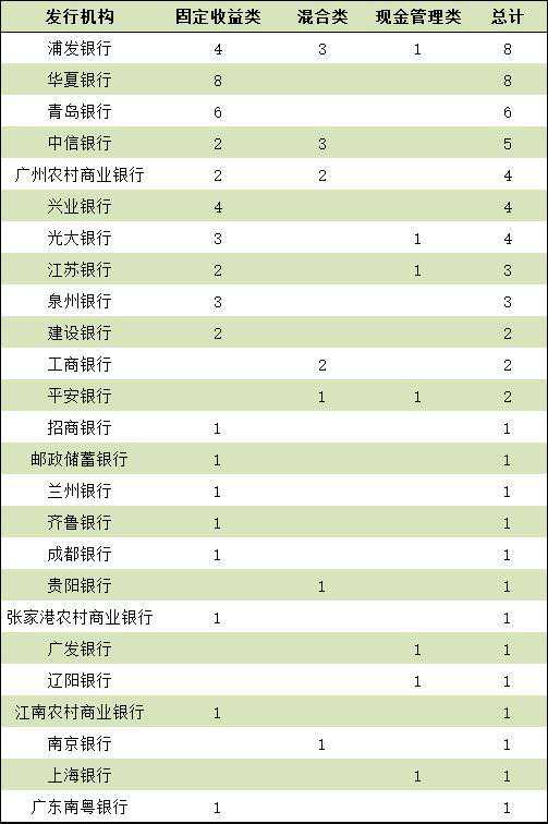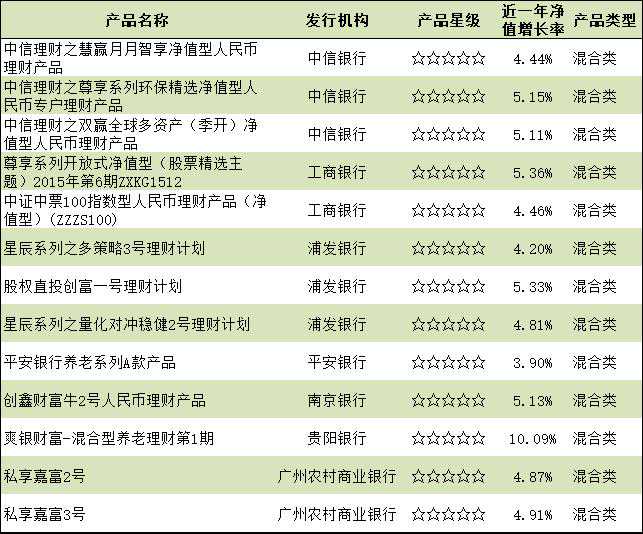 新华网北京(陈剑)2019年第四季度开放式净值型银行理财产品评价13日发布,结果显示,第四季度共有25家银行的64只净值型产品获金牛理财5星评价。 净值型银行理财产品评价是以截至2019年12月31日的近一年数据为基础,从风险调整后收益、业绩稳定性两个角度,对存续期内的开放式固定收益类理财产品、混合类理财产品进行评价,从收益能力和收益稳定性两个角度对现金管理类理财产品进行评价。该评价体系由中国社科院金融法律与金融监管研究基地提供学术支持,由新华网财经频道和中证金牛金融研究中心联合发布,评价结果每季度发布一次。 本期参与评价的开放式净值型银行理财产品共有321只,其中,固定收益类产品220只,混合类产品66只,现金管理类产品35只。本期持续运行超过1年期的权益类产品总数不到10只,未进行评价。 评价结果显示,共有25家银行的64只产品获金牛理财5星评价。其中固定收益类产品44只,混合类13只,现金管理类7只。 第四季度获评5星产品的25家发行机构为:浦发银行、华夏银行、青岛银行、中信银行、广州农村商业银行、兴业银行、光大银行、江苏银行、泉州银行、建设银行、工商银行、平安银行、招商银行、邮政储蓄银行、兰州银行、齐鲁银行、成都银行、贵阳银行、张家港农村商业银行、广发银行、辽阳银行、江南农村商业银行、南京银行、上海银行、广东南粤银行等。 获评5星的44只固定收益类产品包括:华夏银行的龙盈系列8只产品,青岛银行的财源滚滚系列6只产品,浦发银行悦盈利系列4只产品,兴业银行天天万利宝系列4只产品,泉州银行的悦盈系列3只产品,光大银行阳光金系列3只产品,广州农商行太阳嘉富系列2只产品,中信银行周周盈、乐赢稳健净值周开等2只产品,建设银行的乾元-安鑫系列2只产品,江苏银行的聚宝财富融达和融享2只产品,江南农村商业银行的富江南之盛玺A计划,张家港农商行的金港湾·悠享月开2号,邮储银行的畅享理财管理计划3号,招商银行的天添金进取型理财计划,齐鲁银行的泉心理财财复盈15号,广东南粤银行的宝盈增利(增强版),成都银行的芙蓉锦程6个月1号,兰州银行的“小家添富”系列开放式净值型1号理财产品。 获评5星的13只混合类产品包括:中信银行的慧赢月月智享净值型、尊享系列环保精选净值型、双赢全球多资产(季开)净值型人民币理财产品,工商银行的尊享系列开放式净值型(股票精选主题)2015年第6期、中证中票100指数型人民币理财产品,浦发银行的星辰系列之多策略3号、股权直投创富一号、星辰系列之量化对冲稳健2号,平安银行的养老系列A款产品,南京银行的创鑫财富牛2号人民币理财产品,贵阳银行的爽银财富-混合型养老理财第1期,广州农商行的私享嘉富2号、3号等。 获评5星的现金管理类产品有:光大银行的光银现金A,上海银行的易精灵1号,浦发银行的天添盈增利1号,平安银行的天天成长现金A,辽阳银行的“日进斗金”现金管理类第1期,江苏银行的聚宝财富融汇现金1号,广发银行的幸福鎏金-日添薪人民币理财计划等。