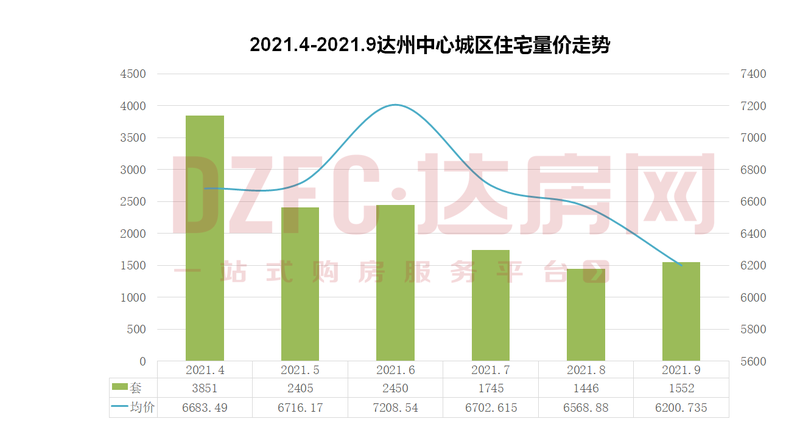 供应:以房管局网上备案批准预售许可证的商品住房房源作为数据统计标准 均价:以实际成交(即签订合同)的商品住房房源备案信息作为数据统计标准 2021年9月(2021.9.1—2021.9.30) 【月度楼市概述】2021年9月,达州市主城区新建商品住宅共成交1552套、成交金额8.89亿、成交面积14.83万㎡,成交均价6200.73元/㎡。 第一部分•2021年9月达州楼市动态回顾 1、9月1日新契税法施行 《中华人民共和国契税法》自2021年9月1日起施行,9月1日正式实施契税的税率与之前条例规定的税率保持一致,仍然是3%-5%。 2、通川区出让三宗商住综合用地 9月18日,达州市公共资源交易中心发布拍卖出让公告,达州市通川区将拍卖出让通川区双龙镇A-04-01、A-04-02、A-04-03三宗商住综合用地,总土地出让面积约117.25亩。 3、翠屏山临江公园已初具雏形 翠屏山临江公园环山栈道、临河绿化、核心区域人工湖、水榭连廊、城市阳台等工程基本完成,园内的停车场和主入口广场正在加紧建设,其余部分建设正在火热进行中。 4、金垭机场预计11月验收 机场航站楼建筑主体及屋面网架制作安装已经完成,飞行区实体工程已达到校飞条件,预计11月开展民航行业验收工作,春节前金垭机场可达到通航条件。 5、金兰壹号小区、达城潘家巷焕然一新 旧城焕新,达州正在发生!马房坝社区金兰壹号小区、达城潘家巷经过整体“美容”,纷纷换上了“新装”,人居环境迭代焕新,城市品质提档升级,得到了达城居民的频频点赞和认同。 6、方大·世纪城规划设计方案公示 9月3日,达州市自然资源和规划局发布《方大·世纪城项目规划设计方案公示》,马踏洞发展再上新台阶! 据了解,方大·世纪城北临鱼泉街,南临秦巴大道西段,项目总用地面积113231.00㎡,规划总建筑面积309644.51㎡,容积率2.2,建筑密度17.78%,绿地率30.01%,停车泊位2715个。 7、澳莱·尚城项目规划设计方案公示 9月23日,达州市自然资源和规划局发布《澳莱·尚城项目规划设计方案公示》。 据了解,澳莱·尚城由达州市通川区梦想小镇开发责任有限公司建设,项目位于达州市马踏洞外围片区,环凤产业大道与达州绕城公路交汇处,项目总用地面积131027㎡,总建筑面积507417.01㎡,容积率为2.8、建筑密度为20.51%、绿地率为35.15%,配建停车位3931个。 8、2021达州主城秋季房交会开幕 9月27日,2021达州主城秋季房交会在中心广场隆重启幕!9月27日至10月6日为期10天的房交盛会,吸引了达州主城30余个精品楼盘的积极参与。精致的产品、优质的户型、优惠的价格,为达州购房者们提供更多、更优、更实惠的置业选择! 第二部分•一级市场 2021年9月达州全市共有22宗国有建设用地使用权出让公告,出让面积669.84亩;有7宗国有建设用地使用权出让结果公告,成交面积580.62亩,成交金额约4.86亿元。 第三部分•二级市场 1、达州市中心城区商品住宅去化情况 2021年9月,达州市主城区新建商品住宅共成交1552套、成交金额8.89亿、成交面积14.83万㎡,成交均价6200.73元/㎡。 【图表:2021年4月—2021年9月达州市中心城区商品住宅成交量价走势】 2、通川区商品住宅成交量价走势 2021年9月,达州市通川区商品住宅共成交1358套,成交总价7.58亿元(含高新区)。 【图表:2021年4月-2021年9月通川区商品住宅成交量价走势】 3、达川区商品住宅成交量价走势 2021年9月,达州市达川区商品住宅共成交194套,成交总价1.31亿元。 【图表:2021年4月-2021年9月达川区商品住宅成交量价走势】 --