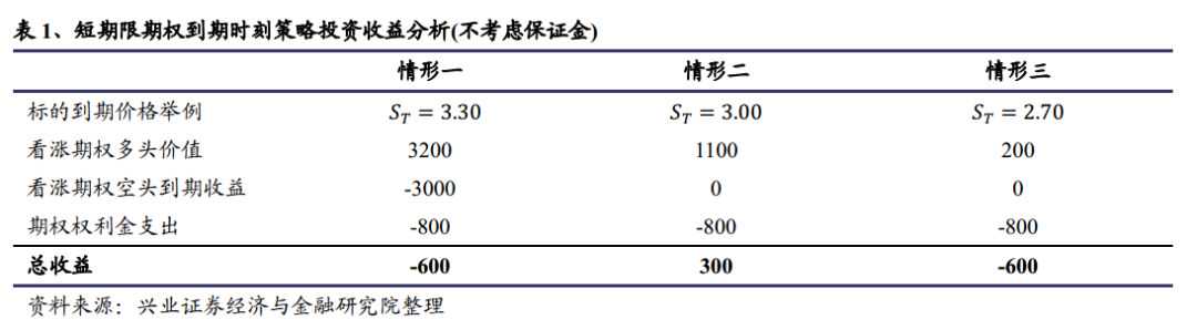 期权策略篇 浅析看涨日历价差 在之前的每日一策中我们简单地介绍过日历价差,日历价差通常由一个期限较短的期权空头和一个期限较长的期权多头组成。期限越长,期权价格越贵,故日历价差需要一定的初始投入。在分析日历价差的盈亏时,通常假设日历价差的盈亏实现在短期限期权的到期日,而且长期限期权会被出售。在短期限的期权到期时,如果标的价格接近短期限期权的行权价,则投资者通常获得盈利,但若标的价格远高于或者远低于短期限期权的行权价,投资者将承受损失,从本篇开始我们将对不同细分种类的日历价差做详细的介绍。 一份看涨日历价差包括买入一份长期限(到期时间为T1)看涨期权C1,并卖出一份相同行权价短期限(到期时间为T2)的看涨期权C2,短期限的期权到期时,若标的价格很低或者很高,损失大体为建立日历价差的费用;若标的价格接近行权价,此时短期限期权的行权收益接近0,而长期限的期权仍然具有较高的时间价值,投资者可以通过出售长期限的期权以获取利润。 为了更好的理解其收益支付结构,下面我们用一个例子进行说明。假设某投资者买入了一张行权价为3.00元,2019年5月到期的50ETF看涨期权,期权权利金为1200元。同时卖出了一张行权价为3.00元,2019年4月到期的看涨期权,期权权利金为400元,投资者期初所支付的权利金一共为800元(不考虑保证金)。当时间到了2019年4月份的第四个星期三,也就是短期限的看涨期权到期的时候,可能有以下几种情况: 【情形一】50ETF价格为3.30元。 50ETF的价格高于两期权的行权价,两个期权都为深度实值期权,由于卖出了2019年4月到期的看涨期权,这一部分的亏损为3000元;而2019年5月到期的期权价值将高于已经到期的期权,假设其价值为3200元,那么投资者最终的亏损为600元(-600=-3000+3200-800)。 【情形二】50ETF价格为3.00元。 此时标的资产的到期价格与期权的行权价格相同,2019年4月到期的期权为平值期权,期权的行权收益为0,但是2019年5月到期的期权作为平值期权,价值并没有快速下降,假设此时2019年5月到期的期权价值为1100元,投资者现在时刻持有组合的价值比期初高300元(300=1100-800)。 【情形三】50ETF价格为2.70元。 由于50ETF的价格低于两期权的行权价,到期的期权不能获得任何行权收益,2019年5月到期的期权价值同样成为了深度虚值期权,期权价值也将大幅下降,假设期权价值下降为200元,此时投资者损失600元(-600=-800+200)。 从上例不难看出,若投资者判断未来一段时间内标的资产的价格与期权的行权价相近,那么构建看涨日历价差将大概率能获得正收益。 注:文中报告为公开数据的整理和统计,不构成投资建议。 报告发布机构:兴业证券股份有限公司(已获中国证监会许可的证券投资咨询业务资格) 本报告分析师: 于明明 SAC执业证书编号:S0190514100003 任瞳 SAC执业证书编号:S0190511080001 自媒体信息披露与重要声明