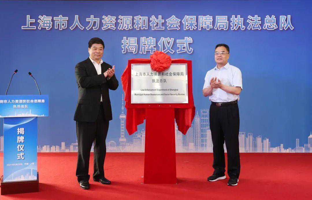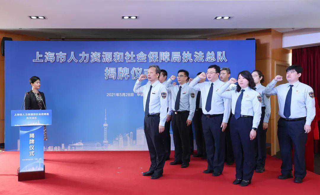 根据市委、市政府深化综合行政执法改革的总体部署,经市委编委同意,上海市劳动保障监察总队更名为上海市人力资源和社会保障局执法总队,为市人力资源社会保障局所属行政执法机构,以市人力资源社会保障局名义统一执法。 5月28日,国家人力资源社会保障部劳动保障监察局局长李新旺、市人力资源社会保障局党组书记、局长赵永峰共同为市人力资源社会保障局执法总队揭牌。 李新旺局长在讲话中对本市劳动保障监察工作给予了充分肯定,希望局执法总队在更名后继续保持良好状态,用崭新的精神面貌、扎实的工作作风、过硬的业务本领,切实提升执法效率和监管水平,为人社领域综合行政执法贡献新的智慧与力量。 赵永峰局长在致辞中指出,改革之后,局执法总队将迈入综合执法的全新阶段,职能权限覆盖了人社各个条线的全部执法事项,要准确识变、科学应变、主动求变。希望局执法总队以改革为突破、以更名为契机,不忘初心、砥砺前行,奋力谱写上海人社领域综合行政执法的新篇章,以优异成绩迎接建党100周年。 市人力资源社会保障局副局长谈琳和局执法总队全体同志、各区劳动保障监察机构主要负责同志、自贸区综合执法大队相关负责同志参加了揭牌仪式。 在揭牌仪式上,局执法总队代表庄严宣誓,展现了行政执法队伍的斗志与风采,以高度的历史责任感和崭新的精神面貌,推动本市人社系统的行政执法水平再上一个新台阶。