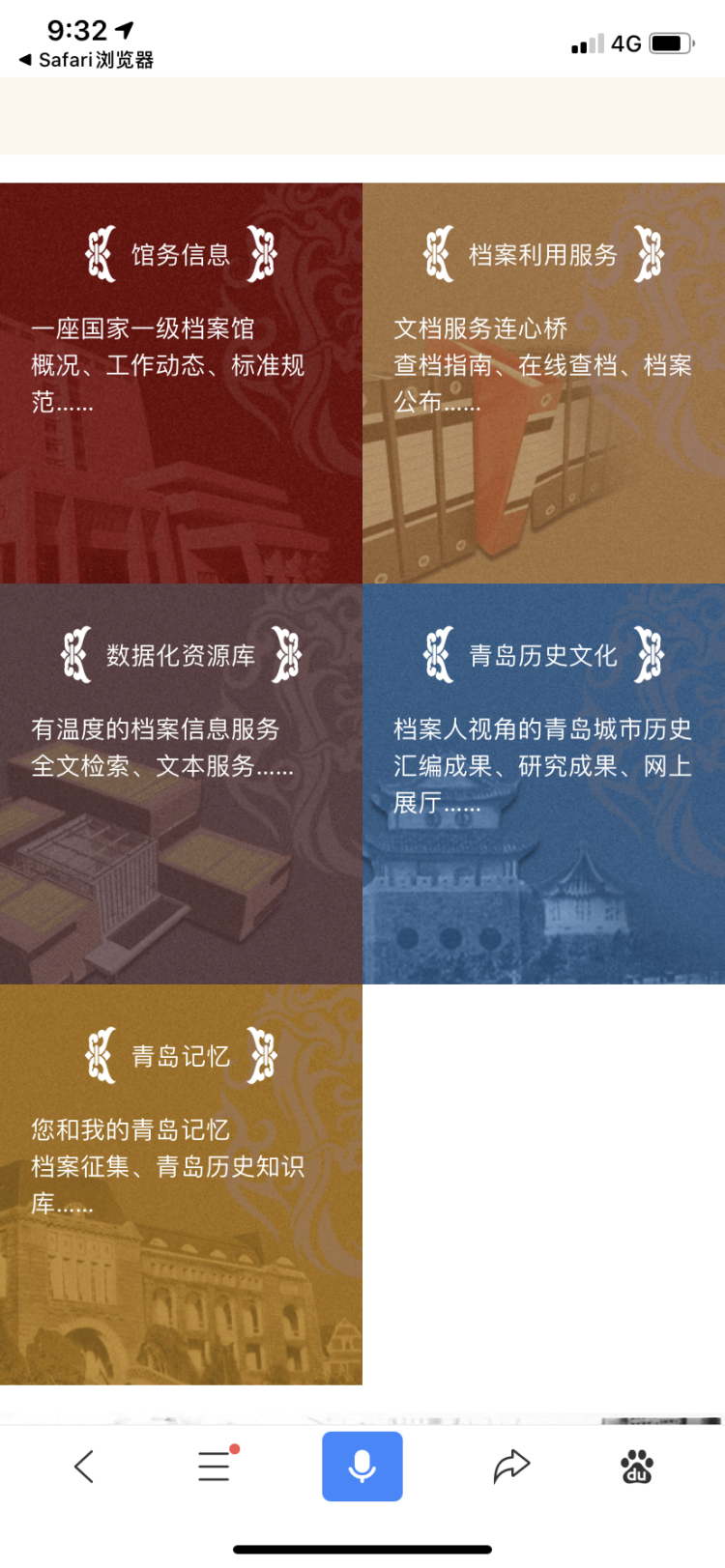 半岛全媒体记者张文艳 12月15日,半岛全媒体记者从青岛市档案馆了解到,该馆的门户网站——青岛档案信息网()全新改版上线运行。 打开网站,面貌一新,馆务信息、档案利用服务、数据化资源库、青岛历史文化、青岛记忆,几个板块色彩亮丽,异常醒目。 全新改版后的青岛档案信息网站具有显著特色。 一是网站资源更加开放。 秉承让历史说话、用史实发言的理念,网站除发布大量青岛历史档案、照片、地图等珍贵资料和2300份数据化档案文本信息、900分钟档案题材影音资料外,还共享了近1600万字的档案史料汇编和青岛城市历史著作论文,为网友了解和研究青岛城市历史提供了丰富的第一手信息资源。 二是以现代理念引领网站建设。 网站建设突出档案信息资源共享服务理念,积极推进档案资源数据化、历史信息知识化、网站新媒体一体化、网页设计简约化,率先建成全国首家档案信息资源服务型网站,走出了国内档案网站建设新路子。 三是为网站增添时尚元素。 四是为青岛城市历史文化传承注入新活力。 新版青岛档案信息网资源开放、信息共享、内容严谨、风格简约,有助于焕发青岛城市历史文化研究、传承的生机与活力,为知古鉴今、资政育人提供了新平台,为城市精神培育增添了新动能,为青岛建设现代化国际大都市贡献档案力量。 网站改版期间,青岛市档案馆以档案工作走向依法治理、走向开放、走向现代化为根本遵循,以讲好“开放现代活力时尚”的青岛故事为主线,依托丰富的馆藏档案信息资源和多年积累的青岛城市历史文化研究成果,确立开放、共享、服务的网站建设理念,围绕发挥档案服务青岛城市历史文化研究和讲好青岛历史文化故事开展网站顶层设计,努力将网站打造为档案馆服务社会的窗口、城市历史文化研究的基地和青岛历史故事的传播平台。 网站启用仪式上,青岛市档案馆馆长姜永河表示,青岛市档案馆将以新版网站为平台,进一步加大档案资源开放开发力度,更好地为社会公众服务。