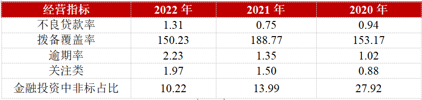 公司第一大股东为温州市国企。温州银行股份有限公司(以下简称“公司”)于1998年经中国人民银行批准成立,由29家城市信用社、6家金融服务社和8家营业处整合而成。 2013年,公司完成一轮增资扩股,新湖中宝股份有限公司成为公司大股东,2017年持股比例上升至18.15%。公司2019年报披露重大关联交易余额78.59亿元,其中新湖中宝股份有限公司27亿、新明集团有限公司25.1亿元、大自然房地产开发集团有限公司12.74亿元。 公司原副董事长、行长吴华曾任交通银行温州分行副行长,2019年8月落马。2022年12月,温州中院披露吴华涉案总额达15亿元,其中:受贿2.7亿余元、挪用资金5.08亿元、违规发放贷款5.01亿元、违规出具保函3亿元,一审获刑死刑,缓期二年执行。 2020年9月,公司完成新一轮增资扩股,温州市国有金融资本管理有限公司、温州市名城建设投资集团有限公司为公司第一、第二大股东,均为国有企业,2022年末持股比例分别为25.33%、11.01%,新湖中宝股份有限公司退居第三大股东,并退出董事会。 2020年12月,浙江省支持中小银行发展的50亿元专项债,为公司补充资本金。2021年5月,浙江省农村信用社联合社为公司的战略投资者,随着新股东的进驻,公司董事长、行长、监事长替换为浙江省农村信用社联合社高管,现任董事长陈宏强,曾任鹿城农商行党委书记、董事长。 表1公司前五大股东持股比例(单位:%) 表2公司高管从业经验 公司2022年不良贷款率为1.31%。公司2022年资产总额4098.71亿,净利润9.18亿,核心一级资本充足率为8.65%,有所下降,主要系公司2022年以来贷款规模快速提升对资本消耗程度较大,公司资本充足率与一级资本充足率均已临近监管限额,有待补充。 公司2022年金融投资中非标占比10.22%,纳入阶段三的债权投资余额89.90亿元,对其计提减值损失21.80亿元。 表3公司主要财务指标(单位:亿元,%) 表4公司主要经营指标(单位:%) 公司对公房地产占比为6.85%。公司贷款行业集中在租赁和商务服务业、制造业、批发及零售业,占比分别为15.16%、11.73%、9.78%,公司对公房地产占比为6.85%,公司2022年净息差为1.25%。 表5公司贷款行业(单位:%) 表6公司净息差(单位:%)