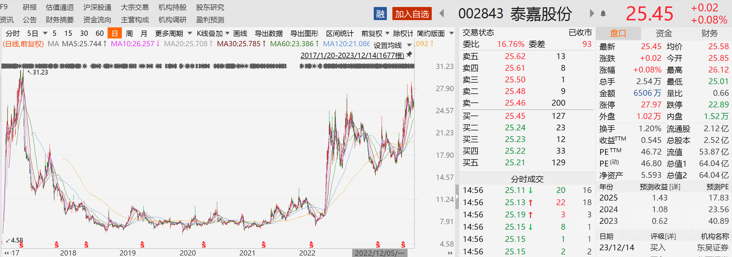 12月13日晚间,泰嘉股份(002843.SZ)发布公告,拟与上海汇捭、张启华、李振旭、金雷、杨兰、郑钢海共同签署《关于东莞市铂泰电子有限公司(下称“铂泰电子”)之股权转让协议》,以1.2亿元收购前述转让方合计持有的铂泰电子36.51%股权。收购完成后,公司对铂泰电子的直接持股比例将由56.23%增加至92.74%,并通过长沙荟金间接控制其7.26%的股权。 钛媒体APP发现,本次交易作价以市场法评估,铂泰电子所有者权益账面值为1.78亿元,在持续经营前提下股东全部权益价值为3.44亿元,增值率超90%。去年中旬,公司通过长沙荟金以现金对铂泰电子增资的估值仅为1.2亿元。另外,今年上半年铂泰电子业绩在往下走,净利润为负,本次收购或难以实现公司提升盈利能力和竞争力的愿景。 资料显示,铂泰电子成立于2020年,实缴资本1000.23万元,是一家以从事计算机、通信和其他电子设备制造业为主的企业。 2022年8月,公司通过员工持股平台长沙荟金以现金对铂泰电子增资。交易作价以截至2021年12月31日经审计的铂泰电子净资产值为基础,按照1.2亿元的估值对其进行增资。交易完成后,公司通过海容基金和长沙荟金合计持有铂泰电子52.23%表决权,实现对铂泰电子控制,并将其纳入合并报表范围。 2022年10月,公司出资1.39亿元受让海容基金持有的铂泰电子44.23%的股份,出资2592.7万元受让其他股东持有的铂泰电子7.45%的股份。交易作价以市场法评估,即截至评估基准日2021年12月31日,铂泰电子所有者权益账面值为1.15亿元,在持续经营前提下股东全部权益价值为2.89亿元。 在本次交易之中,公司以1.2亿元收购铂泰电子36.51%股权,交易作价以市场法评估,即截至评估基准日6月30日,铂泰电子所有者权益账面值为1.78亿元,在持续经营前提下股东全部权益价值为3.44亿元。 为何公司当初对铂泰电子增资时它的估值要远低于两次收购时的估值?更为关键的是,前两笔交易的时间仅仅间隔2个月左右。对此,上市公司告诉钛媒体APP,当初增资时是以员工持股平台介入在估值上打了折。 进一步查询发现,上述两次收购的转让方和公司或多或少存在一定的联系。第一次收购,公司为转让方海容基金的LP,持有其99%资产份额。 本次收购中,上海汇捭的LP为杨乾勋,持有35%的出资份额;夏立戎为GP,持有65%份额,为企业实际控制人。其中,杨乾勋为公司董事、副总裁。虽然公告没有披露夏立戎的背景,但是在公司过往的一份股权激励方案中发现公司有位技术人员名为夏立戎,还与杨乾勋并列为公司核心人才。另外,郑钢海为泰嘉股份东莞分公司业务副总经理、铂泰电子业务主管兼财务总监、罗定雅达市场副总经理。 至于收购原因,泰嘉股份表示,基于对铂泰电子内在价值的高度认可和未来发展的良好预期,此举有助于公司加强对铂泰电子的控制,整合优化资源配置,提升经营决策效率,进一步推动公司电源业务的稳定发展,提升公司盈利能力和竞争力。 钛媒体APP发现,铂泰电子今年上半年营业收入有所下滑,净利润亏损。财务数据显示,2022年营业收入13.73亿元,净利润2293.26万元;2023年1-6月营业收入5.8亿元,净利润-827.42万元。公司进一步收购后未必能达到预期的效果。对此,上市公司回复称,今年上半年净利润主要是因为铂泰电子高功率电源处于推广期,且人员变动等因素拖累。 公告还显示,各转让方应将本次交易税后所得的40%用于购买或指定第三方购买公司股票,最迟应在全部价款支付完成6个月内完成购买,所购买股份锁定至2026年12月31日。如各转让方未在本协议约定期限前完成股票购买的,每逾期一日,转让方应按照应购买而未购买的款项金额的0.05%/日向公司支付违约金。 不过,当前泰嘉股份股价处于高位,截至12月14日收盘,公司股价收报25.45元,距离历史最高点31.23元不远。为何要求转让方买入股票?上市公司对钛媒体APP表示,可以将此举理解成为促成本次交易,转让方和公司的利益绑定。