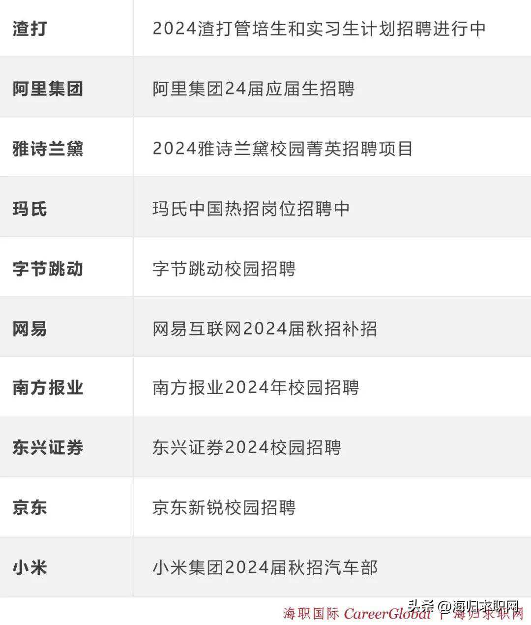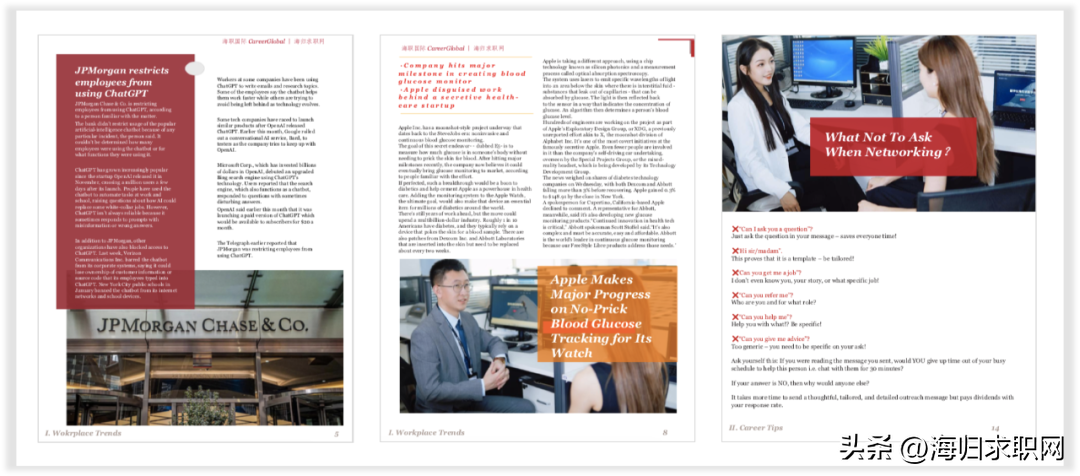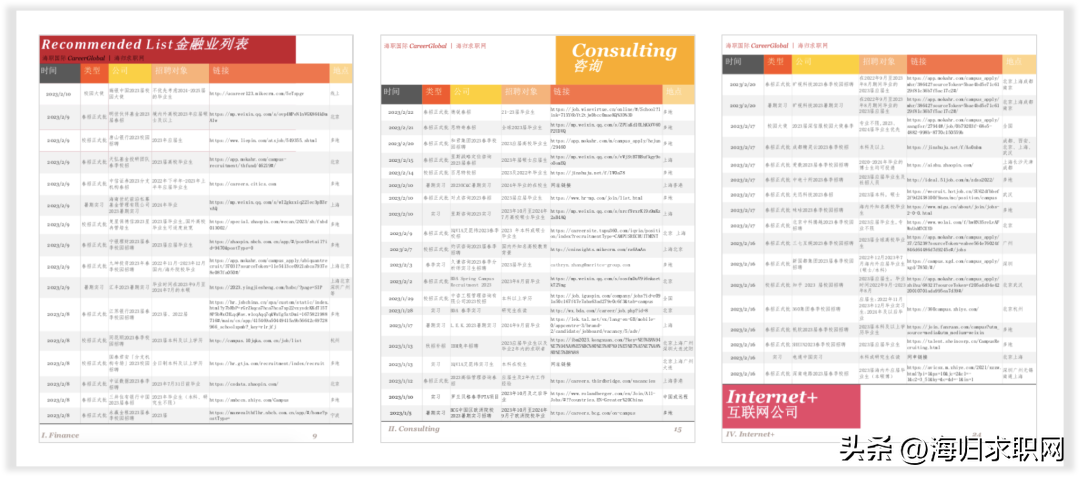 《海归求职网职位精选》由留学生专属求职平台海归求职网®(海职国际CareerGlobal®旗下)定期发布,提供最新最全的全球名企招聘信息、就业趋势和职业发展建议。 免费领取《海归求职网职位精选》 后台回复“31143”免费领取 本期特别推荐 本期节选 andmore 本期内容 ■最新最全的全球名企招聘信息 ■针对具有海外背景的求职人群 ■涵盖各大热门行业和职业领域 ■校招、实习、社招岗位全覆盖 ■类目清晰,快速定位理想工作 ■信息详实,招聘官网一键直达 ■紧跟行业热点,解读就业趋势 ■专业求职建议,斩获名企offer 特别声明:©海职国际CareerGlobal®品牌及旗下海归求职网®版权所有,未经版权方允许不得以任何形式使用期刊中的文章、图片、广告或其他内容,包括但不限于电子、印刷或其他媒体。任何其它机构组织如果想进行期刊相关的转载、翻译或解读,请联系我们获取授权。本期刊可公开、免费获得,对私下贩卖期刊等行为我们将追究法律责任。