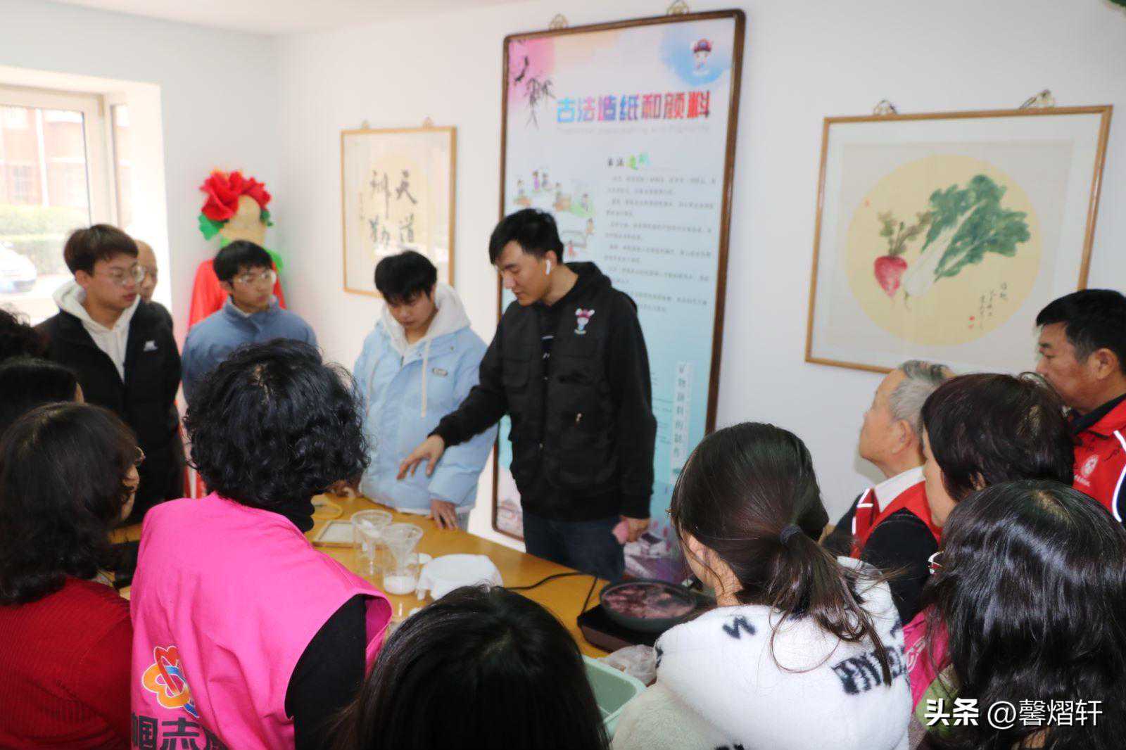 文化是一个民族的血脉,是人民的精神家园。12月8日上午,西青区杨柳青美庭苑书画社携手南开大学书画协会志愿者,与天津理工大学中环电子学院大学生及社区居民,开展践行杨柳青镇2023年全民终身学习一场别开生面的书画交流活动。 活动现场合影 志愿者们带领大学生和社区的居民们一起学习国画的基本技巧和方法,耐心讲解并细心指导,让大学生及社区的居民感受到国画艺术的独特魅力。接下来,志愿者又为大学生、社区居民介绍古代造纸术、天然颜料提取过程,并让他们亲自动手参与制作,了解古法造纸、提取颜料的基本方法。志愿者们的精彩表现和专业技能知识赢得了在场一致好评。 志愿者现场指导 志愿者介绍颜料提取过程 大学生现场参与制作 大学生及社区的居民们纷纷表示,这次活动给他们带来了前所未有的体验,使大家看得见、摸得着、感受得到,不仅增长了知识,还陶冶了情操,又加强了艺术交流,激发大家对文化和书画的热爱。 志愿者现场指导 志愿者现场指导 志愿者现场指导 志愿者与社区居民交流 志愿者现场互动交流 志愿者现场指导 活动现场参与制作 活动现场参与制作 活动现场 志愿者现场介绍古法造纸和颜料 活动现场参与制作 活动现场参与制作