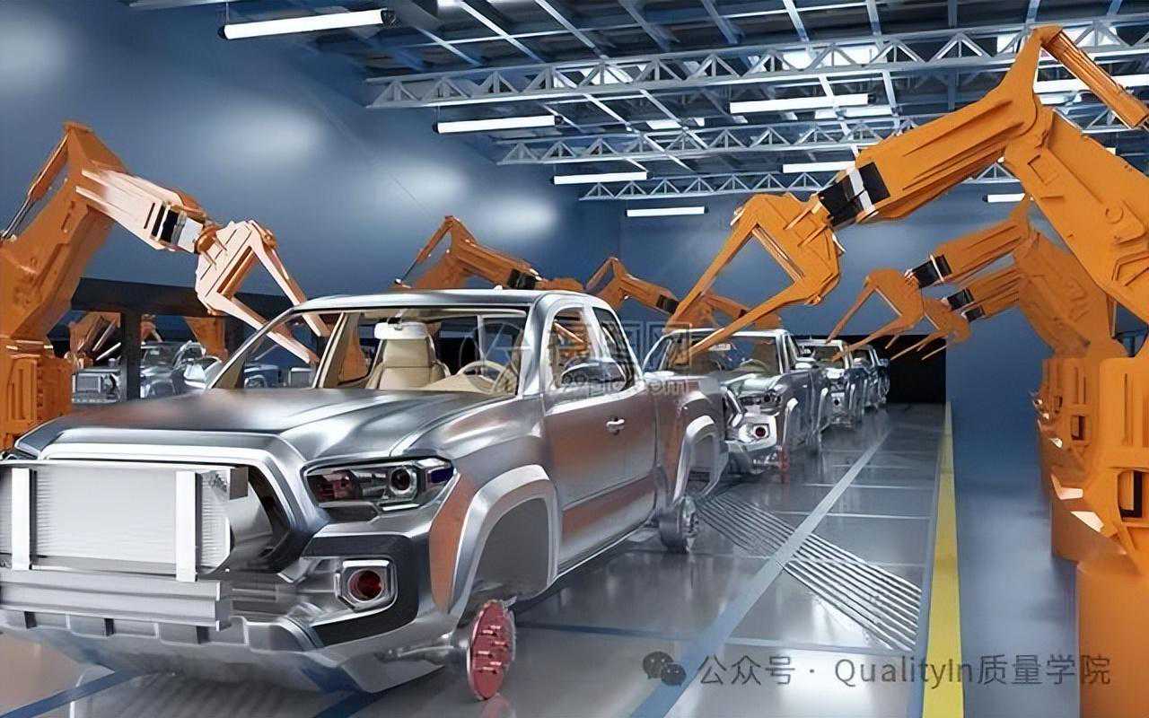焊装:这个环节的细节包括点焊、连续点焊、尺寸检查。点焊是通过点焊机器人或人工焊接,将各种车身零部件固定在一起,形成车身骨架。
