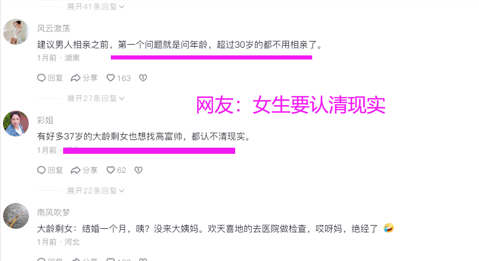 相亲,是一种寻找爱情和婚姻的方式,而在这个过程中,人们往往会对对方进行一番详细了解和评估。然而,在这次相亲中,这位35岁的女子却遭到了男生的冷嘲热讽。他用尖刻的语言贬低女方的年龄,暗示她已经过了最佳结婚年龄,对她的未来没有什么希望。这样的言论不仅缺乏尊重,也展现了对女性的歧视和对婚姻的功利化看法。 相亲事件中男生的言论引发了社会对女性年龄和婚姻观念的思考。无论是对于女性年龄的歧视还是对婚姻观念的看法,我们都应该以平等和尊重为基础,摒弃不合理的偏见和观念。每个人都有权利追求自己的幸福和选择自己的伴侣,而不应该被年龄和社会观念所束缚。
